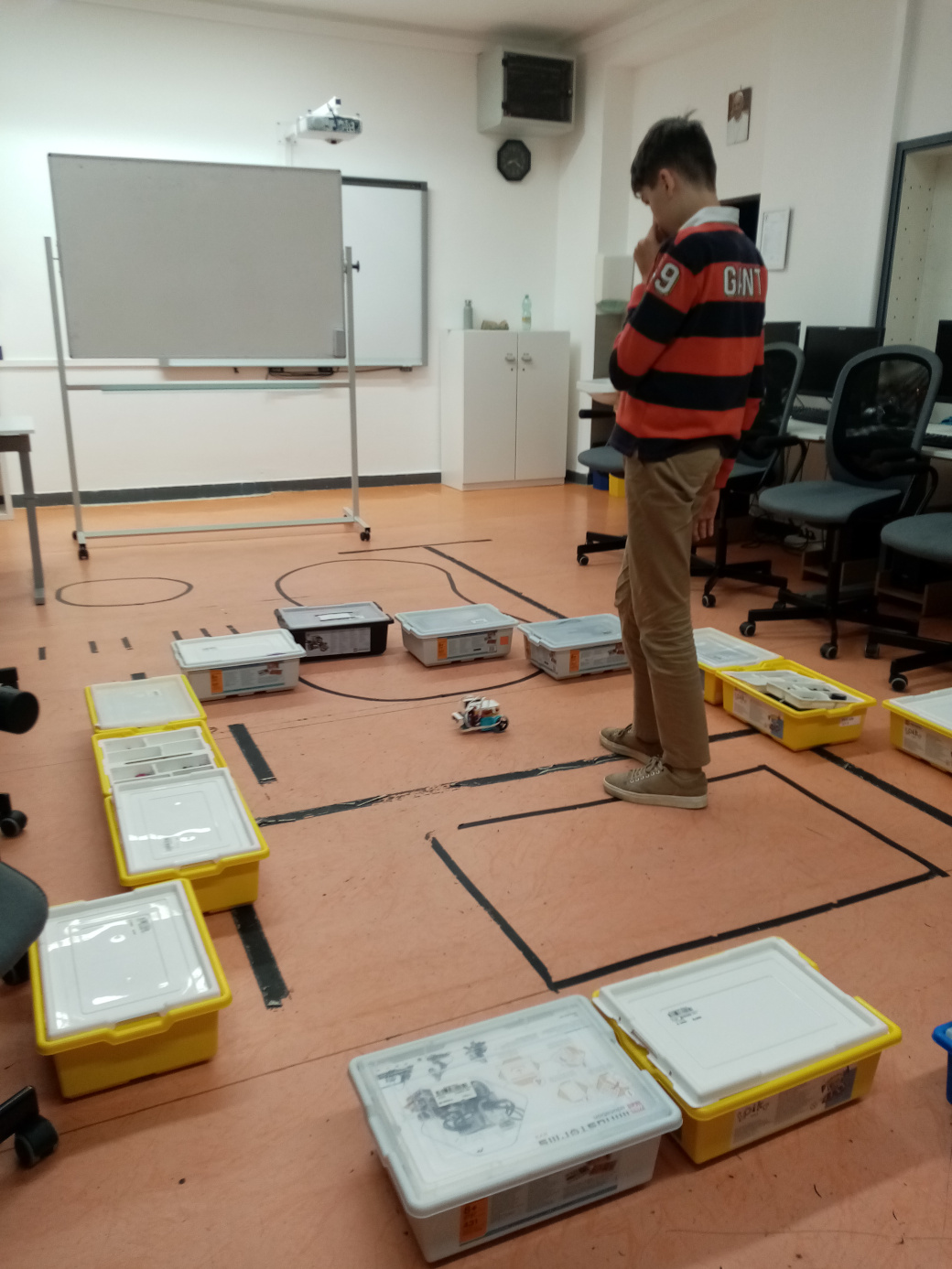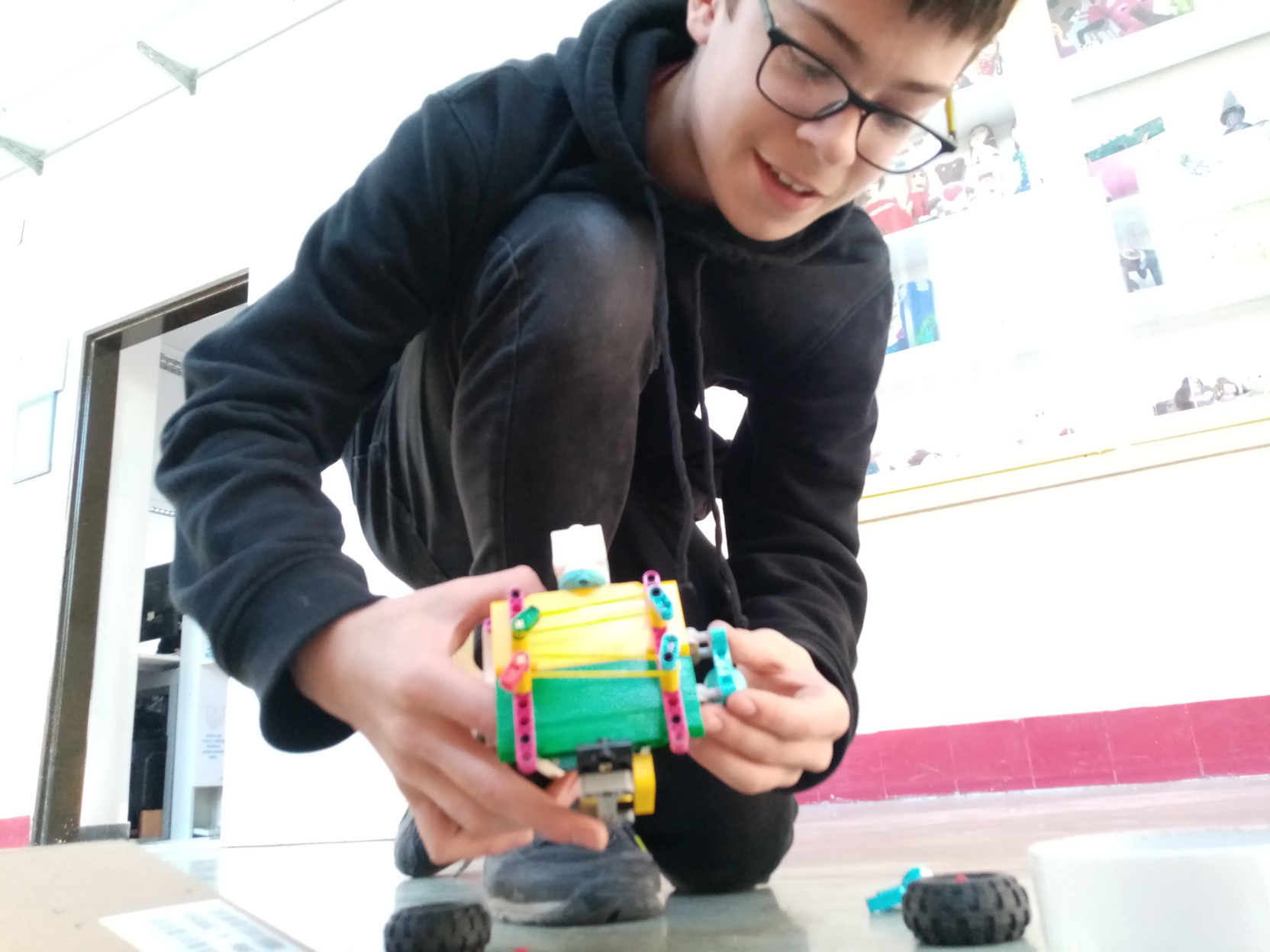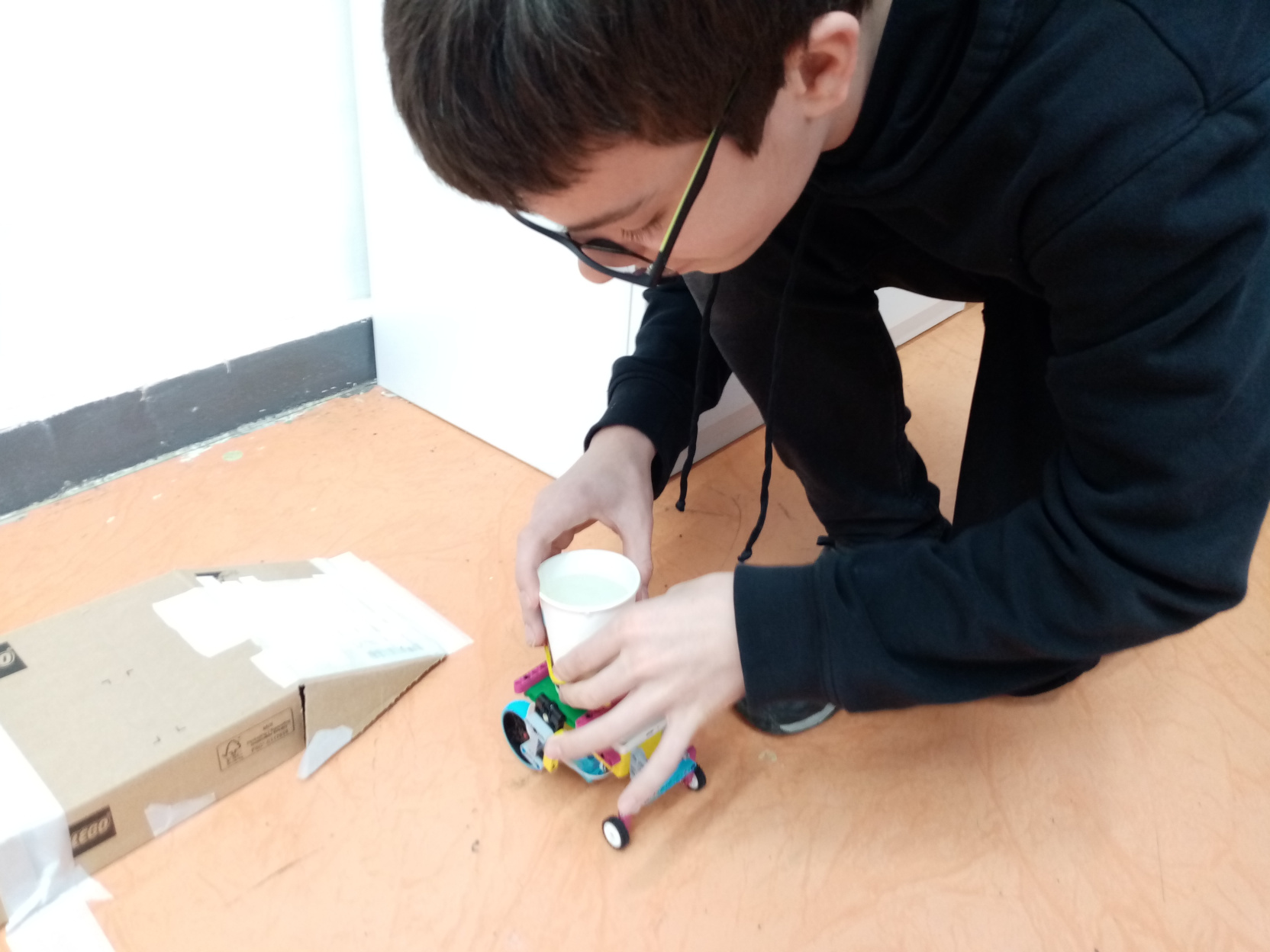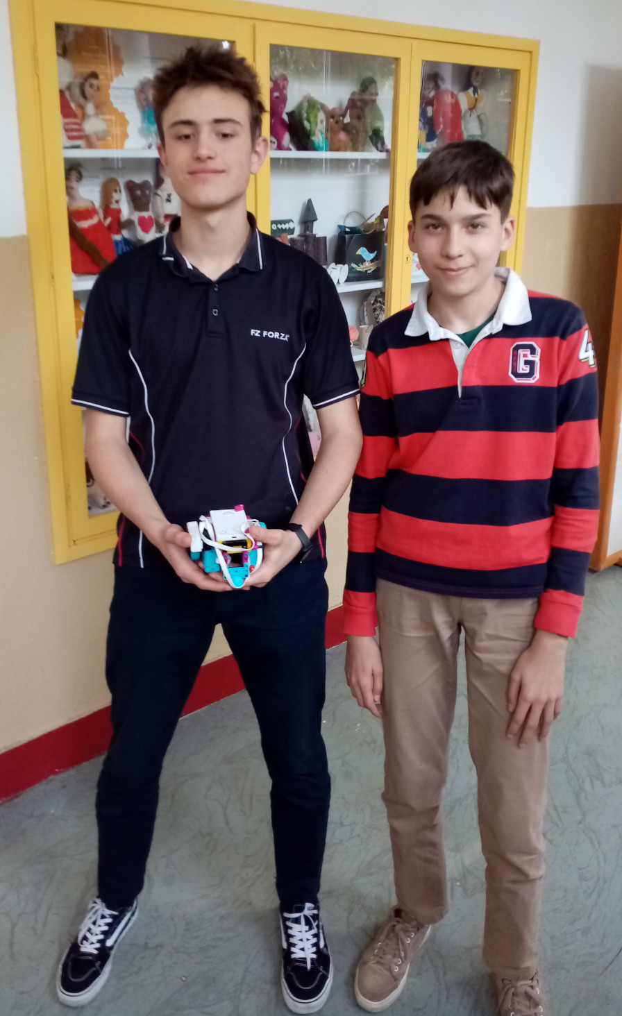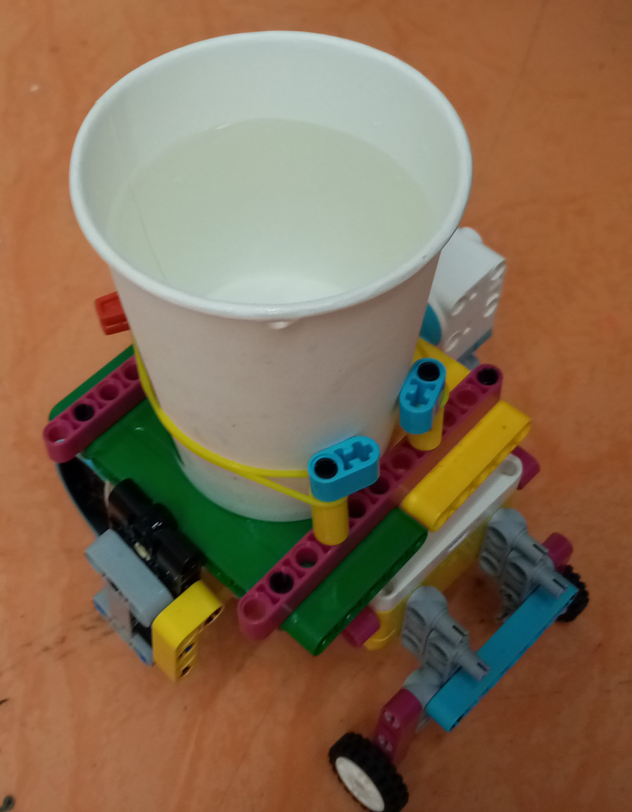 1. Mohli ste do pohárika dať aj trocha viac vody, aby bolo lepšie vidno, či niečo rozleje, alebo nie. Ale v princípe možno povedať, že ste úlohu splnili. 2. Super! Toto riešenie ozaj vyzerá, že bolo robené podľa zadania a že ani obsah pohára sa nevylial. 3. Za úlohu Maliar natierač získavate 3b. S riešením úlohy ste sa pekne vyhrali. :) 4. Pekný jednoduchý efektívny robot, ktorý spĺňa podmienky zadania. Zvládli ste využitie gyroskopu a jeho efektívne prepojenie s motorom. Postupné rozbiehanie a spomaľovanie má však ešte rezervy, čo vidno na videu - keď sa hladina prevážanej tekutiny poriadne zakolíše, takže bolo by tam ešte čo vylepšovať.