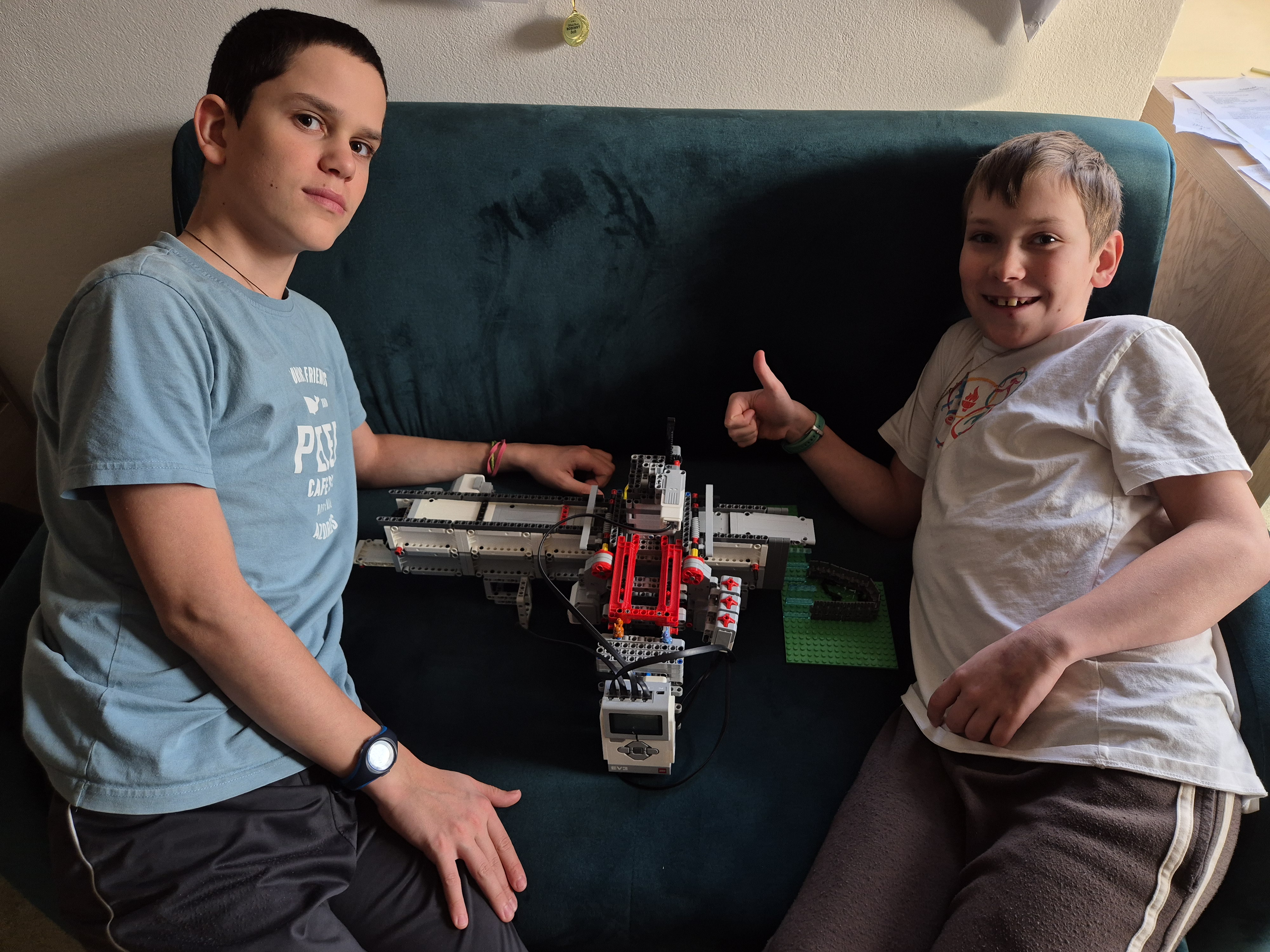 1. Pekne vypracovaná úloha. Stroj robí všetko čo má, konštrukcia je výborne zostavená a aj dokumentácia je veľmi dobre spravená. Predviedli ste všetky možnosti, nie iba jeden pokus, paráda. 2. Za úlohu Závod na spracovanie odpadu získavate 3b. Veľmi pekne vysvetľujete vo videu ako závod funguje a páči sa mi, že ste naviac zapracovali a ukázali, že ste pripravení na okamžité zastavenie závodu v prípade živočícha. :) 3. Pekne a kvalitne postavený model. Páči sa mi, že ste mysleli prakticky a zabudovali aj núdzové tlačidlo na zastavenie celého procesu. 4. Perfektná prezentácia. 5. Vynikajúco spracované riešenie, ďakujeme. Neviem prečo sa mi zdá ako keby tá skrutkovnica pri pohybe jedným smerom sa v strede trochu rozpájala a pri pohyby druhým smerom naopak spojila - je to iba optický klam, alebo naozaj? V každom prípade, funguje to! V praxi by sme asi potrebovali nejaký rýchlejší mechanizmus na odčlenenie tých magnetických častí, alebo viac paralelne pracujúcich jednotiek, ale ako prototyp je to skvelé!