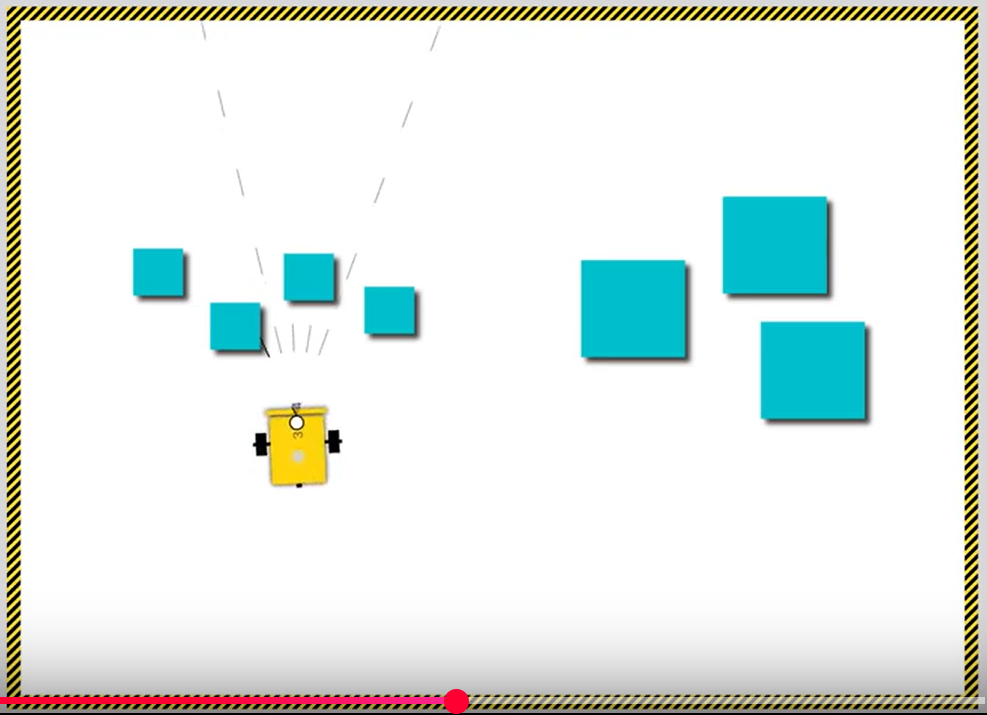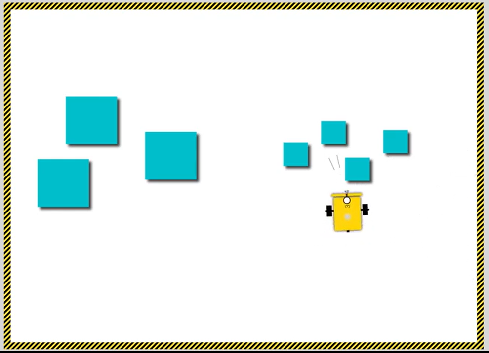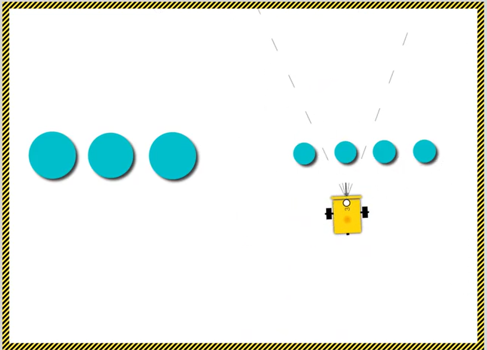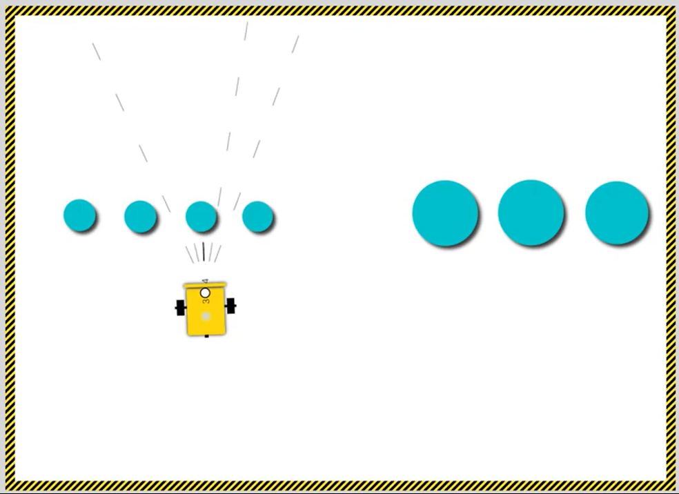 Robertin ultrazvukový senzor vidí dosť naširoko a iba smerom dopredu, preto robot veľkosť predmetov zisťuje zboku.