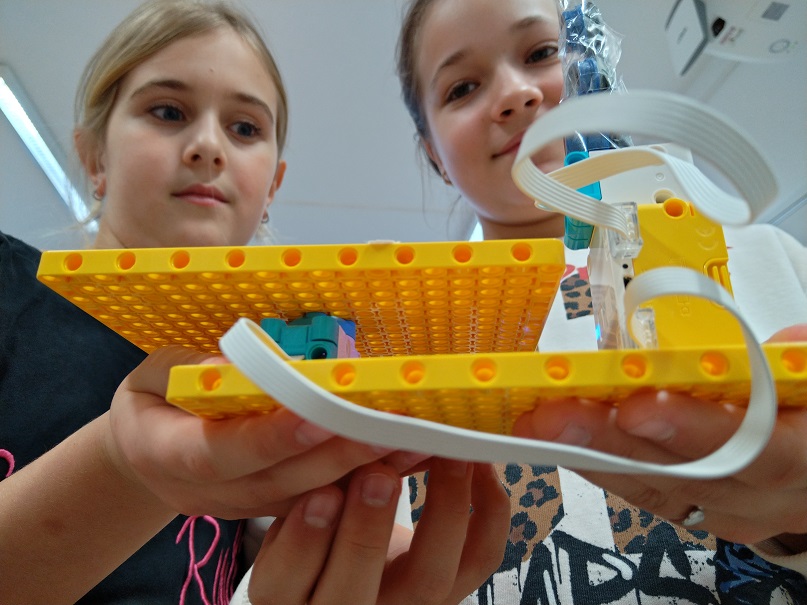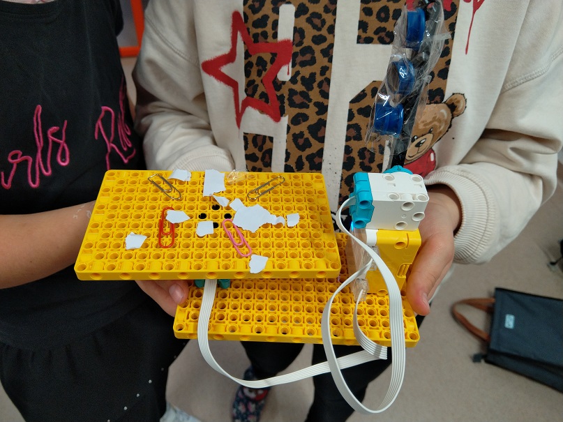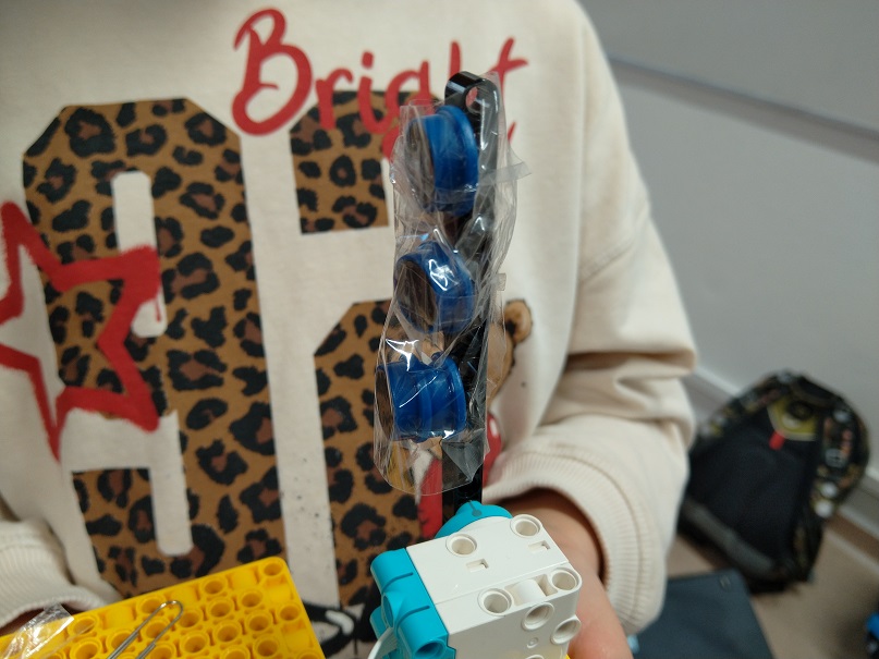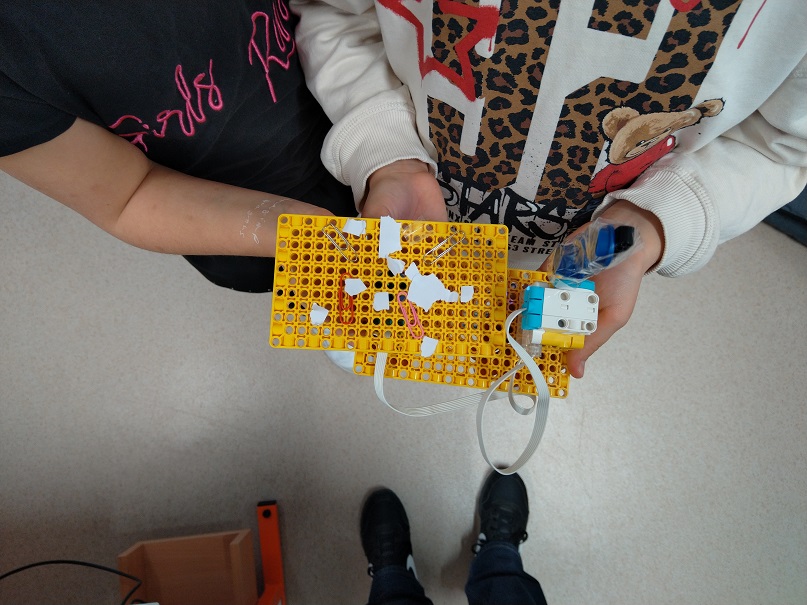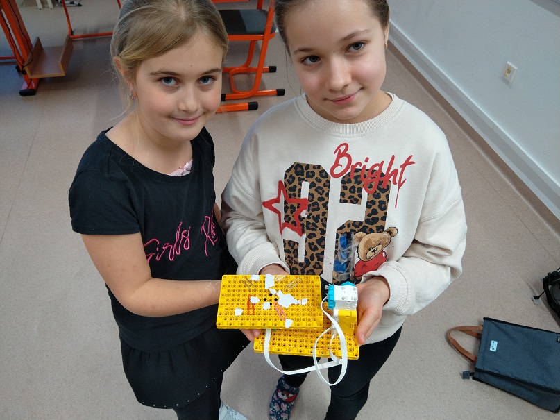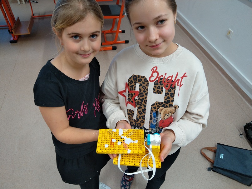 1. Nikdy by mi nenapadlo, že sa dá úloha vyriešiť takto jednoducho. Super nápad! Síce ste ešte nedokončili celú úlohu, ale na konci by sa napríklad tá páčka s magnetmi mohla obtrieť o nejakú rotujúcu podložku a tie spinky tak zhodiť do nejakej nádobky. Myslím, že ste len kúsok od kompletného riešenia. 2. Za úlohu Závod na spracovanie odpadu získavate 2.5b. Splnili ste časť úlohy hovoriacej o vytiahnutí časti odpadu, ale chýba časť kedy je tento vytiahnutý odpad umiestnený do kontajnera. 3. Zaujímavý nápad :-), ale kovové spinky zostali na magnetoch. :-( 4. Veľmi kreatívny spôsob riešenia. Aj keď nie je úplne efektívny, fungoval dobre a vyzbieral všetko čo mal. Nabudúce skúste natočiť aj viac, ako jeden pokus, aby ste ukázali, že váš program a robot fungujú vždy a nejde o náhodu :) 5. Je to krásny a jednoduchý model. Nechýba už veľa - pridať nejaký mechanizmus, ktorý by pozbieraný magnetický odpad oddelil od magnetov tak, aby spadli do nejakej nádobky a jeden ďalší motorček, ktorý by rampu so zvyšným odpadom vyklopil nabok do nejakej inej nádobky. Nehanbite sa použiť aj väčšiu riadiacu jednotku (Spike Prime) - dá sa programovať v tom istom jazyku celkom rovnakým spôsobom a môžete k nej pripojiť naraz až 6 rôznych motorov alebo senzorov! Veľa úspechov naďalej!