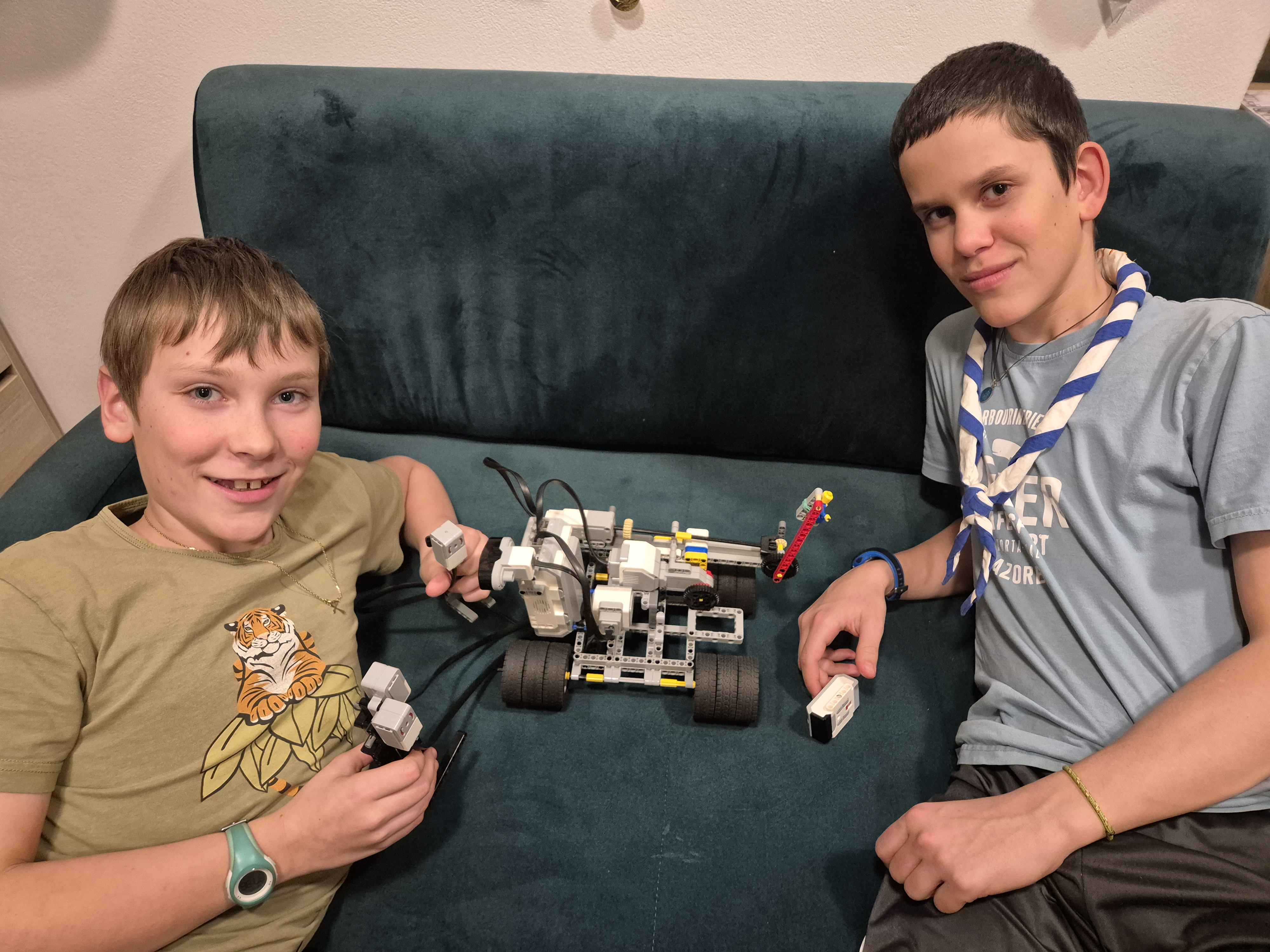 1. Smola s tými senzormi, ale aj bez nich to vyzeralo na pekné riešenie. Škoda, že v tom druhom pokuse sa kameraman dostal do trocha inej cieľovej pozície ako ste asi zamýšľali. Konštrukcia je celkom pekne premyslená, kameraman sa ale mohol trochu menej natriasať, takto by to video asi nebolo celkom stabilné. 2. Pekne spracované riešenie, ďakujeme. Gyroskopy na EV3 majú túto vlastnosť, že keď sa zapínajú (napr. sa zapne EV3 jednotka, alebo sa senzor pripojí), musia byť celkom v pokoji - nesmú sa hýbať. V opačnom prípade chytia ten drift, ako ste popísali. Preto tímy, ktoré chodievali na súťaže mali hneď po štarte programu takú kontrolu, že robot bol v pokoji a sledoval, aké hodnoty vracia gyroskop - a ak to prudko rástlo, tak robot dal signál, že treba gyroskop znovu odpojiť a pripojiť. Niekedy ani toto nepomôže, ale takmer vždy áno - len musia byť naozaj celkom nehybné. Riešenie je dobre zdokumentované aj pekne realizované aj keby ste boli v tigrej kategórii, dobrá práca! 3. Za úlohu Kameraman získavate 3b. Oceňujem video, v ktorom vysvetlujete riešenie úlohy. 4. Veľmi kvalitne odprezentované a vysvetlené fungovanie robota. Taktiež jasne natočené a vhodne vybrané príklady. To s tým gyroskopom ma mrzí. Ale vynašli ste sa. Super. 5. Pekné riešenie a video. Pohyb kameramana umiestneného na dlhej tyči sa mi zdá byť trochu trhaný, nedalo by sa to nejakým spôsobom zjemniť?