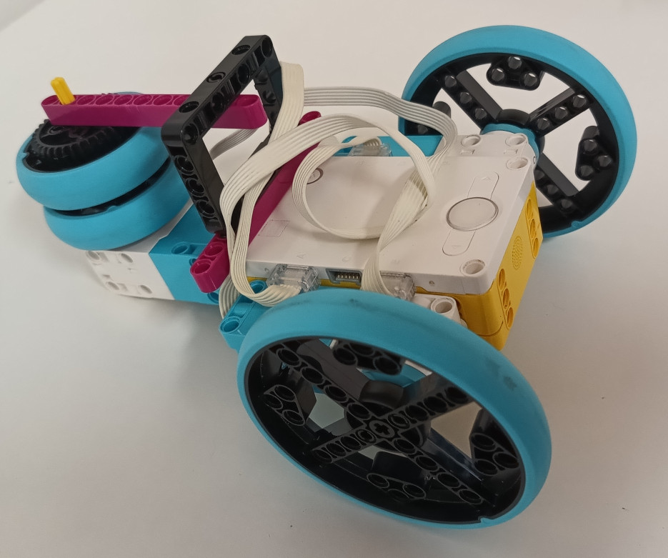 Robot je postavený z Lego stavebnice Spike. Používa dva motory na pohyb dopredu či dozadu a jeden výkonný motor ako naviják - tažné zariadenie. Ani nepotrebuje program, stačí zapnúť zabudovaný program, ktorý točí motor.