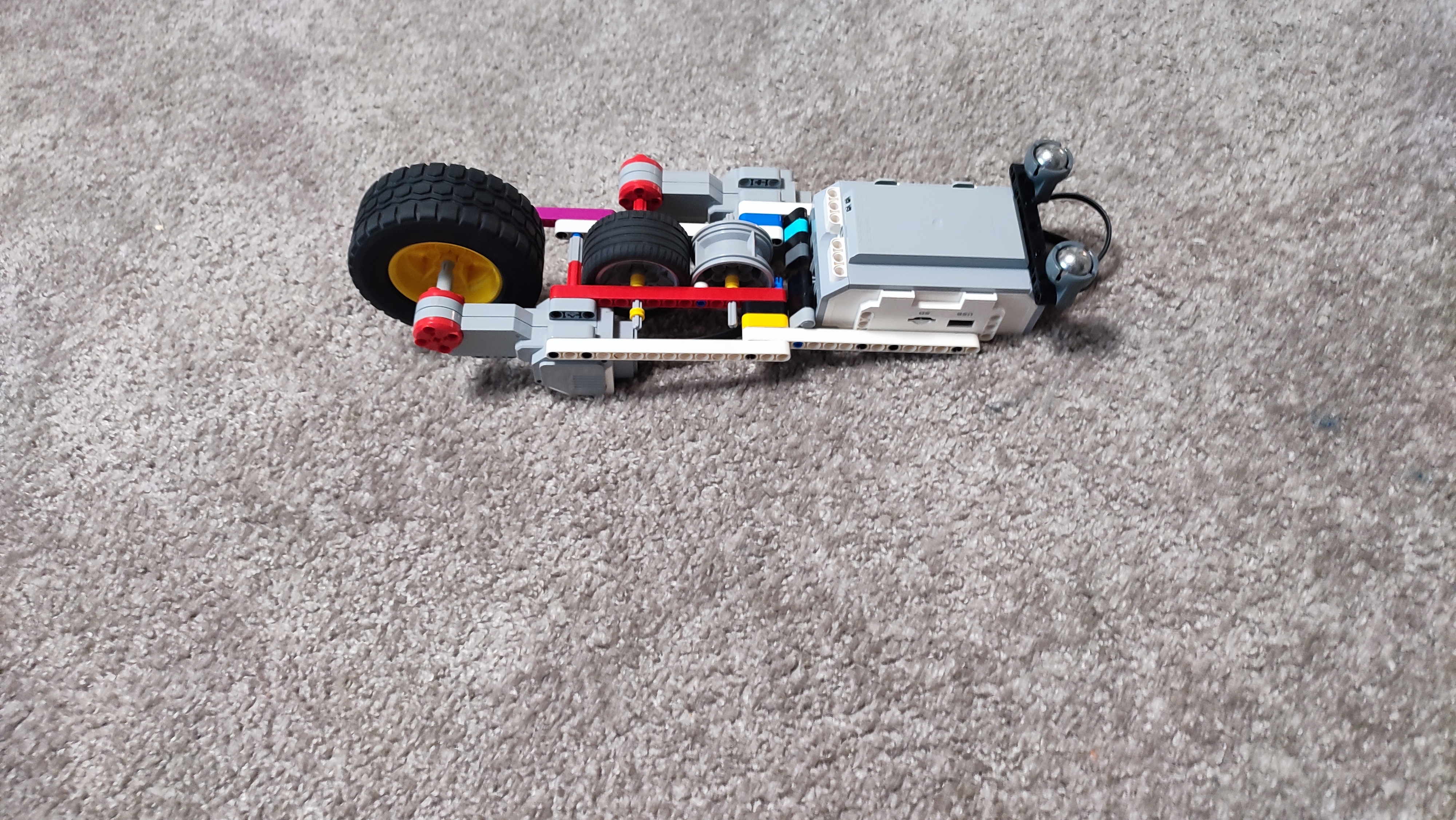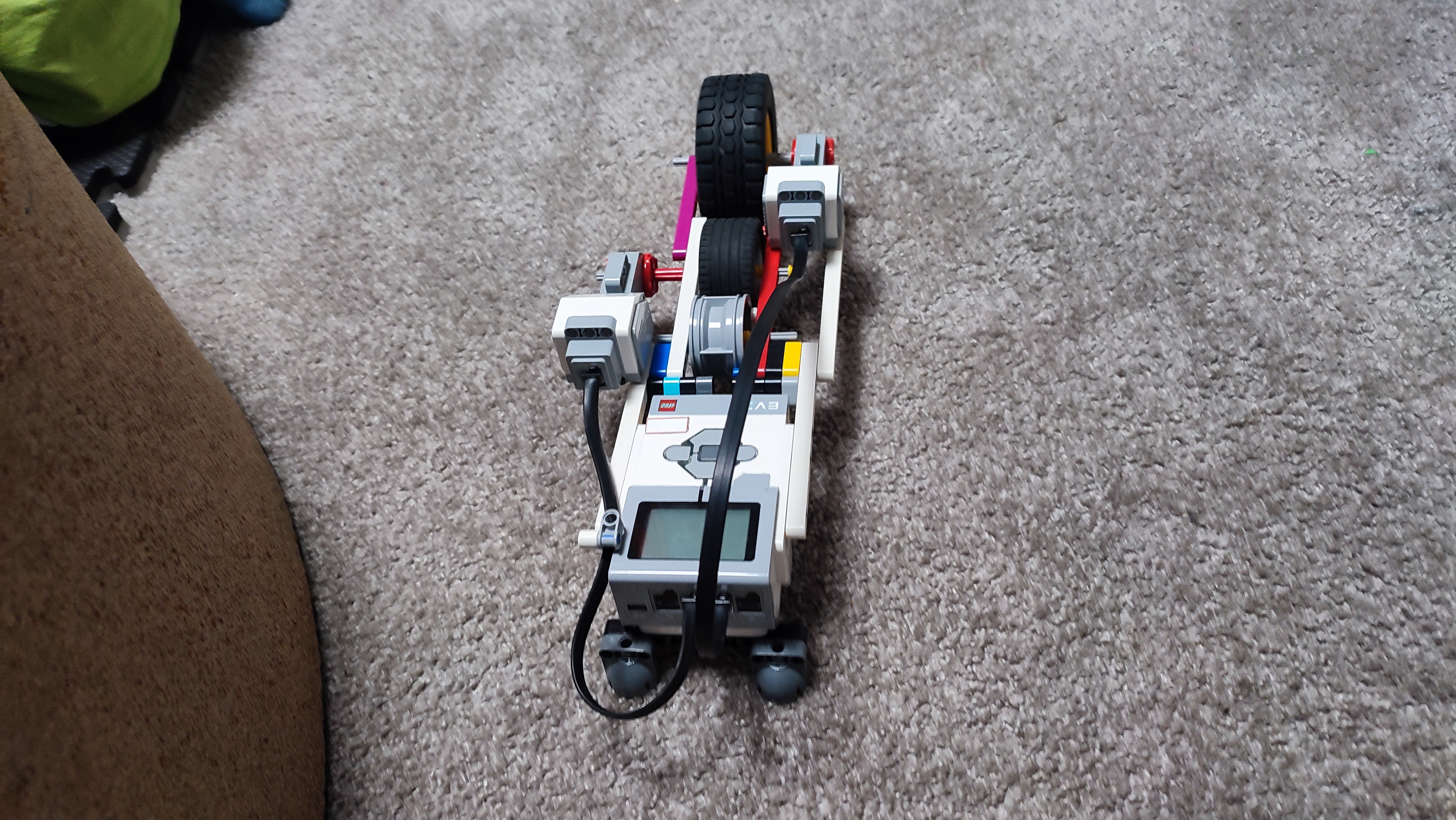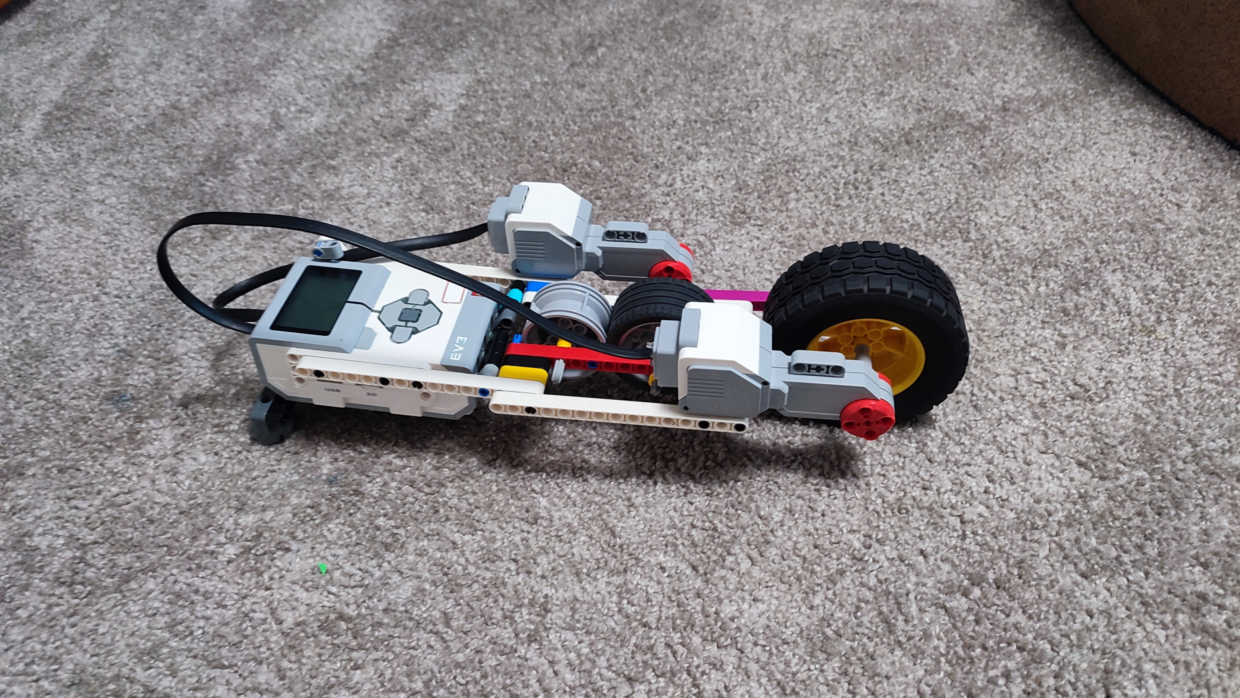 Po zapnutí sa spustí prvý large motor, ktorý pohne robota dopredu z plošiny. Potom ho zastaví a spustí sa druhý large motor, ktorý poháňa kolesá, pomocou ktorých robot pomaly a kontrolovane zlieza po lane. Keď sa robot ocitne na zemi, vyvlečie zo seba zvyšok lana. Potom sa opäť spustí prvý large motor, ktorý robota pohne dopredu, čím odíde od steny i od lana.