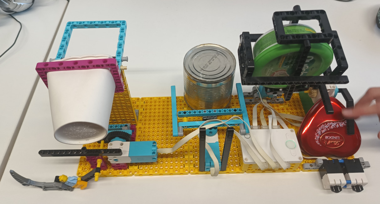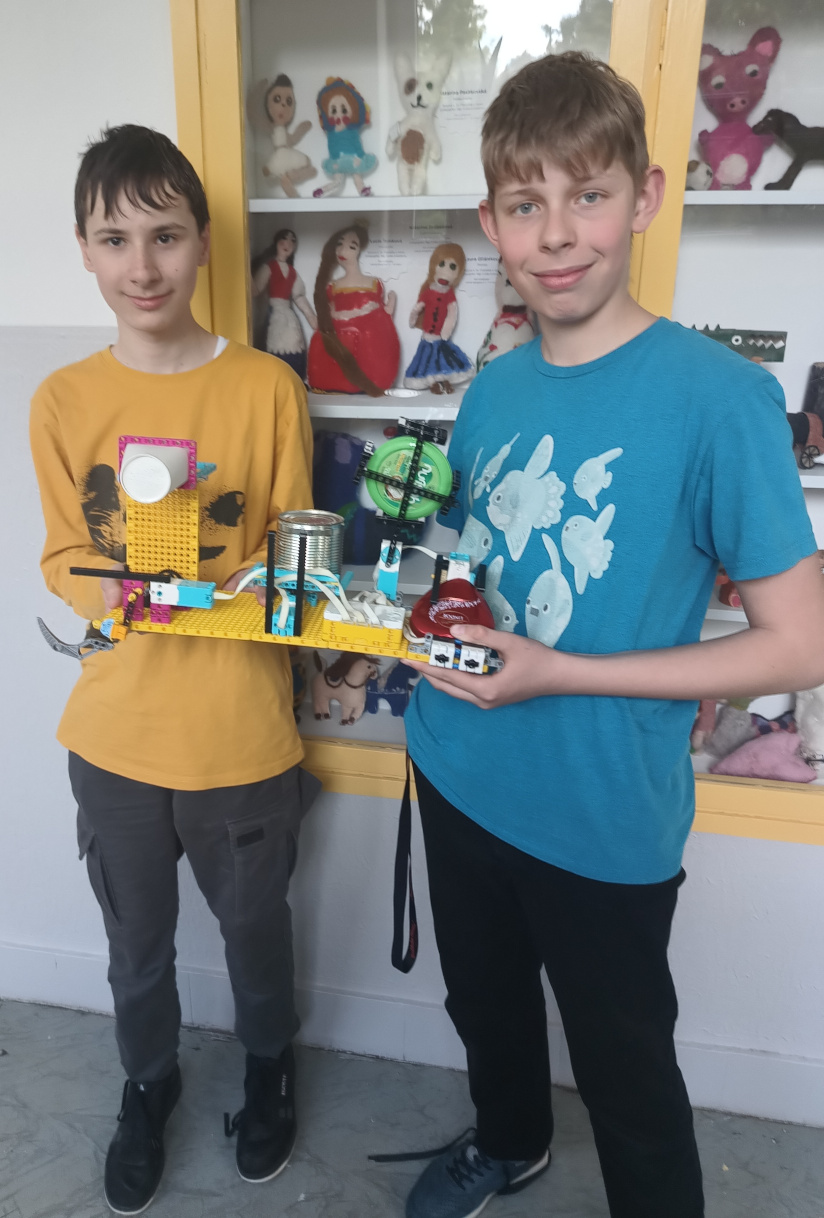 1. Zdá sa mi, že tento bubeník má väčší potenciál, ako nám na videu predviedol. 2. Musím pochváliť tzzv. upcycling, teda znova využitie materiálov, ktoré by inak išli do koša. Máte to aj zaujímavo konštrukčne vymyslené, jediná škoda je, že sa vám nepodarila nejaká lapšia (možno stačilo hlasnejšia?) rytmická ukážka. 3. Vyzerá to ako sľubný projekt, trochu slabo počuť tie srdiečkové činely a tuším bubeník zabudol búchať po tom zelenom bubne v strede hore? Plechovka robí asi najzaujímavejší efekt. Ešte by bolo dobre jednotlivé komponenty trochu estetickejšie umiestniť vedľa seba, aby aj pohľad na hrajúceho bubeníka robil viac radosti. 4. Za úlohu Bubeník získavate 3b. Páči sa mi, že ste sa vynašli s hudobnými nástrojmi. Pekná práca aj s detailnými fotkami robota. 5. Model na fotkách vyzerá byť dosť zaujímavý.