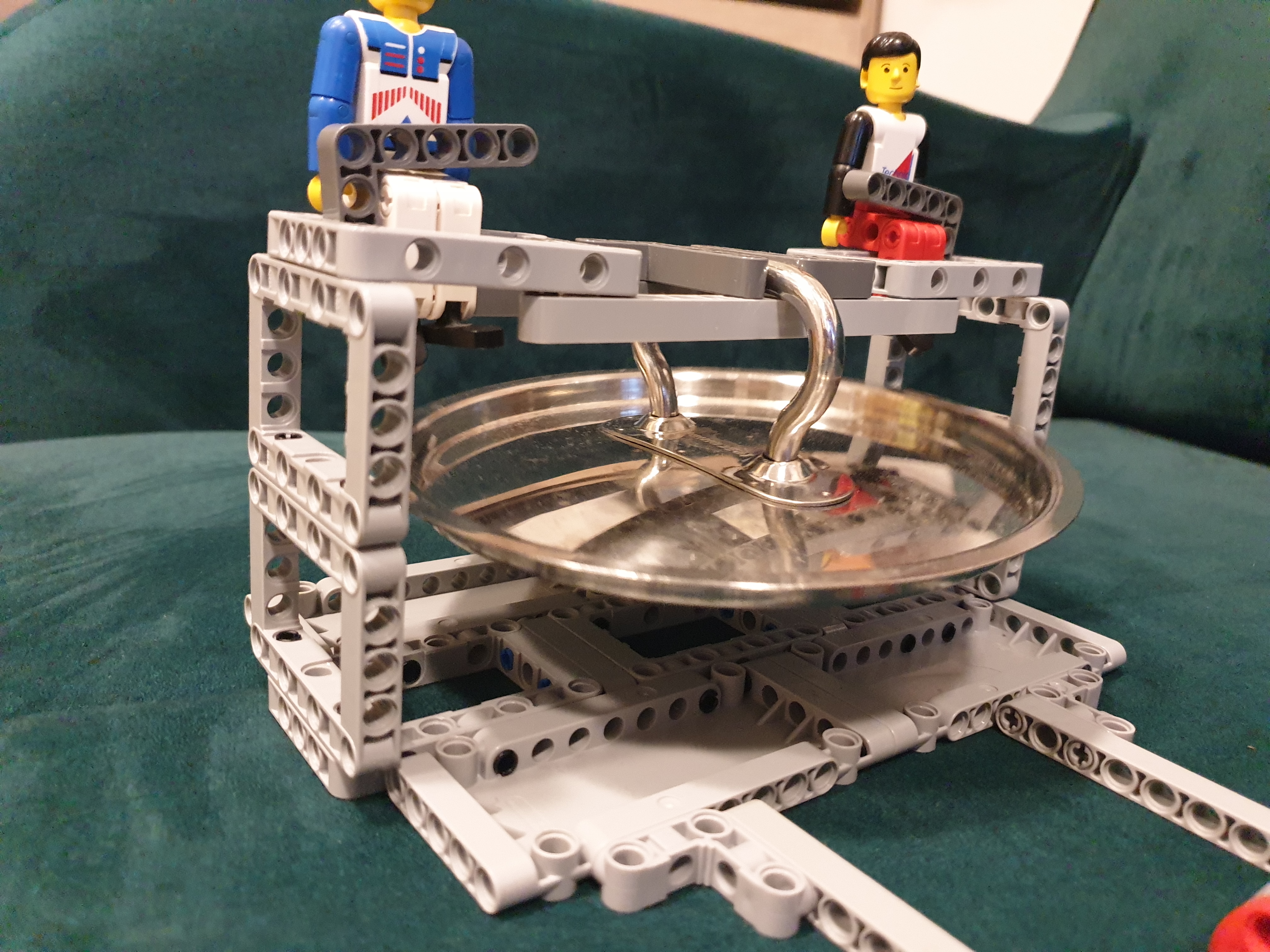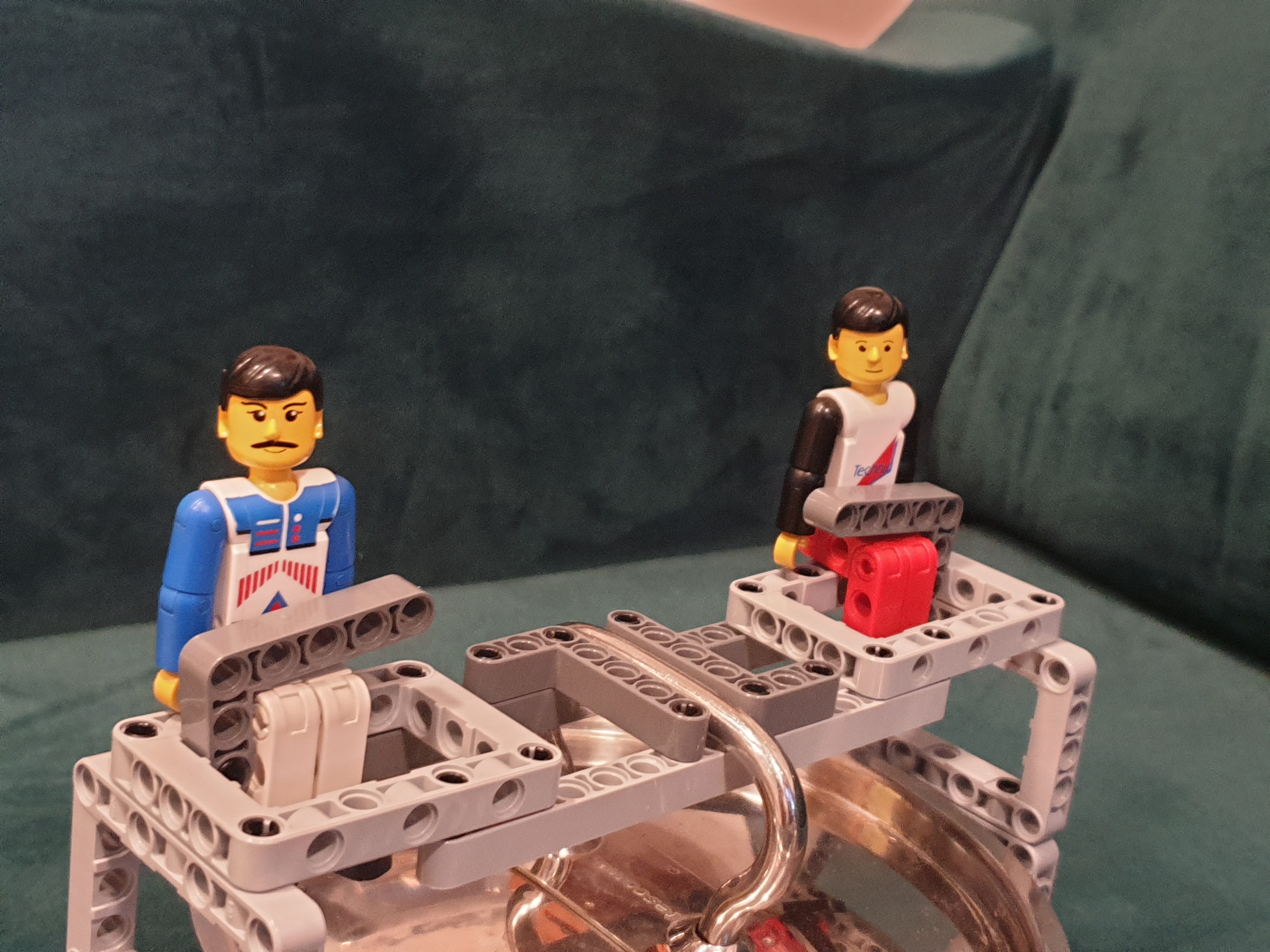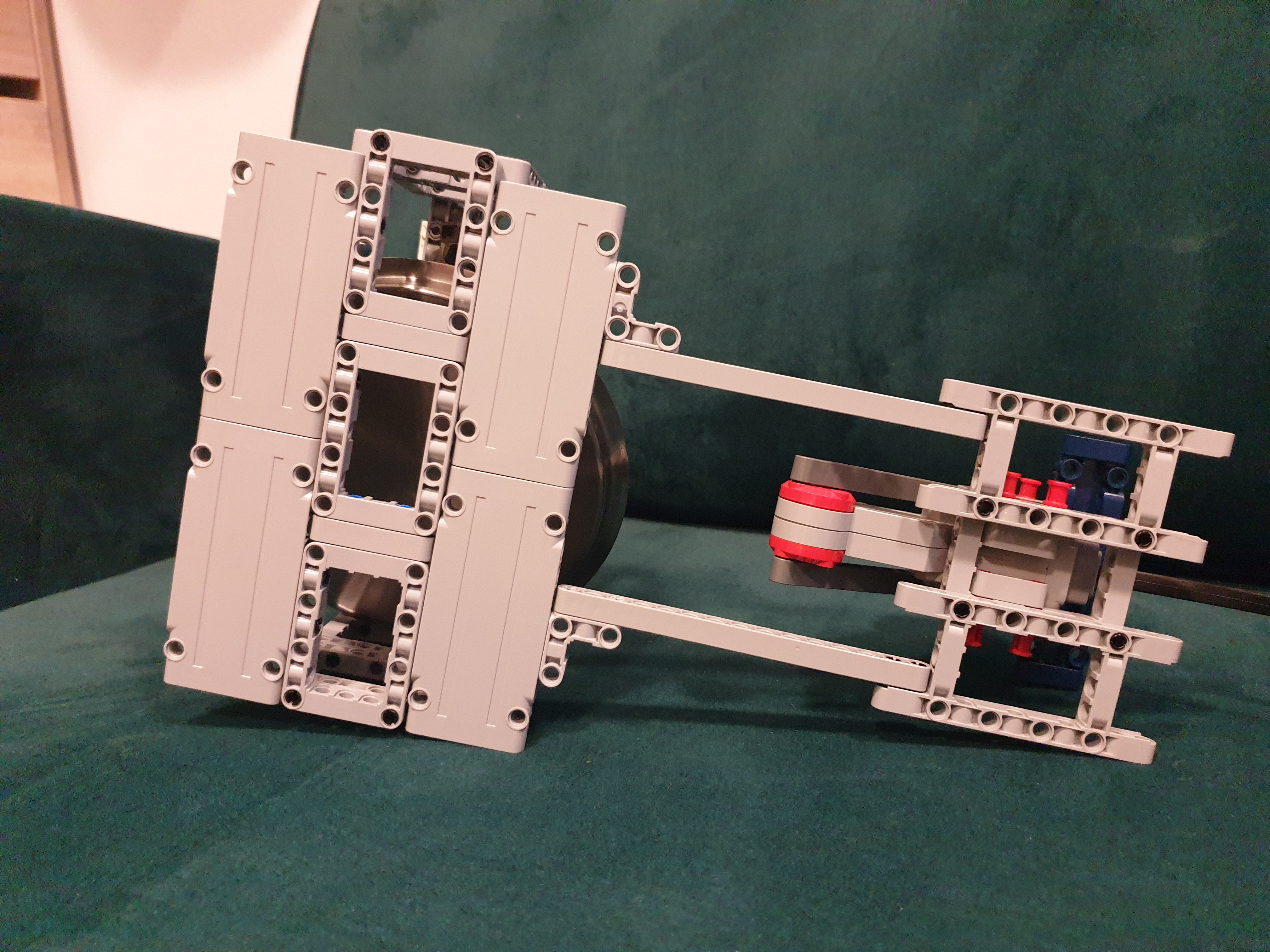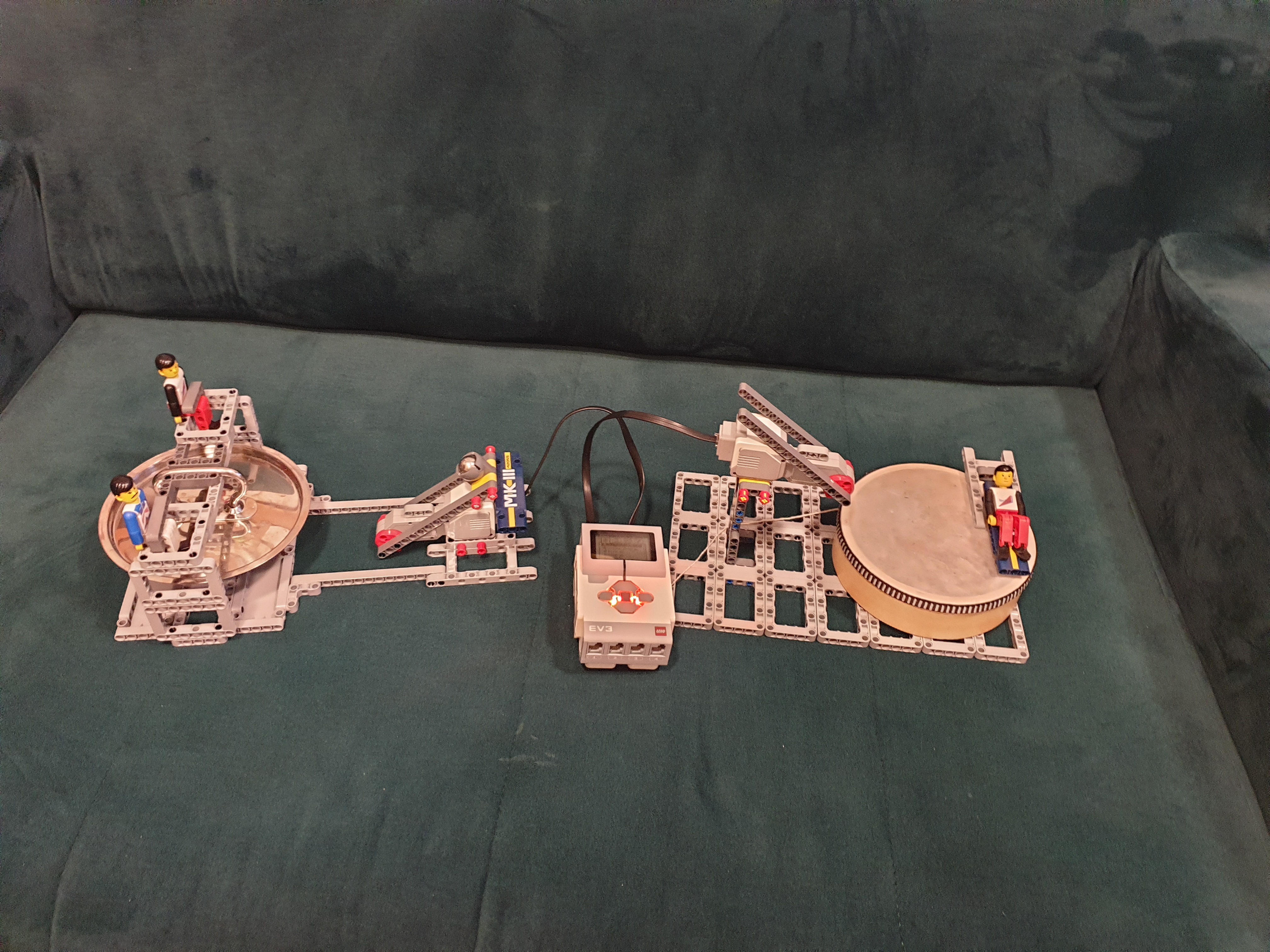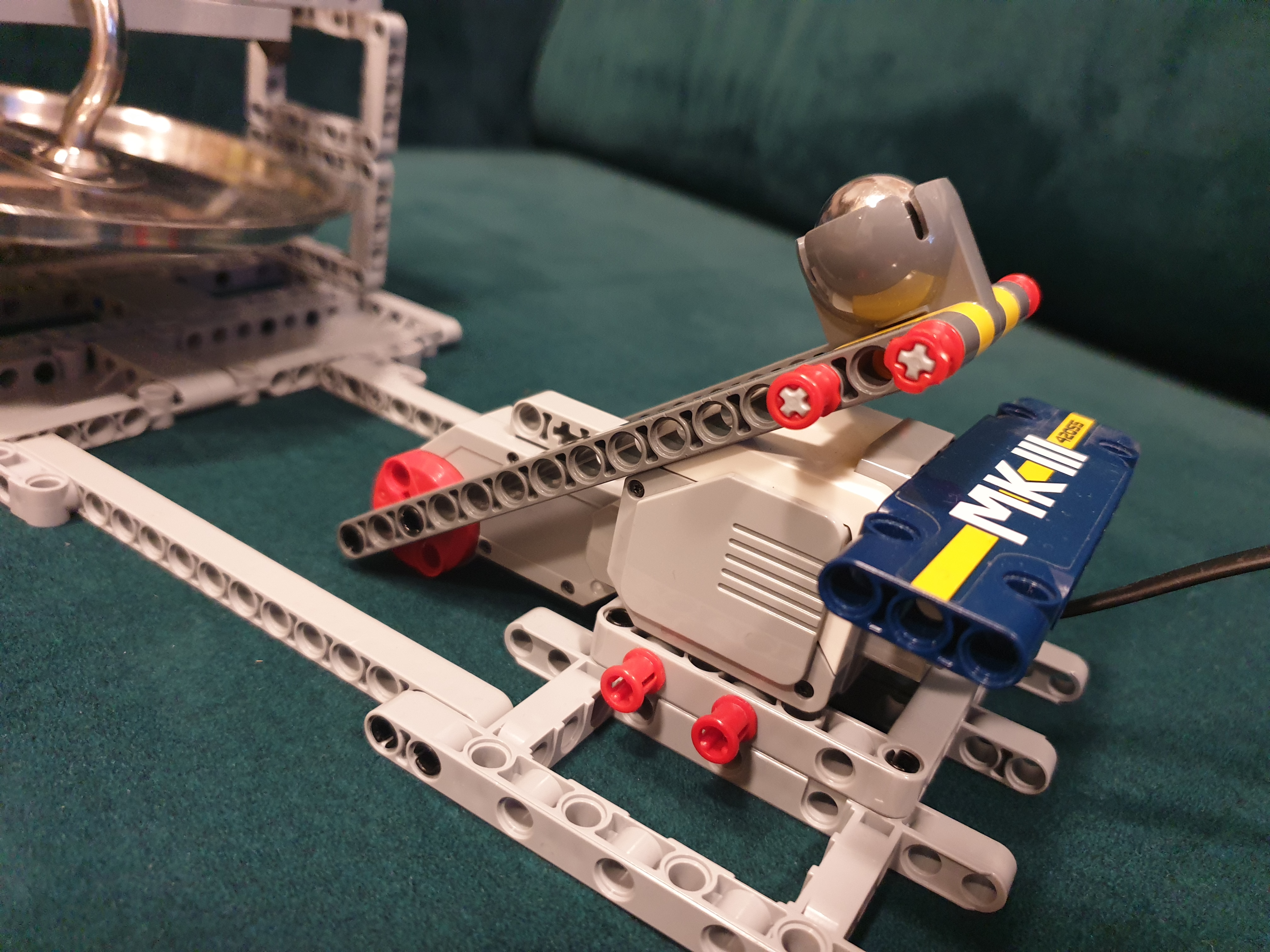 Náš MK3 bubeník sa skladá z jednej EV3 kocky, dvoch veľkých motorov a veľa ďaľších kociek. Po spustení programu č.1 motor č.1 dva krát buchne na bubon, a potom motor č.2 jeden krát buchne na pokrievku. Tento cyklus môžeme opakovať koľko krát chceme, a tiež ho môžeme spomaliť, resp. zrýchliť. Po spustení programu č.2 sa spustí sled náhodne vybraných vlastných blokov, ktorý sme nazvali TUC TUC. Žiaľ, k TUC TUC sme (zatiaľ:-) nevymysleli žiadnu hudbu, ale keď/ak ju vymyslíme dáme vám vedieť. Tím MK3