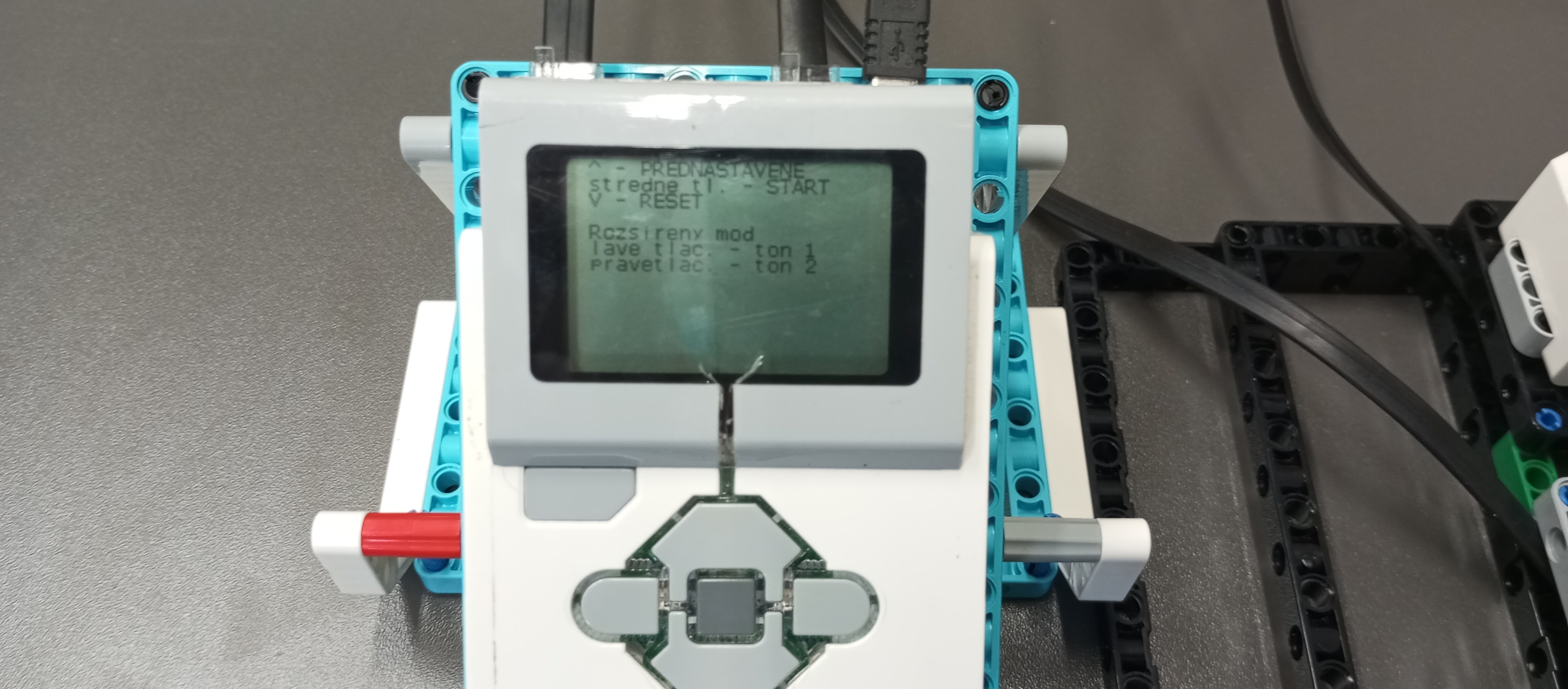 Prednastavený mód vyberieme tlačidlom hore tým sa vloží kód so základnou melódiou a následne tlačidlom štart -stredné - robot ten kód prečíta/zahrá.