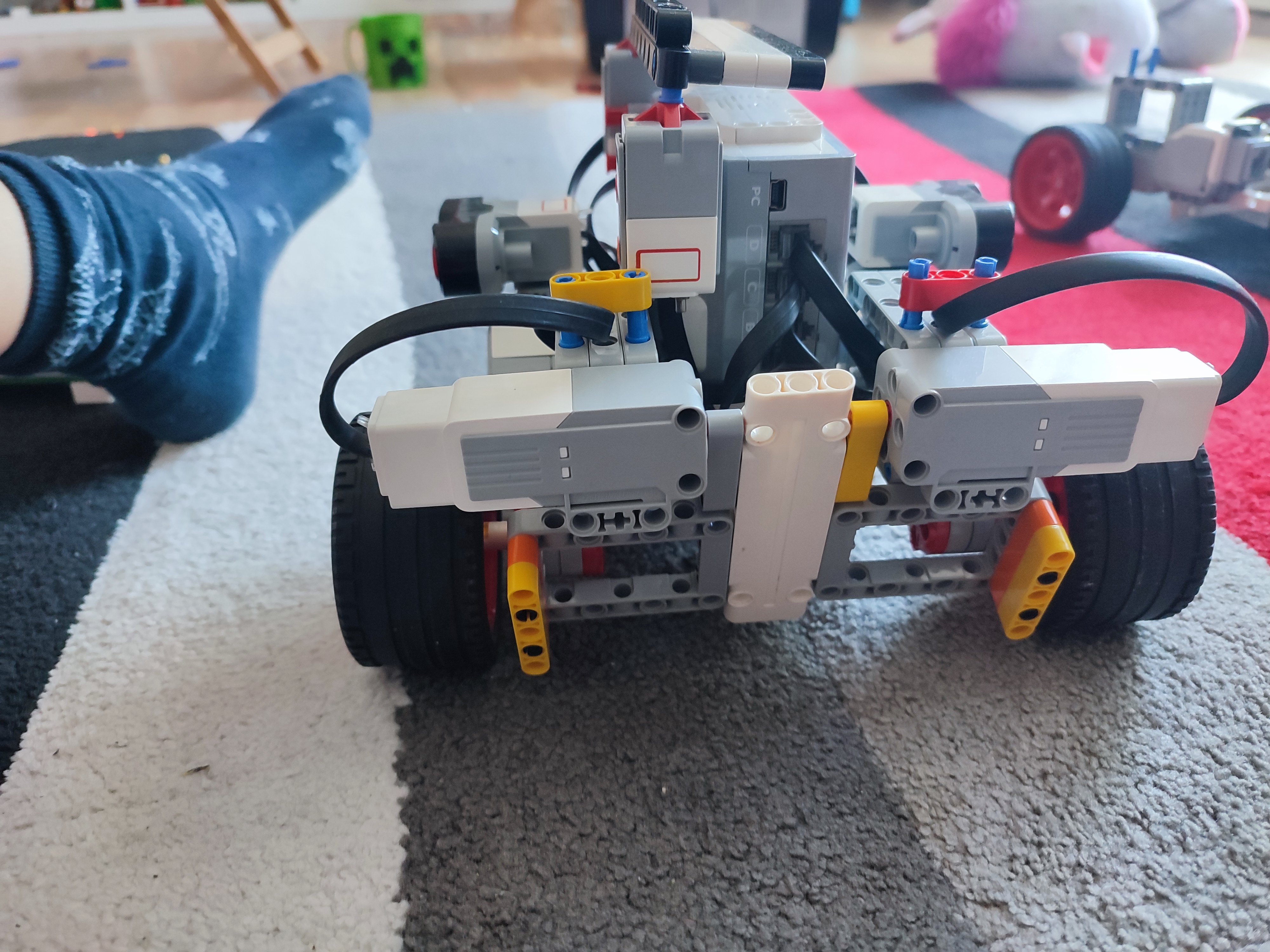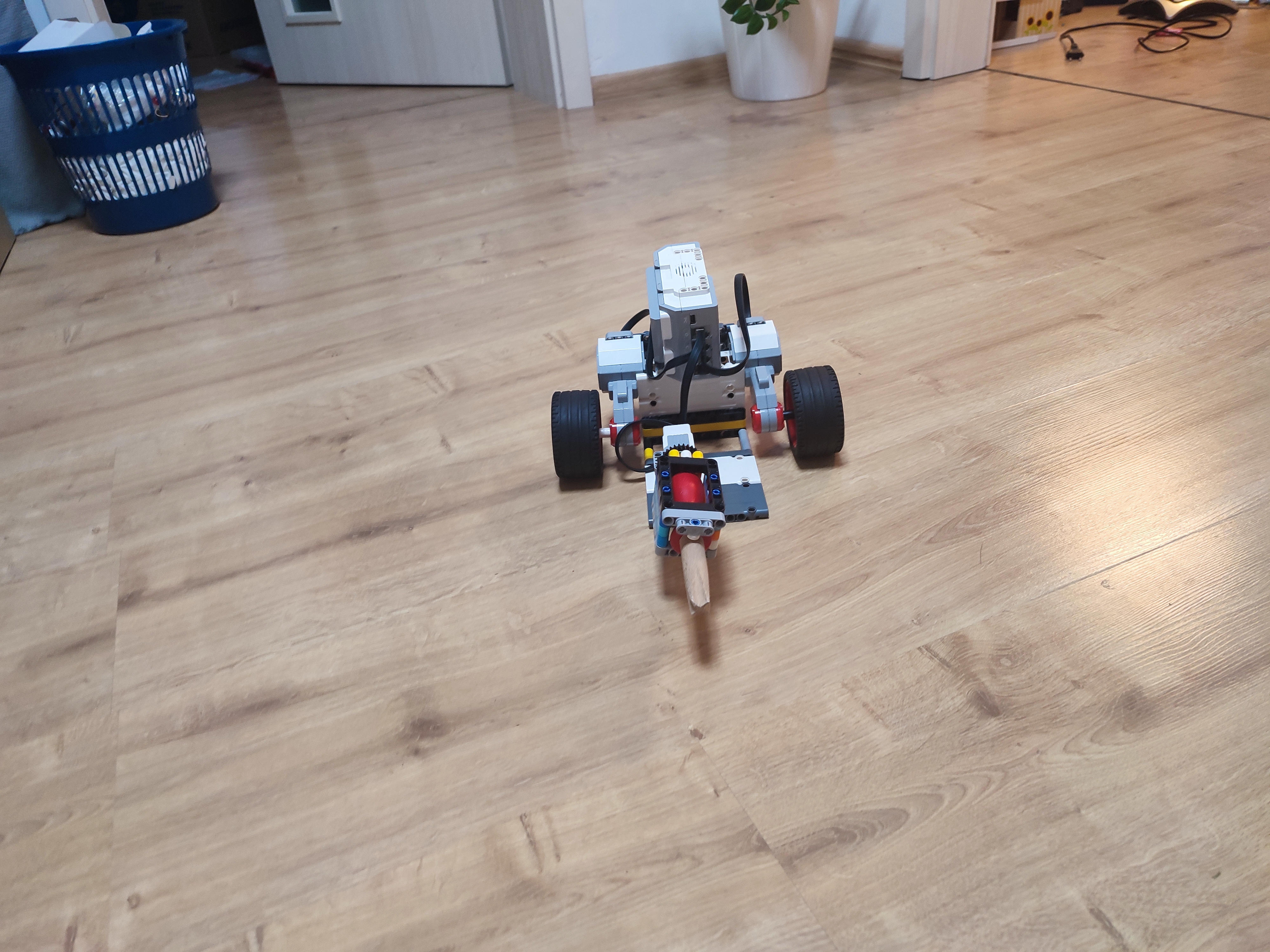1. Výborne, toto trénovacie ihrisko navyše aj s brankárom zjavne umožňuje dôkladný tréning. Robot vie aj odkopnúť loptu do bránky, navyše tak efektívne, že ani brankár nestihne zareagovať. Vyskúšal by som trochu prudšie zatáčanie, aby spoľahlivejšie vyberal prudšie otočky a zákruty - napr. trochu úmerne od vzdialenosti detekovanej senzorom, ale inak je to všetko super. 2. Za úlohu Futbal získavate 3b. Páči sa mi detailný popis zadania a viacero video ukážok riešenia :) 3. Veľmi dobre premyslené riešenie, hoci robot možno nemusel tak rýchlo jazdiť vpred, pretože ho potom nedokážete celkom presne riadiť. Ale aj strielací mechanizmus sa mi páči aj ukážky máte dobre nafilmované. 4. Oceňujem podrobný popis. 5. Zrozumiteľne a pekne opísaný program. Ukážky troch rôznych pokusov boli tiež skvelé. Robot fungoval ako mal. Nemám žiadne výhrady. Možno len, že nie je na videu ukázané, ako robot zastane po narazení do prekážky. Oceňujem nápad s brankárom. Síce mu bránenie moc nešlo, ale dobrý bol. :D