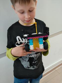 Môj robot má 3 motory. Má aj svetelný senzor. Vymyslenie ho trvalo asi 30 min. kód trval 2 dni. Celok trval 4-5 dni.