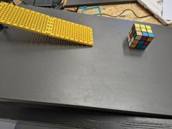 Keď spustíme program, Rubikova kocka sa začne šmýkať po plošine smerom k ultrazvukovému senzoru. Počas pohybu sa jej rýchlosť postupne mení podľa toho, aký materiál sa dotýka plošiny. Keď sa kocka dostane približne 10 centimetrov od senzora, senzor zaznamená jej pohyb a zmeria jej "koeficient trenia". Tento koeficient určí podľa toho, ako rýchlo sa kocka po plošine šmýka.