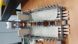 Náš robot ma dve rovnobežné klzné dráhy / naklonené roviny po ktorých spúšťame dve telesa s jediným rozdielom - farbou. Tieto telesa spúšťame v rovnakom čase zaručenom motorom, ktorý otvára obidve „brány“ naraz. Na konci oboch dráh sa nachádza farebný senzor, ktorý sníma, kedy dorazí teleso (konkrétnej farby) na spodok dráhy. Náš program meria plynúci čas a zapisuje do premenných, príchod telesa na koniec dráhy. Po príchode oboch telies robot vypíše na displeji premenné a porovnanie koeficientu trenia. Bohužiaľ, náš robot sa v deň skúšky pokazil a nášmu tímu teda chýba video.