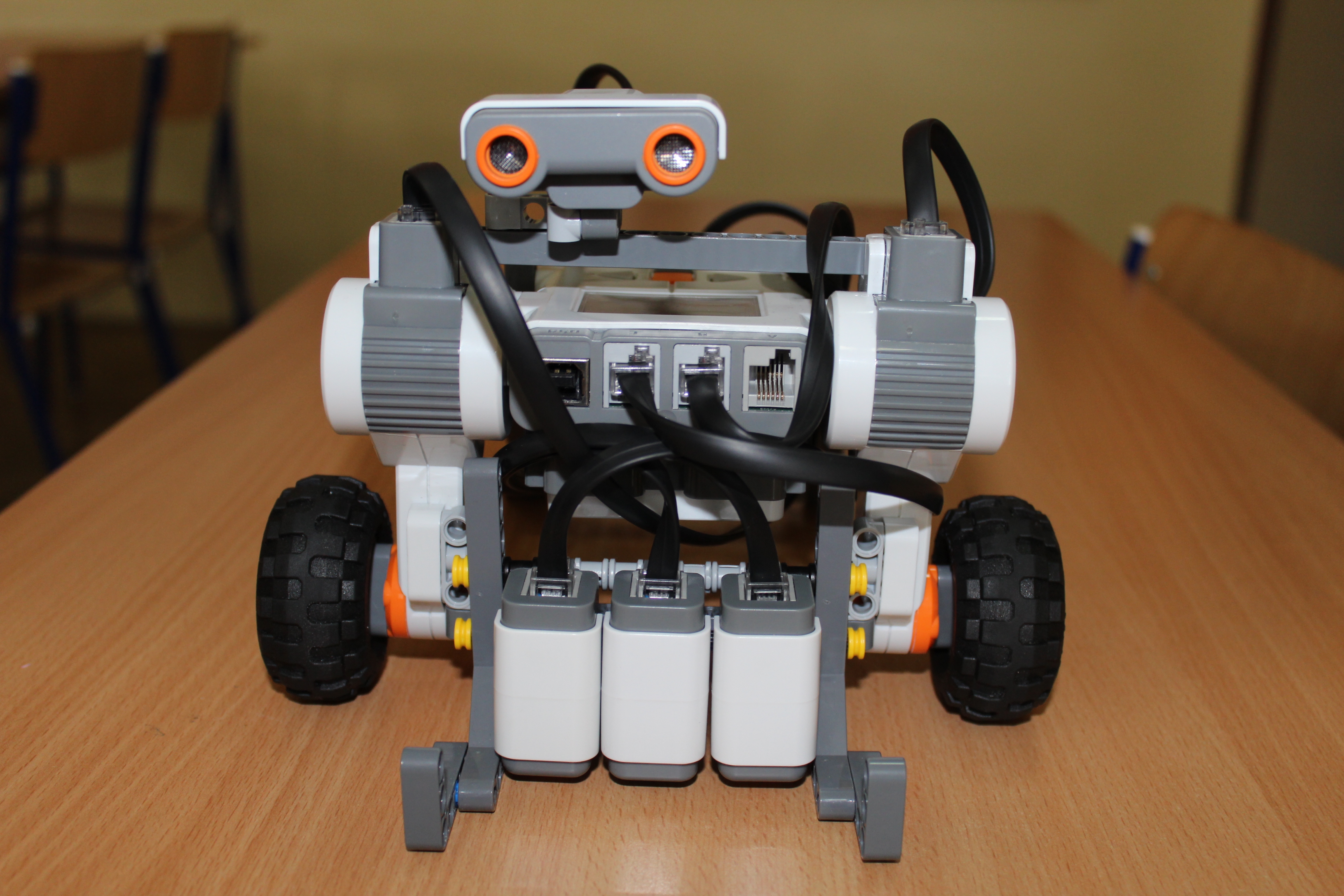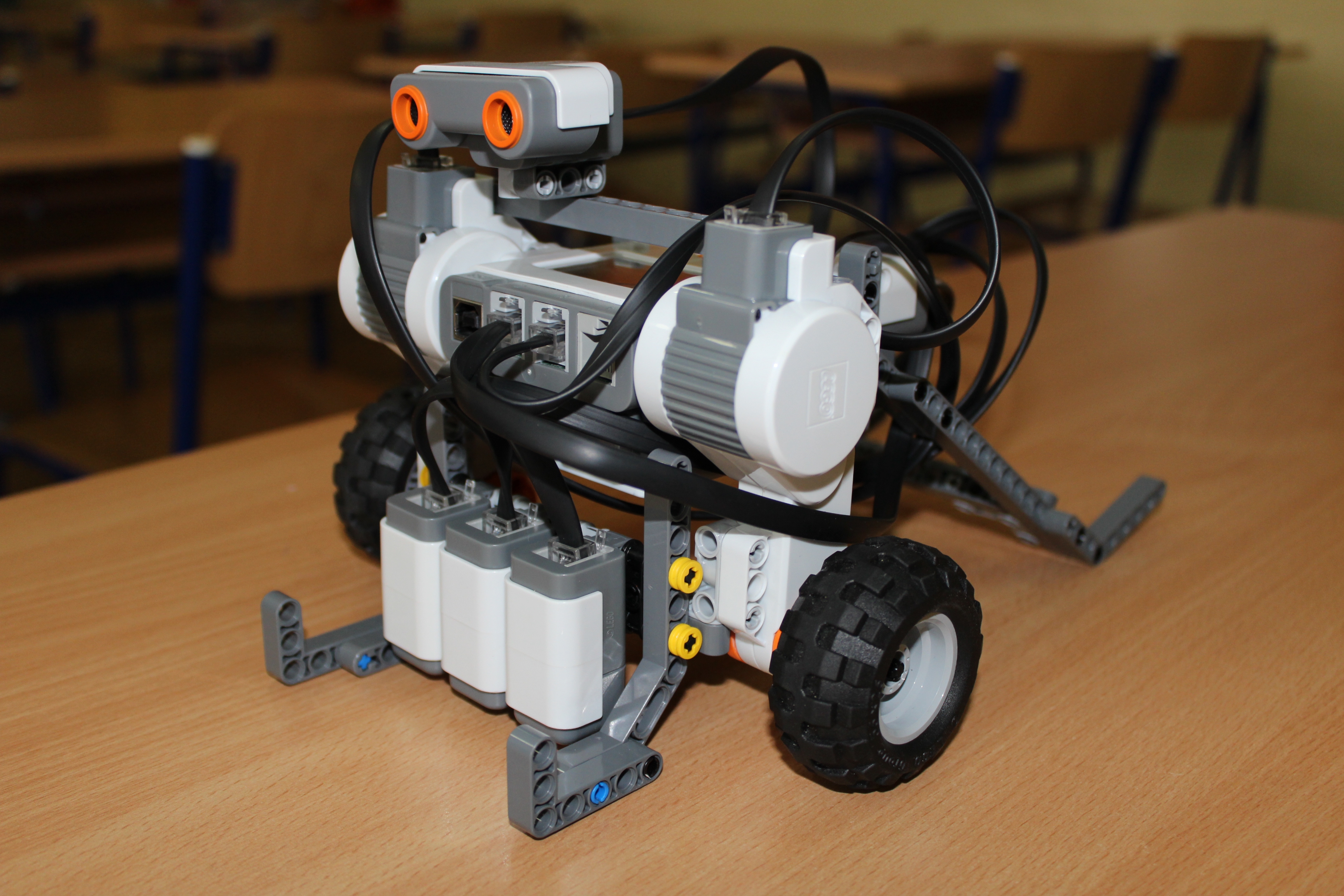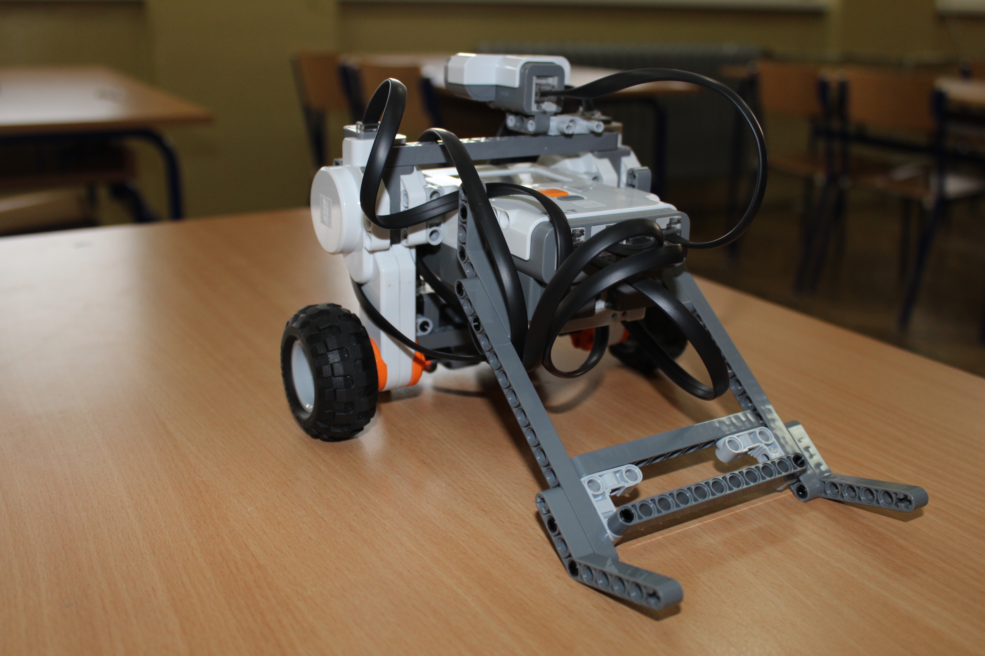 Na svah sme pridali čiernu čiaru pre zjednodušenie navádzania robota. Robota sme vybavili dvomi svetelnými senzormi po stranách, jedným farebným senzorom v strede a ultrazvukovým senzorom vpredu. Po spustení programu robot nájde čiaru a sleduje ju. Ak senzor vzdialenosti zistí malú vzdialenosť, robot sa otočí a ide smerom hore. Ak zistí na oboch svetelných senzoroch čiernu farbu, otočí sa a spustí sa dole svahom.