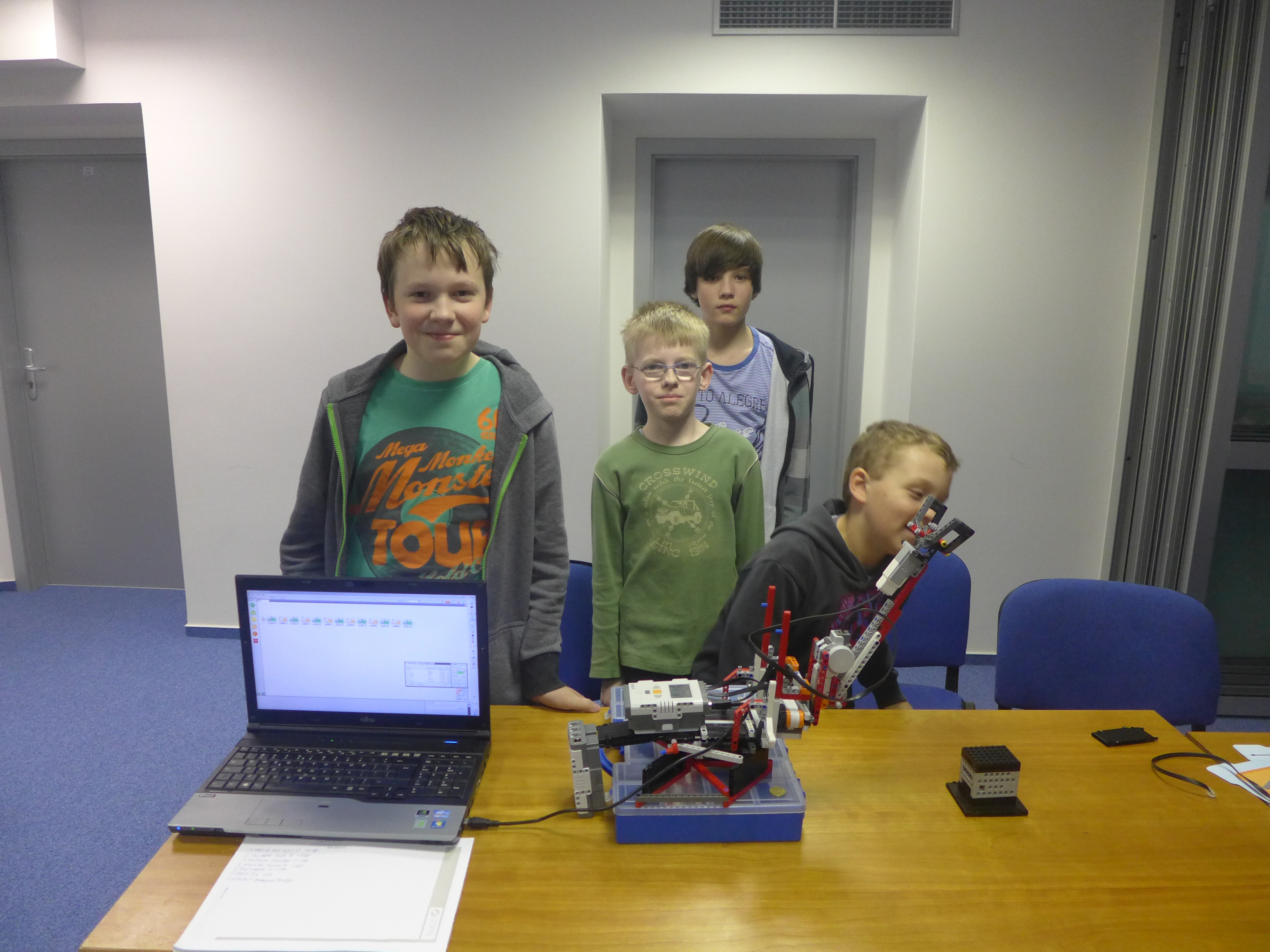 Na výstave v Melbourne sme sa poriadne natrápili, lebo náš tím sa rozhodol úlohu riešiť pomocou robotickej ruky. Rozmýšľali sme aj nad niečim podobným, ako používa robot na riešenie rubikovej kocky (http://tiltedtwister.com/tiltedtwister2.html), ale chceli sme to vyskúšať ináč. Vlastný návrh nebol dostatočne pevný, tak sme ako základ použili návod zo stránky http://www.nxtprograms.com/robot_arm - bolo ale potrebné postaviť ju na inej základni a mechanizmus na uchopenie sme použili iný, aby stred uchopenia bol v strede otáčania celej ruky.
