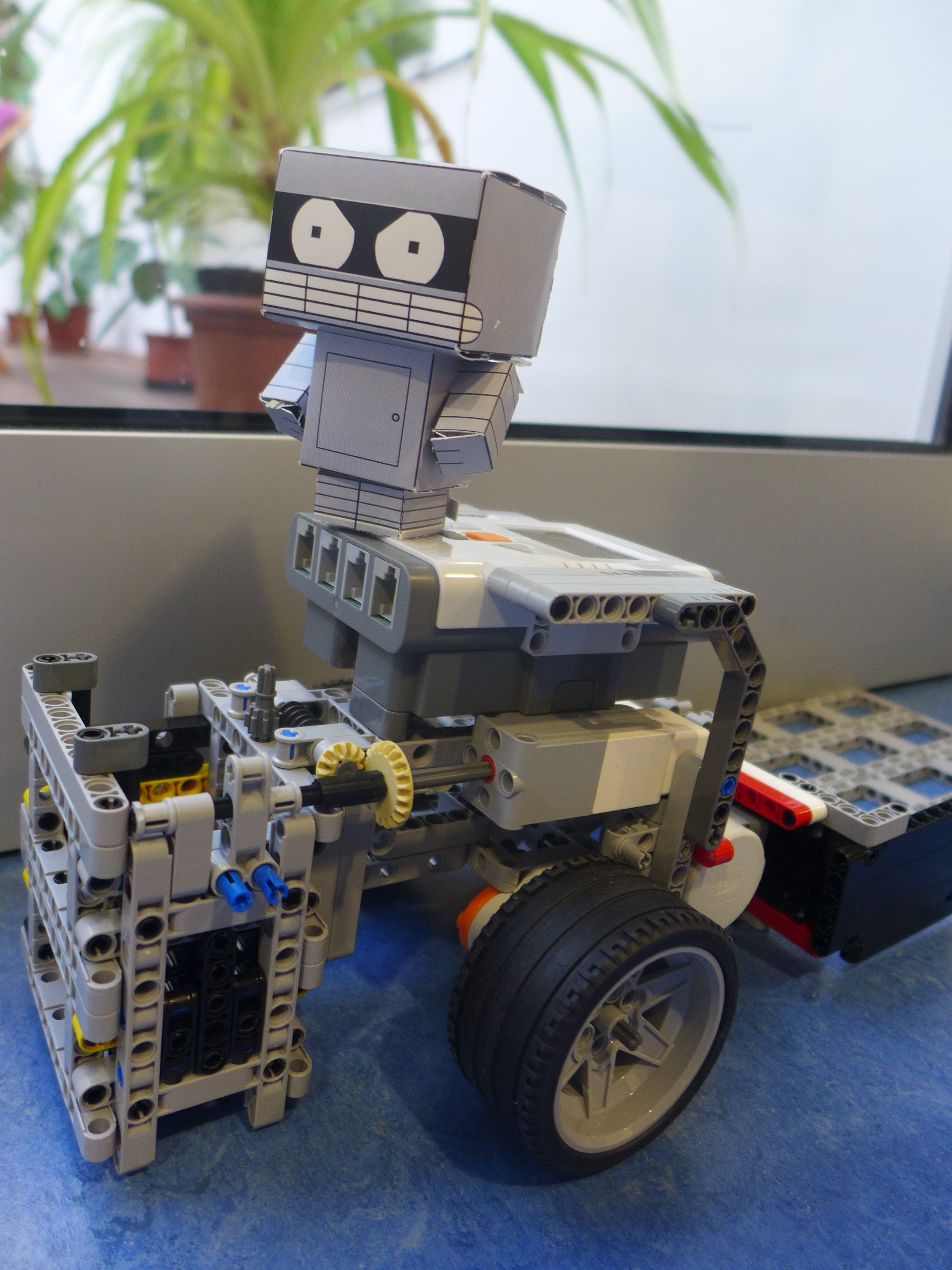 Skúšali sme dlaždice zo štuplíkových platničiek, ale tie sa zasekávali v zásobníku, vyrobili sme teda iný zásobnik na O-rámiky. Zásobník je zospodu zablokovaný bionicle zubom, aby dlaždice samé nevypadávali. Na položenie jednej dlaždice urobí zub jednu otočku, pritom jedna vypadne, povysunie ju von a znova zablokuje ostatné dlaždice v zásobníku. Takto môžme dlaždicu položiť kam treba.