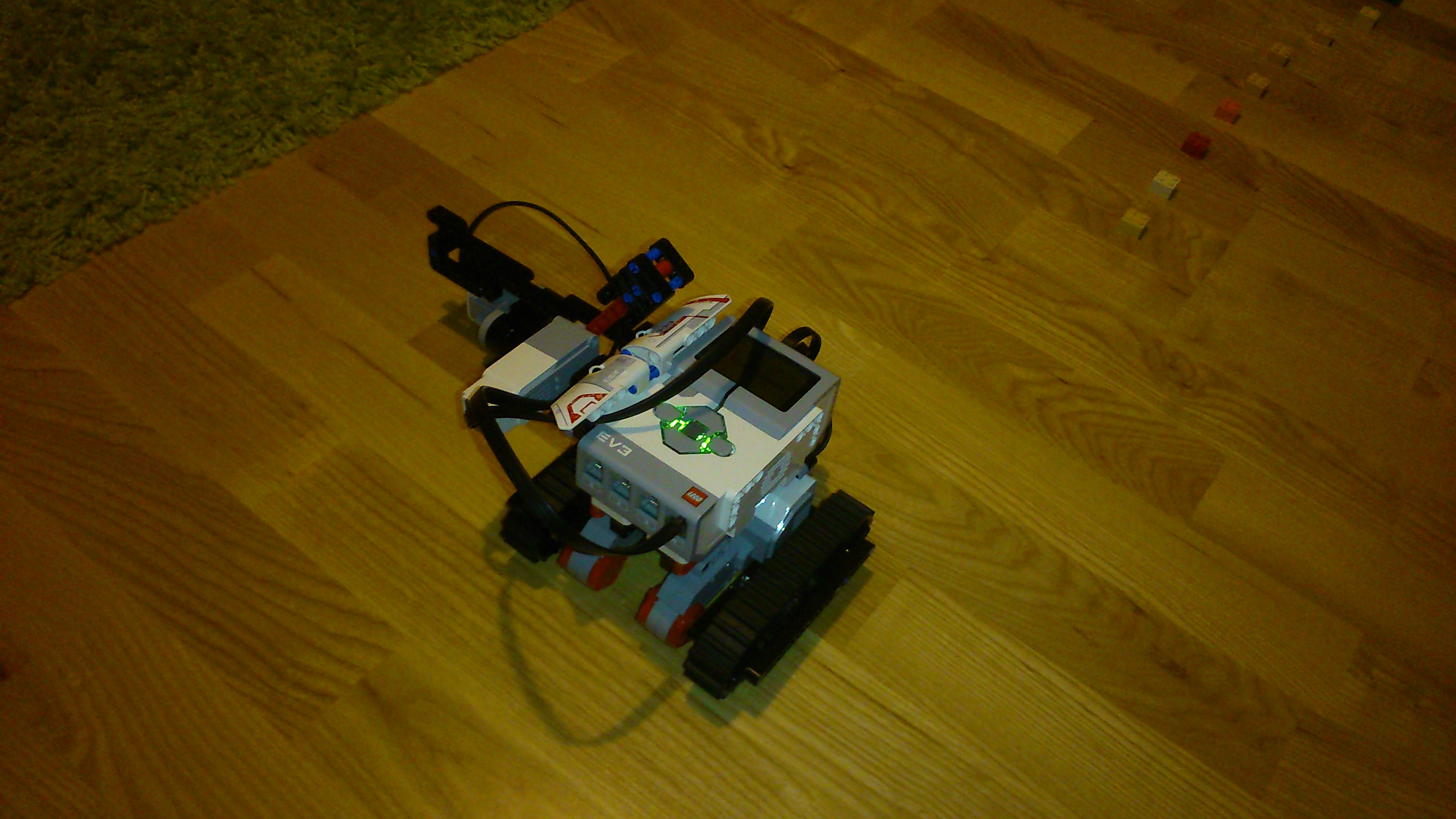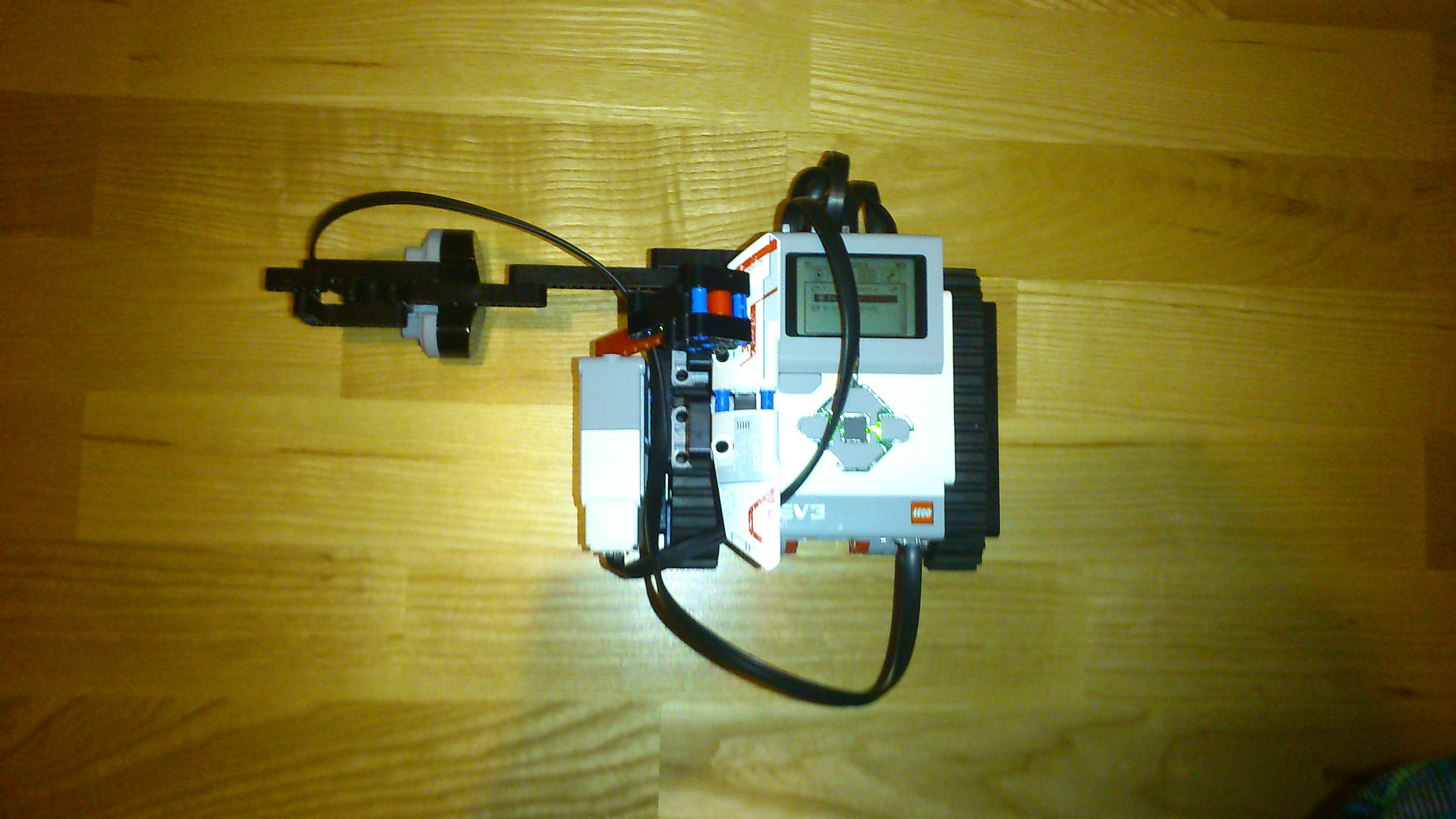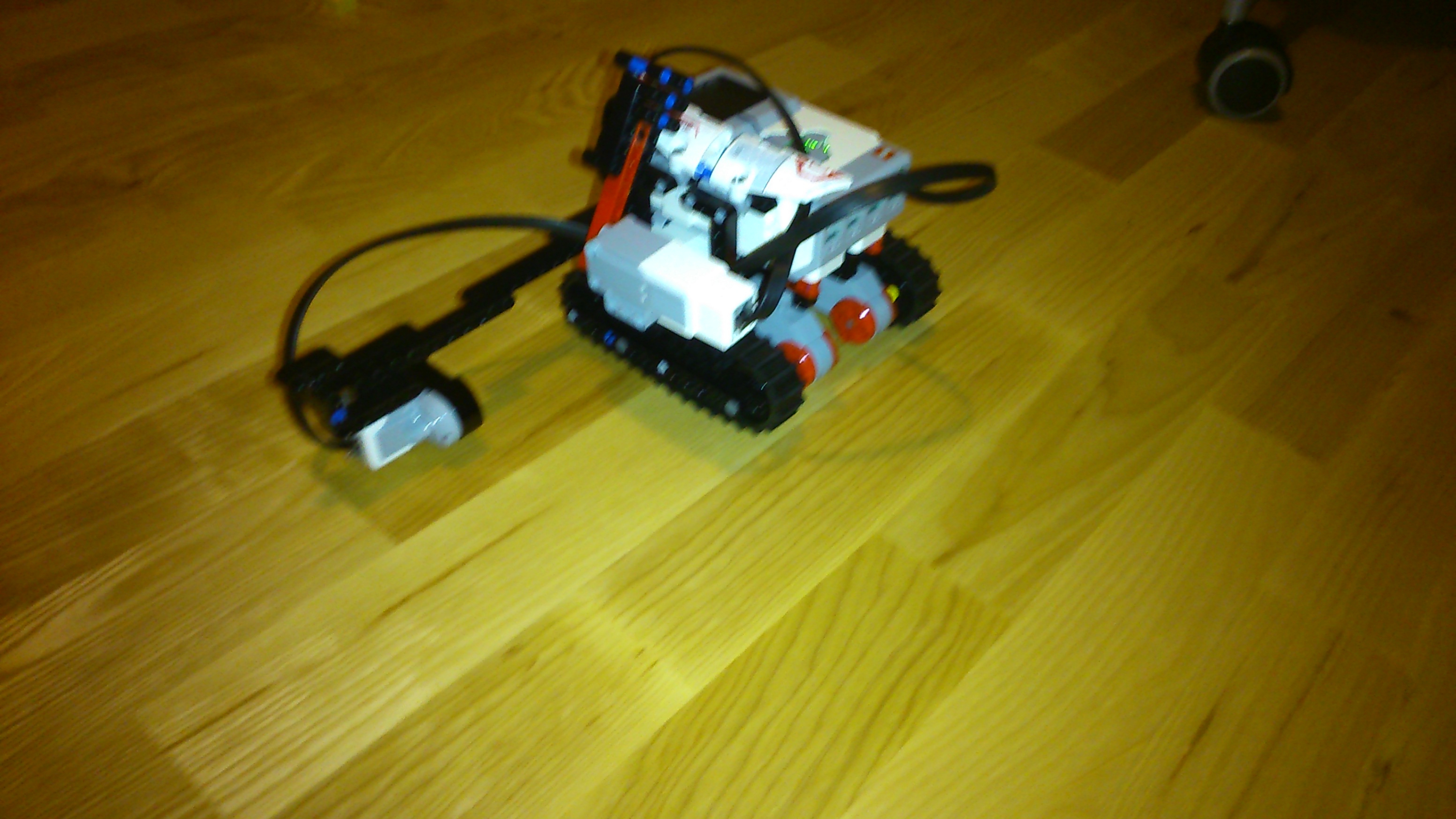 Tento robot ma jeden infracerveny senzor na ratanie kociek (ultrasonicky nebol k dispozicii) , dva servo motory na pohyb , jeden mensi motor na sklopenie kladiva na odsunutie kociek .