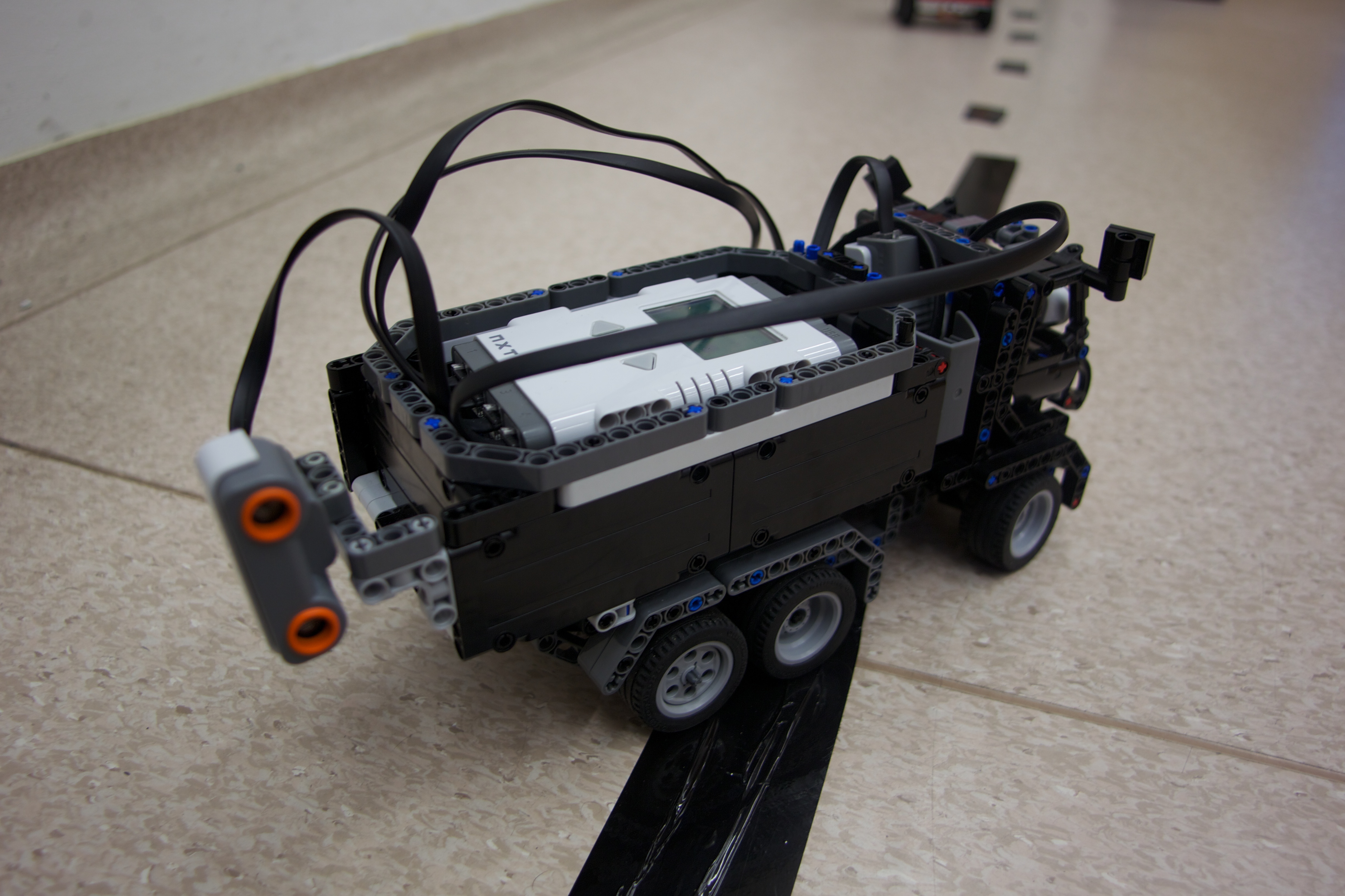 Robot má dva ultrazvukové senzory. Jeden je umiestnený v kabíne vodiča a slúži na detekciu auta idúceho pred robotom. Druhý je umiestnený na zadnej hrane robota a slúži na detekciu vozidla pri predbiehaní.
