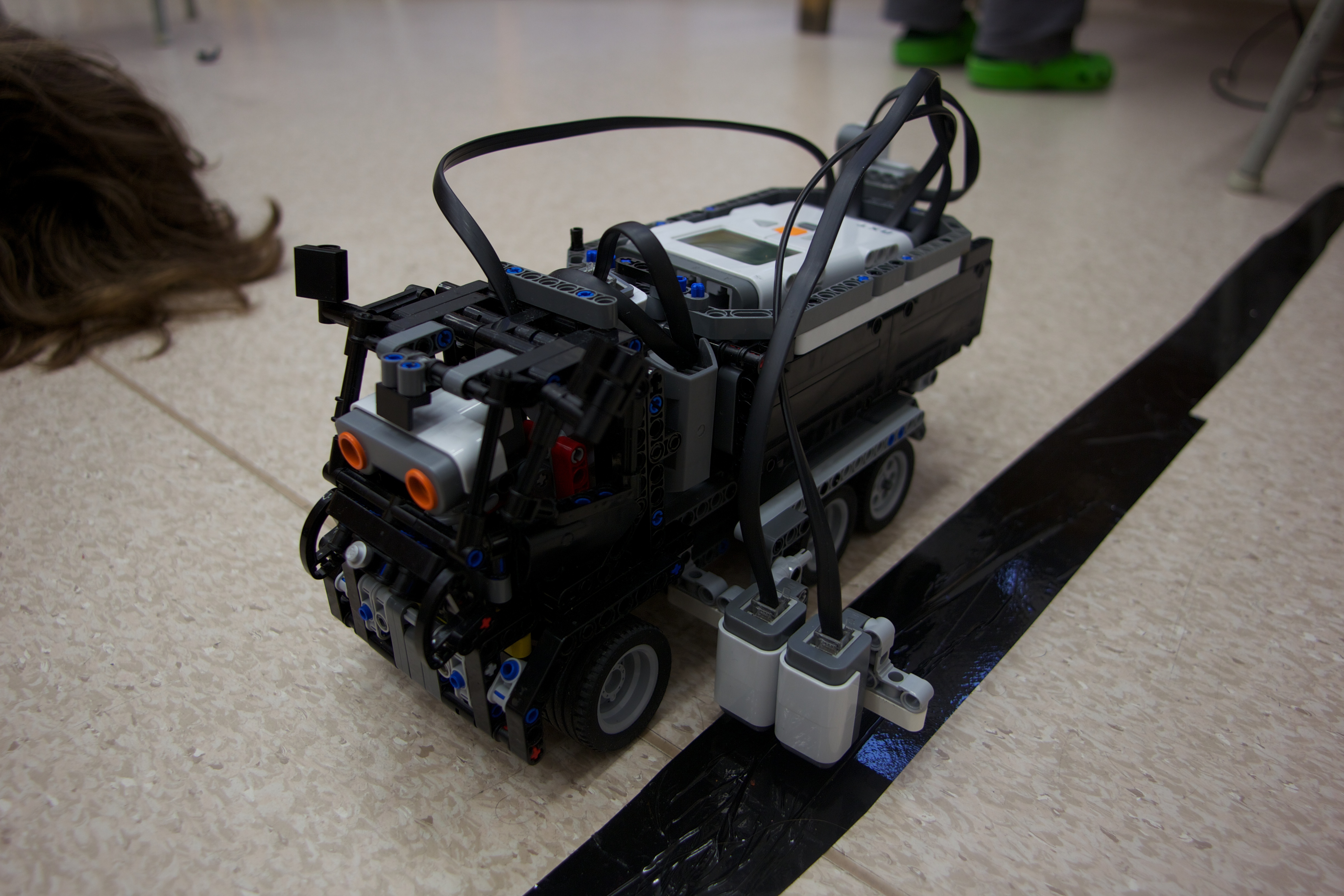 Základ mechanickej časti robota tvorí upravená stavebnica Lego Technic. Hlavnou úpravou bolo pridanie motorov na pohon, točenie kolesami, senzorov a kocky.