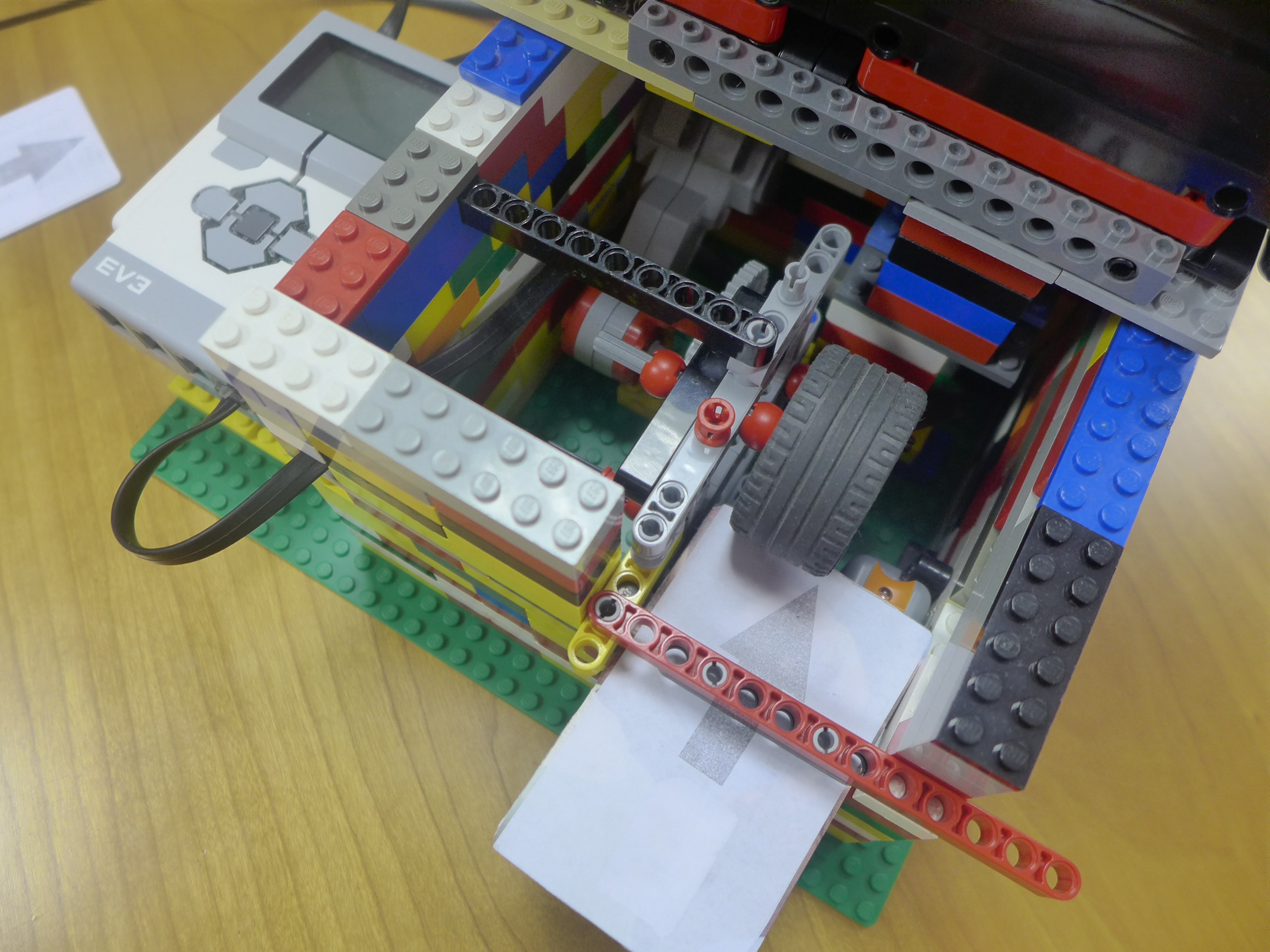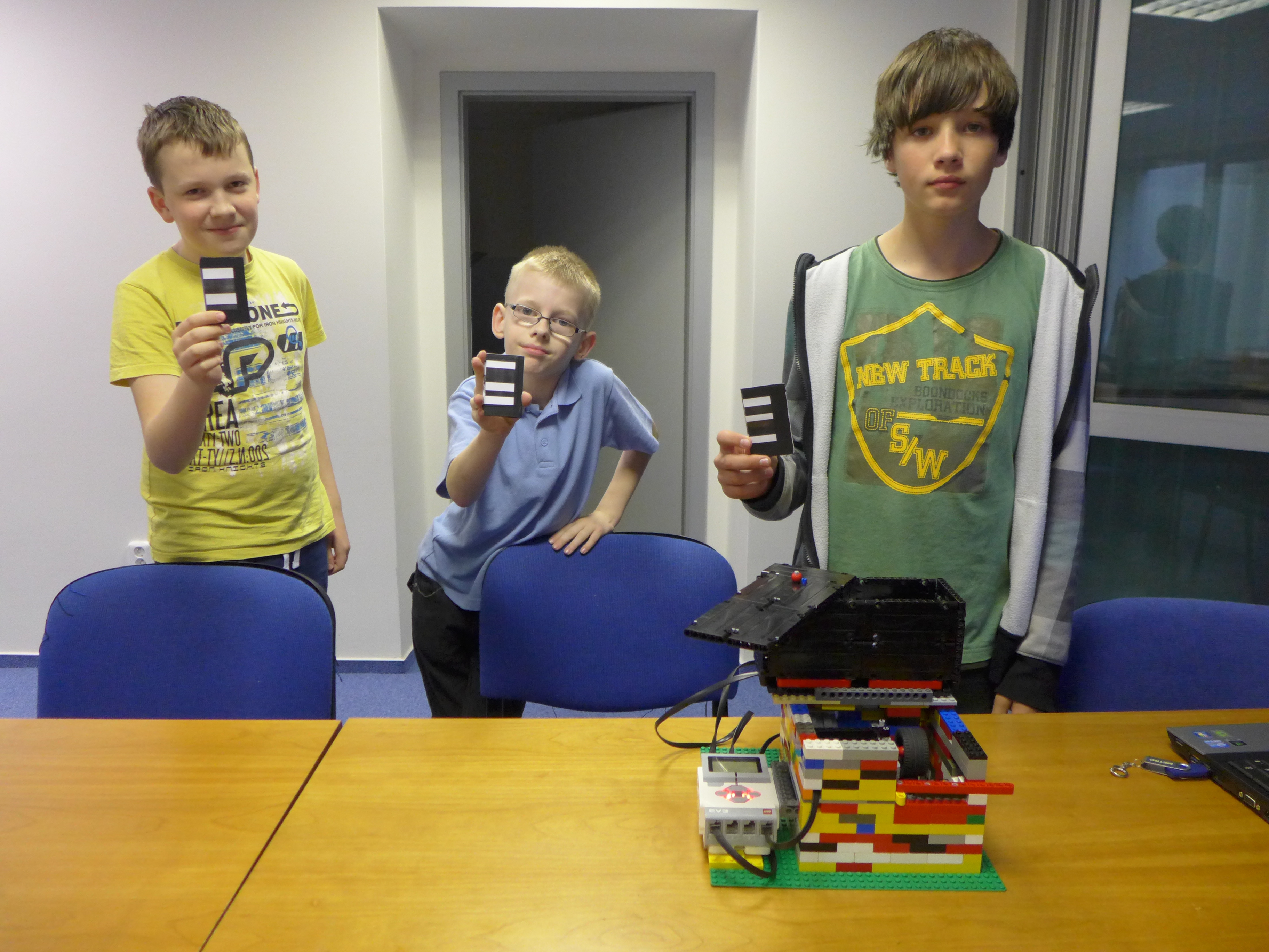 Ten istý skener sme pripojili ku EV3 aj ku NXT kocke a zisťovali sme akú najvyššiu citlivosť snímania karty skener dokáže. NXT kocka dokázala celkom spoľahlivo snímať až na 16 pozícií, pri EV3 sa podarilo dosiahnuť presnosť na 12 pozícií. Skenovanie by bolo spoľahlivejšie, ak by sme posun karty sprevodovali na ešte pomalší pohyb. Pre jednoduchšiu prácu so zoznamom kódov sme si ale nakoniec vybrali EV3 kocku (pozná blok Array Operations).