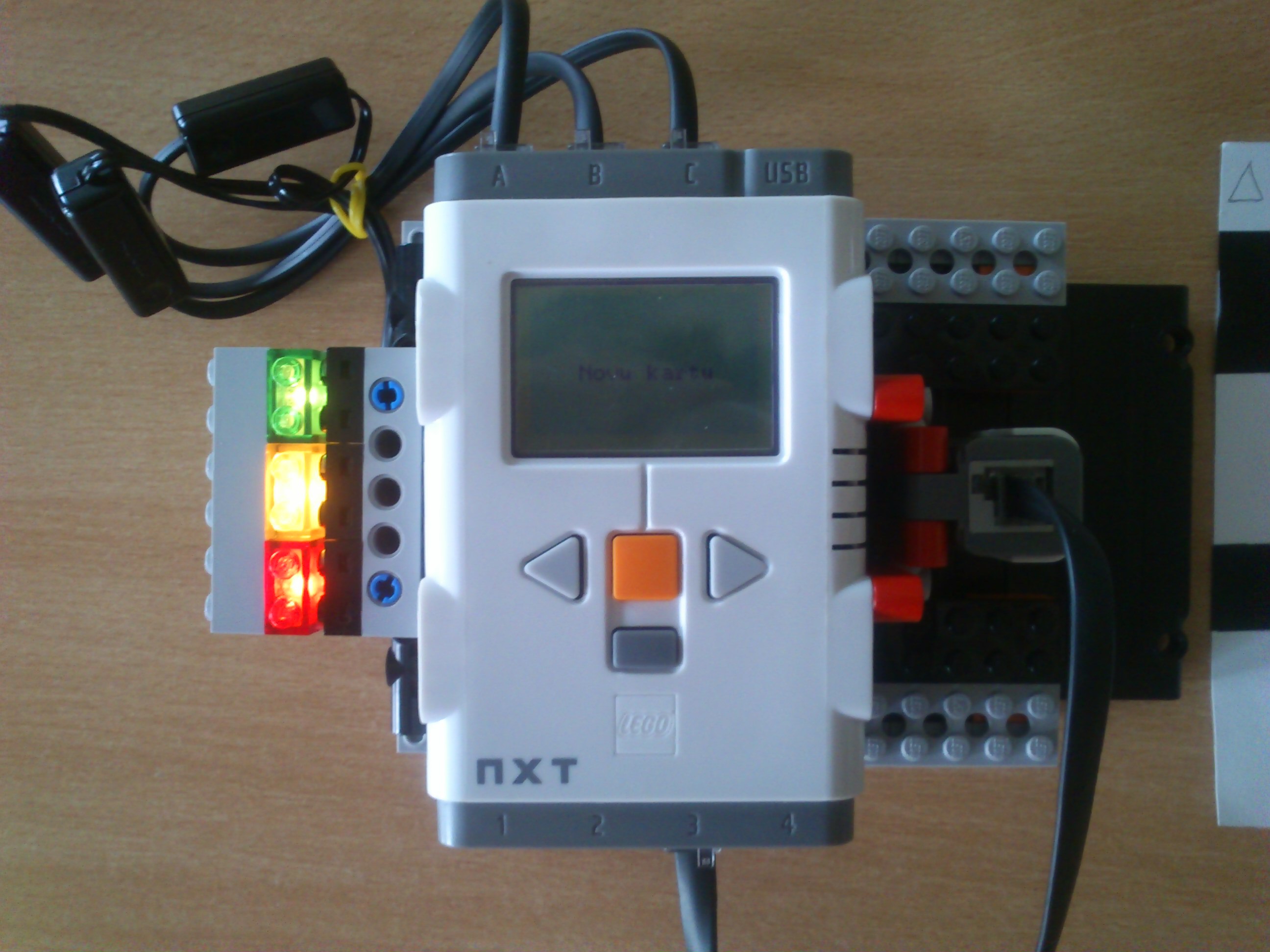 Svetlá: keď sa robot učí novú kartu, svietia všetky tri svetlá. Potom sa rozsvieti žlté, čo znamená ,,pripravený". Po vložení karty ho nahradí buď zelené (správna karta) alebo červené svetlo (nesprávna karta).