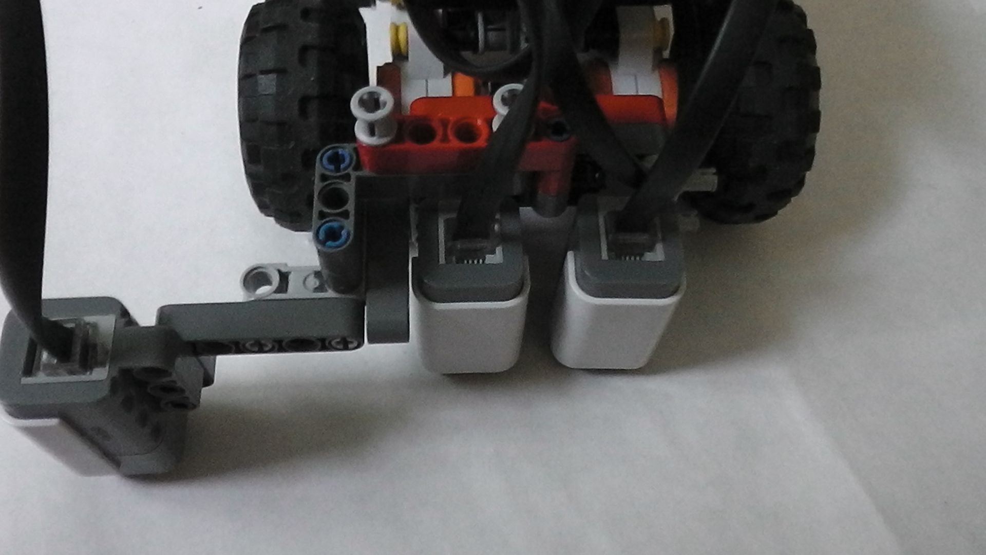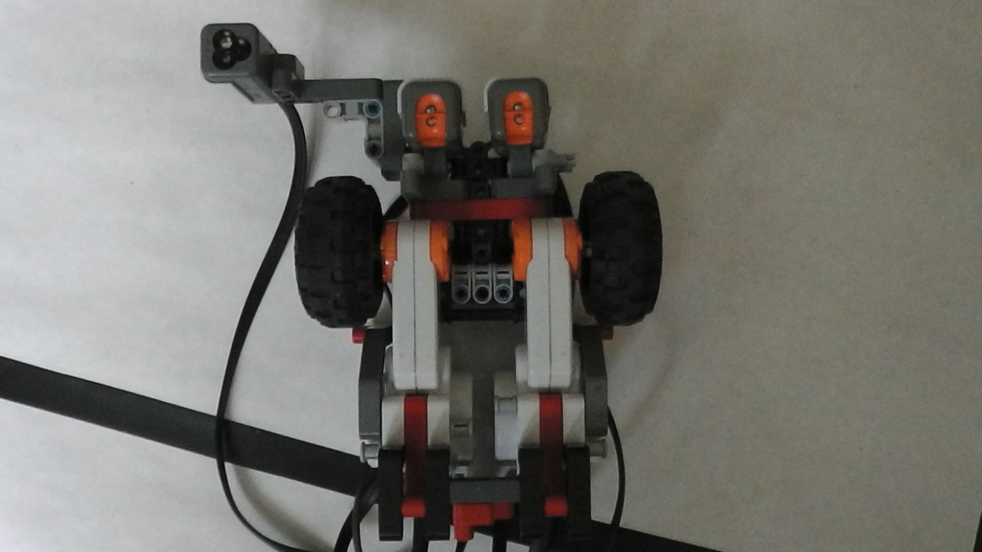 Robot pouźíva klasick,y podvozok s dvomi motormi, dva svetelné senzory na sledovanie čiary a jeden farebný senzor.