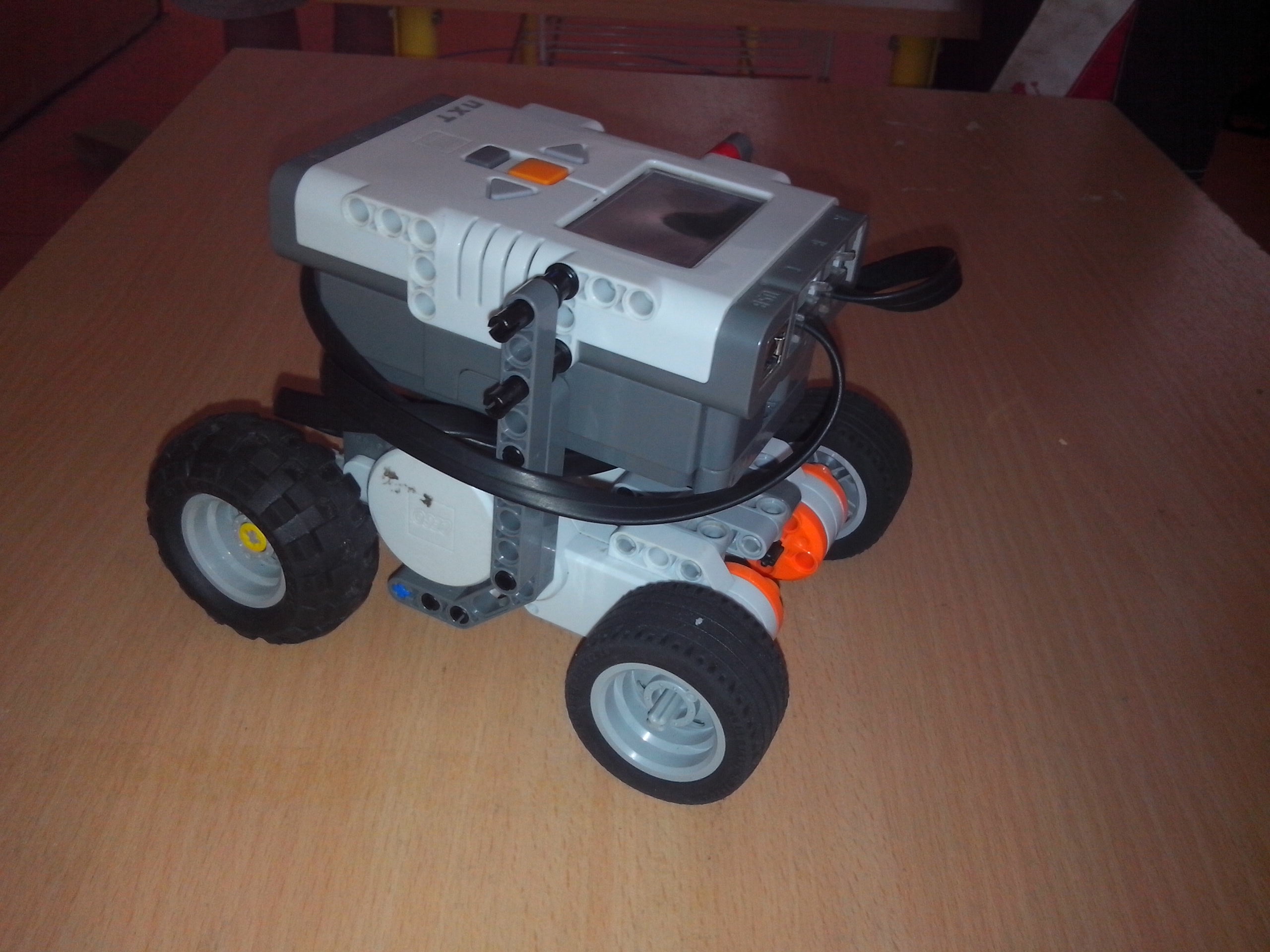 Toto zadanie nás veľmi potrápilo, snažili sme sa vytvoriť robota, ktorý by bol sám schopný preniesť sa cez priepasť, nakoniec sme si ale museli vystačiť s mostom, ktorý si robot pritlačí nad priepasť a tak jednoducho prejde na druhú stranu.