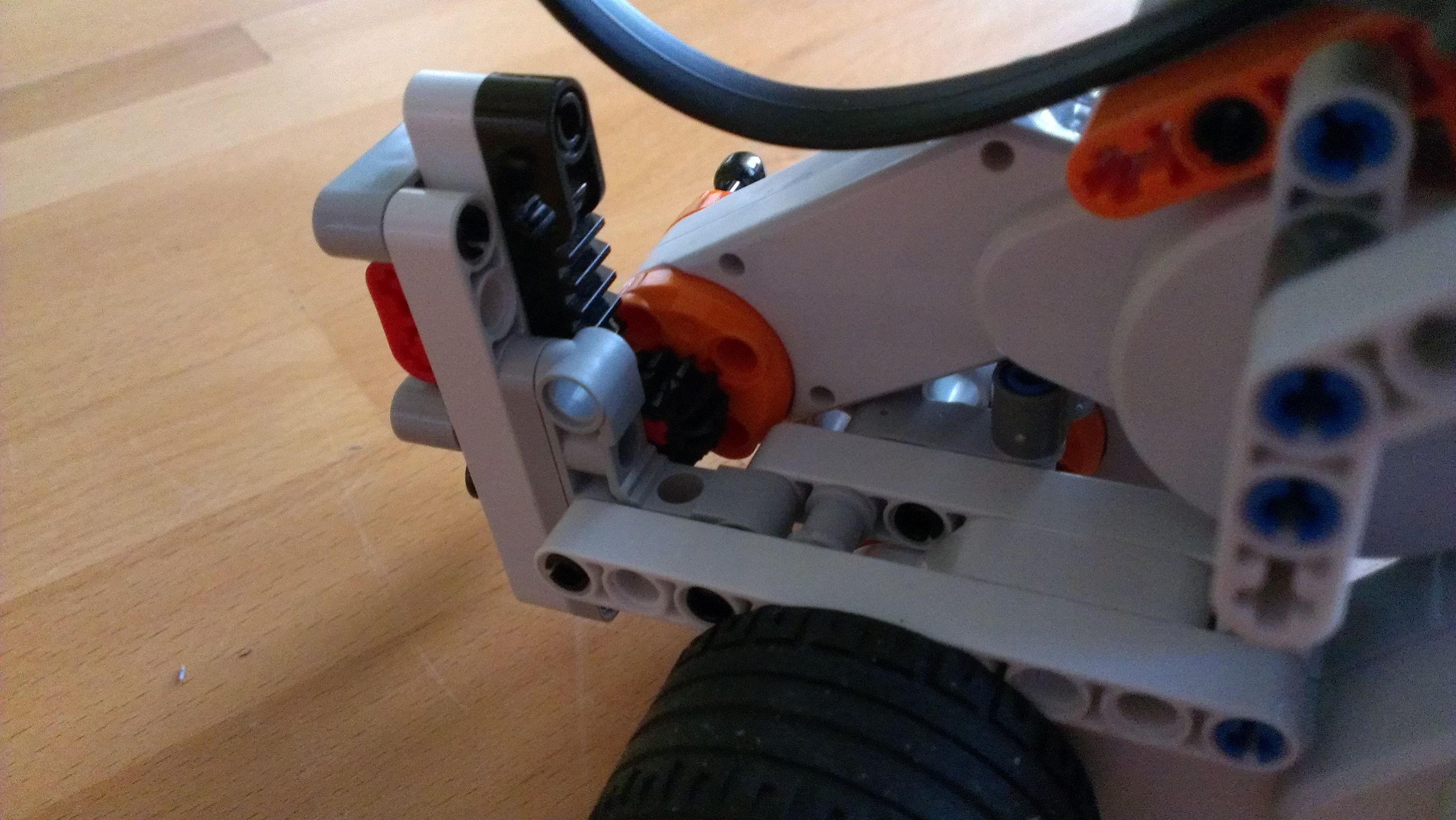 Na robota sme použili 2 motory na pohon a jeden na spúšťanie. Na spúšťací mechanizmu sme použili ozubený hrebeň.