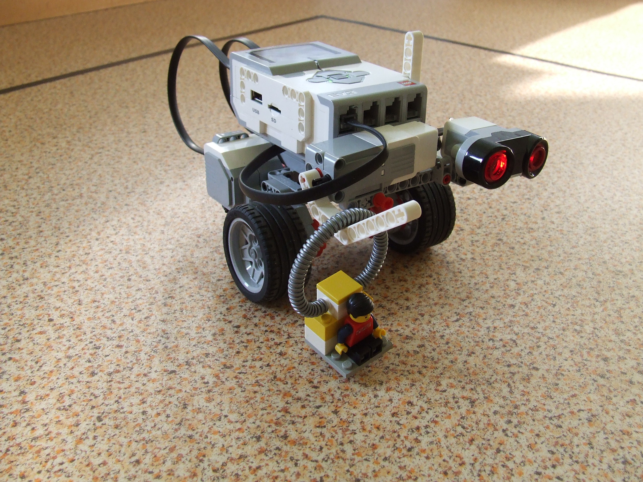 Robot na pohyb používa dva motory, ktoré ovládajú kolesá. Vie ísť rovno, aj zatáčať. Na meranie prejdenej vzdialenosti používa ultrazvukový senzor. Mr. Spock je umiestnený v teleportovacej kapsuly a na zadané miesto ho zloží robot pomocou ramena. Rameno je poháňané malým motorom.