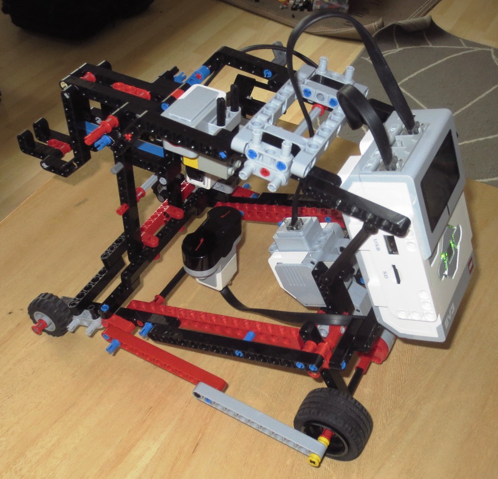 Robot odváži štyri predmety rôznej hmotnosti a to pomocou váhy, ktorej závažie sa podľa váhy pohybuje v smere od infračerveného senzora, ktorý meria vzdialenosť. Čím je predmet ťažší, tým väčšia hodnota je na výstupe senzora. Tieto hodnoty sa zapíšu do poľa. V druhom kroku robot uloží na zem predmety v poradí od najťažšieho po najľahší vďaka hodnotám, ktoré nameral pri "vážení", najprv však musel od absolútnej hodnoty odrátať korekciu a zvyšené číslo vydeliť dvoma. Takto dostal počet otáčok kolesa a predmety vďaka tomu uložil do poradia od najťažšieho po najľahší.