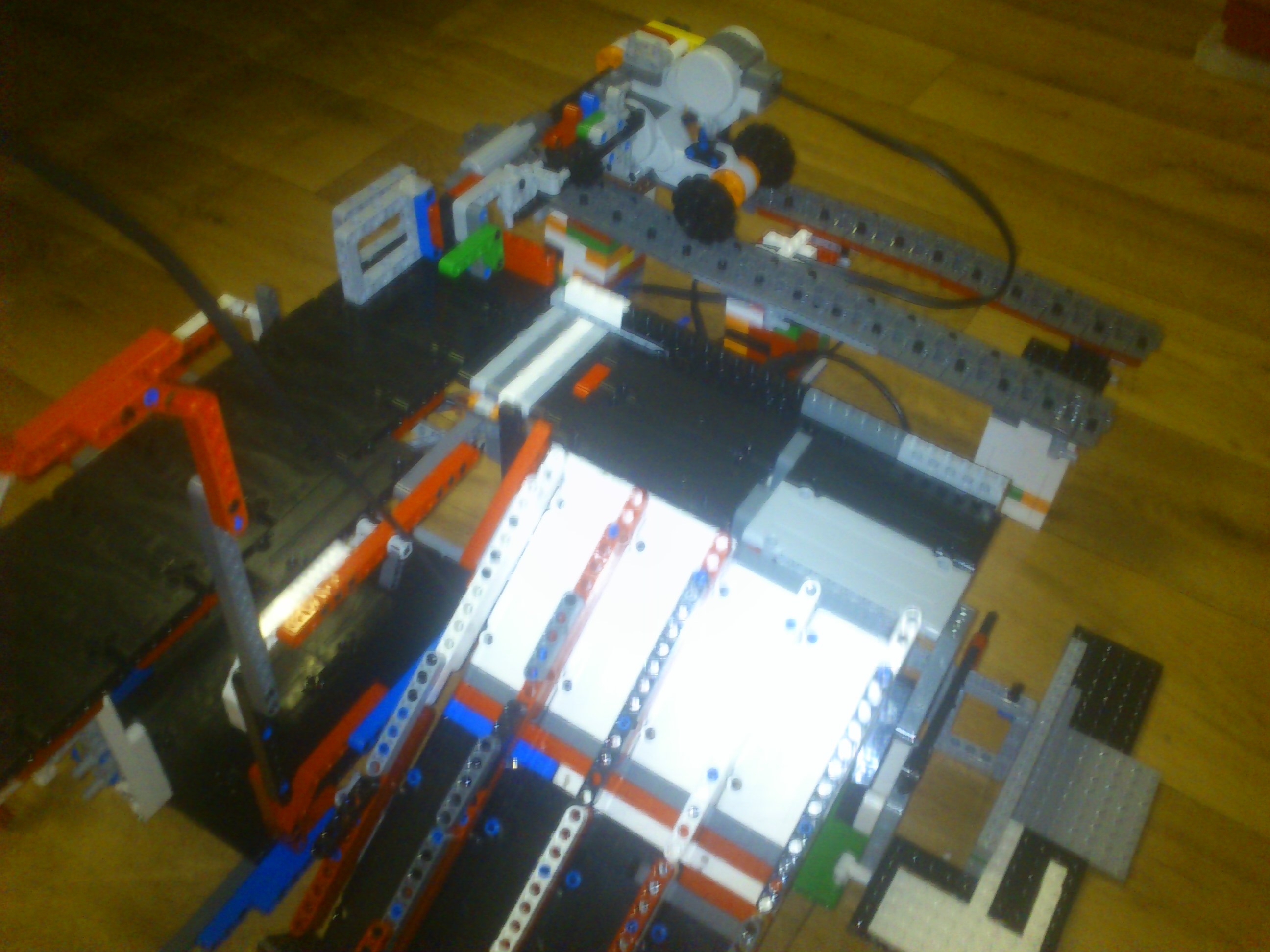 Druhú časť tvorí triedička. Robot vezme vajíčko do triediacej časti a pomocou piestu ho vysunie do správneho priečinka.