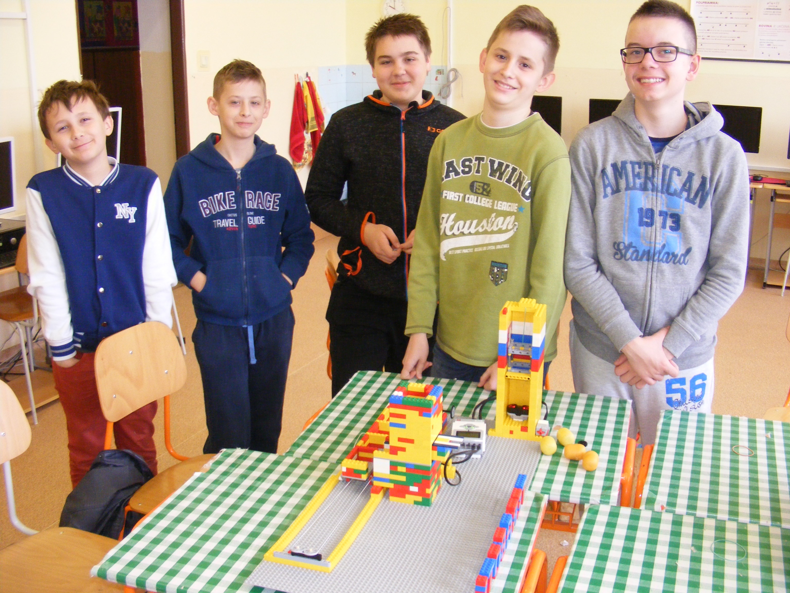 Mechanicky robot funguje, len sme nestihli úplne odladiť softvér a vajíčka nie sú uložené podlľa hmotnosti.
