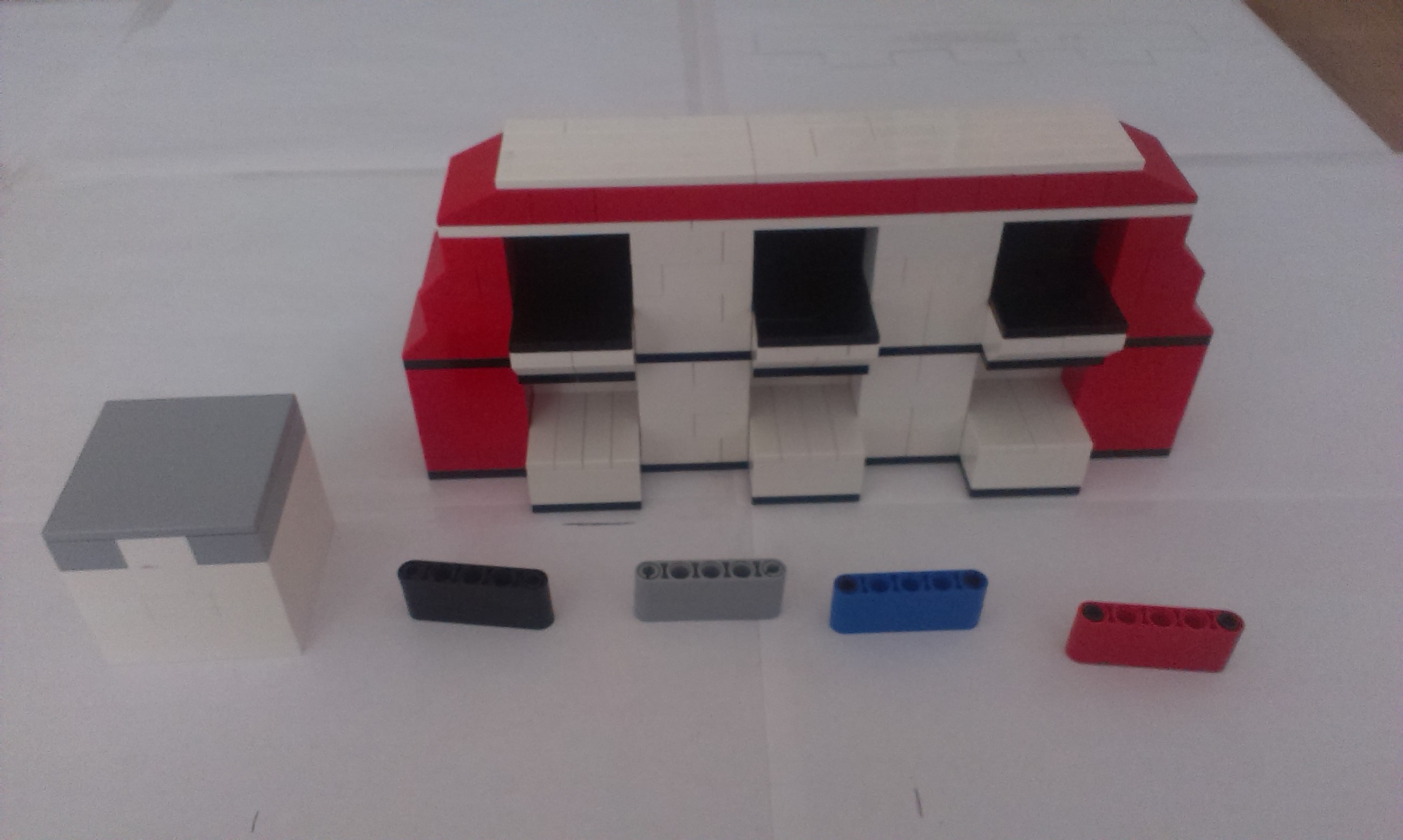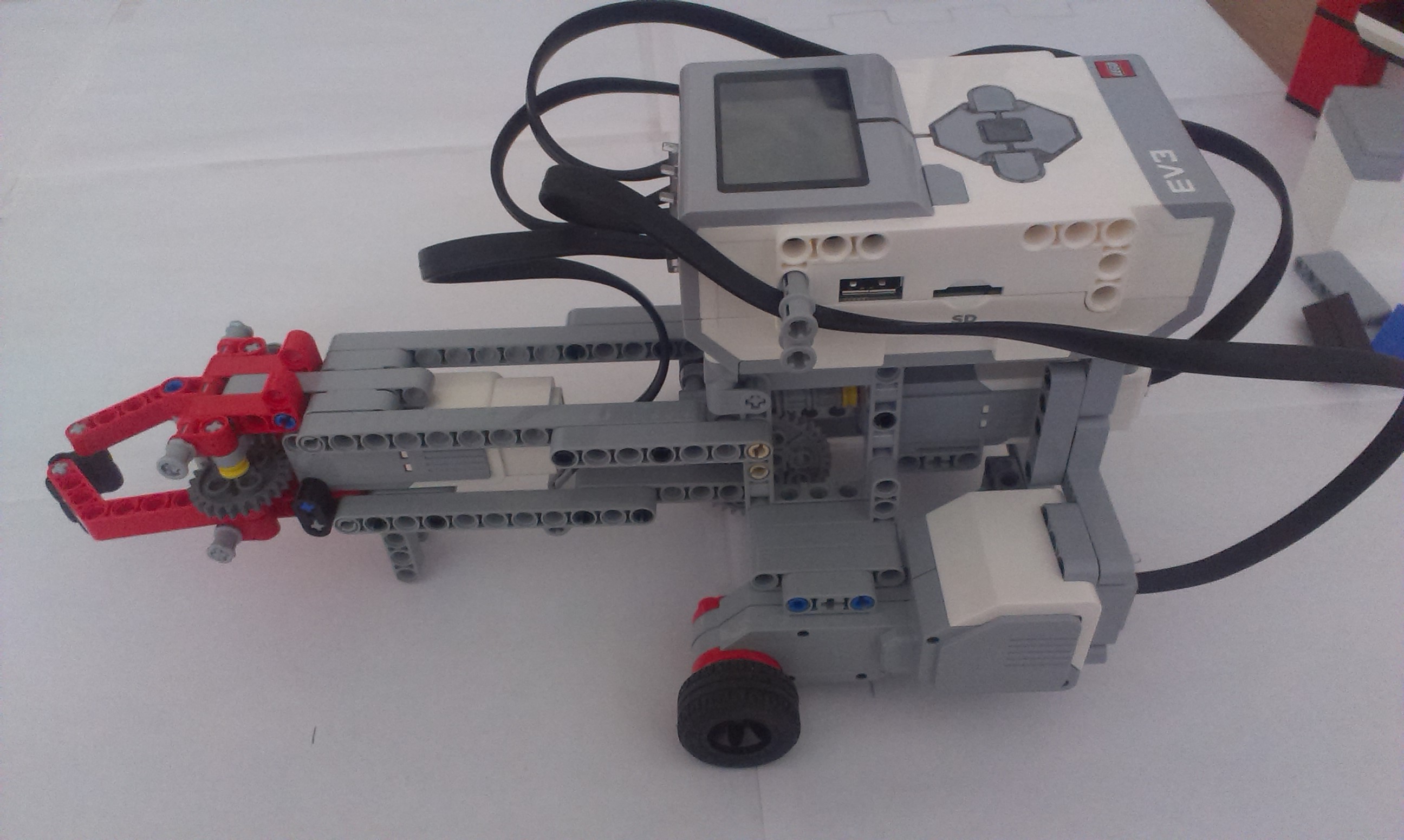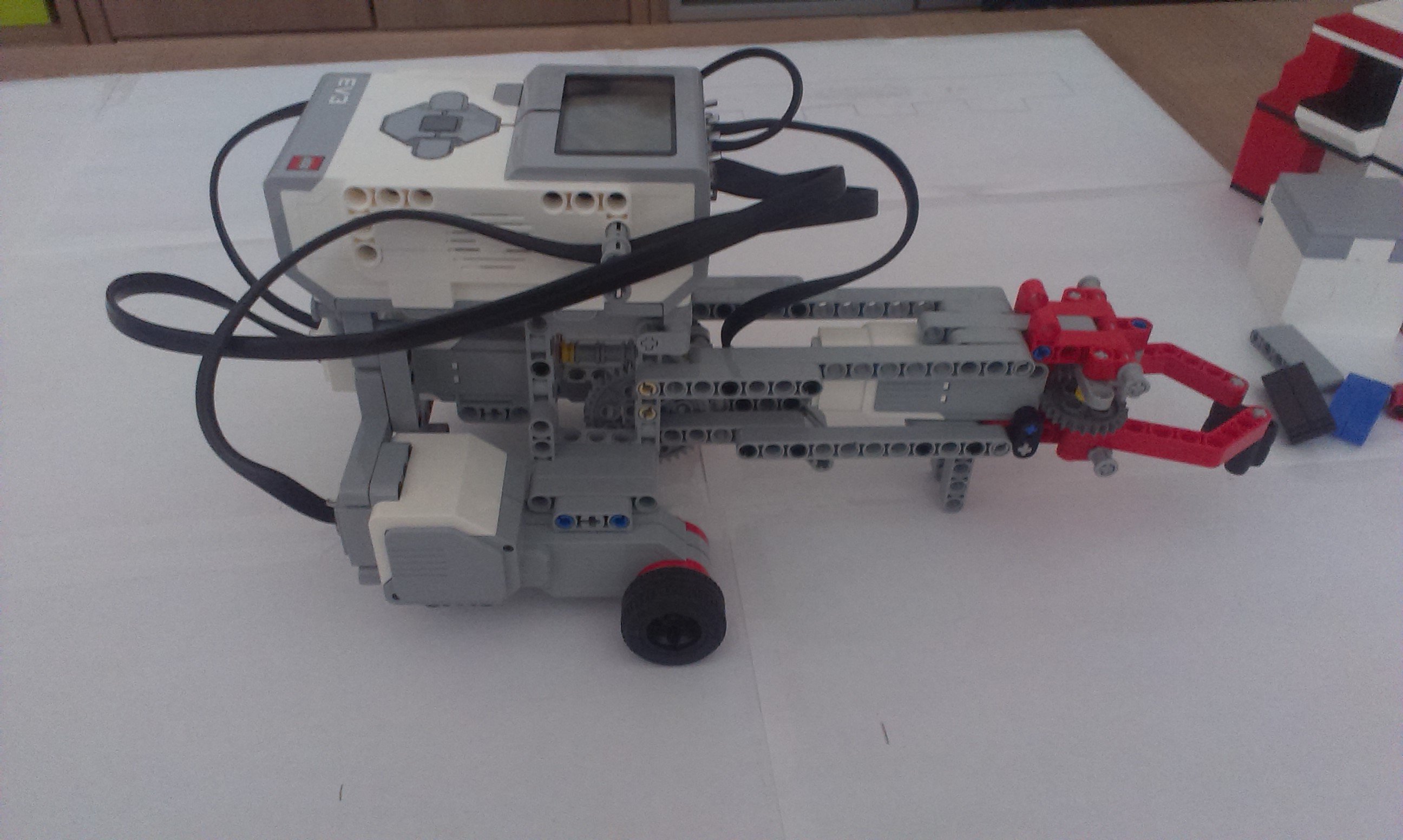 Na toto zadanie sme sa rozhodli použiť dvoch robotov, jeden ktorý slúži ako pás na podávanie dielov a druhý ako samotný ukladač. Neboli sme si istý, či môžeme použiť viac ako jedného robota, ale keďže v pravidlách je napísané „robotické stavebnice“, tak sme to spravili.