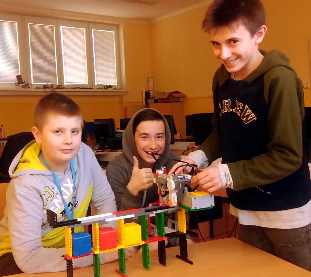 Vtipné riešenie s ozubenou kolajničkou a tie dve kladivká sú tiež super. Nie je to asi celkom doladené, bolo počuť niekedy prešmykovanie, či vidieť drobné zásahy rukou a určite by ste mohli ušetriť viacnásobné kladivkovanie, keby ste použili senzor, indikujúci, že kocka je naložená.Úloha je splnená pekne.