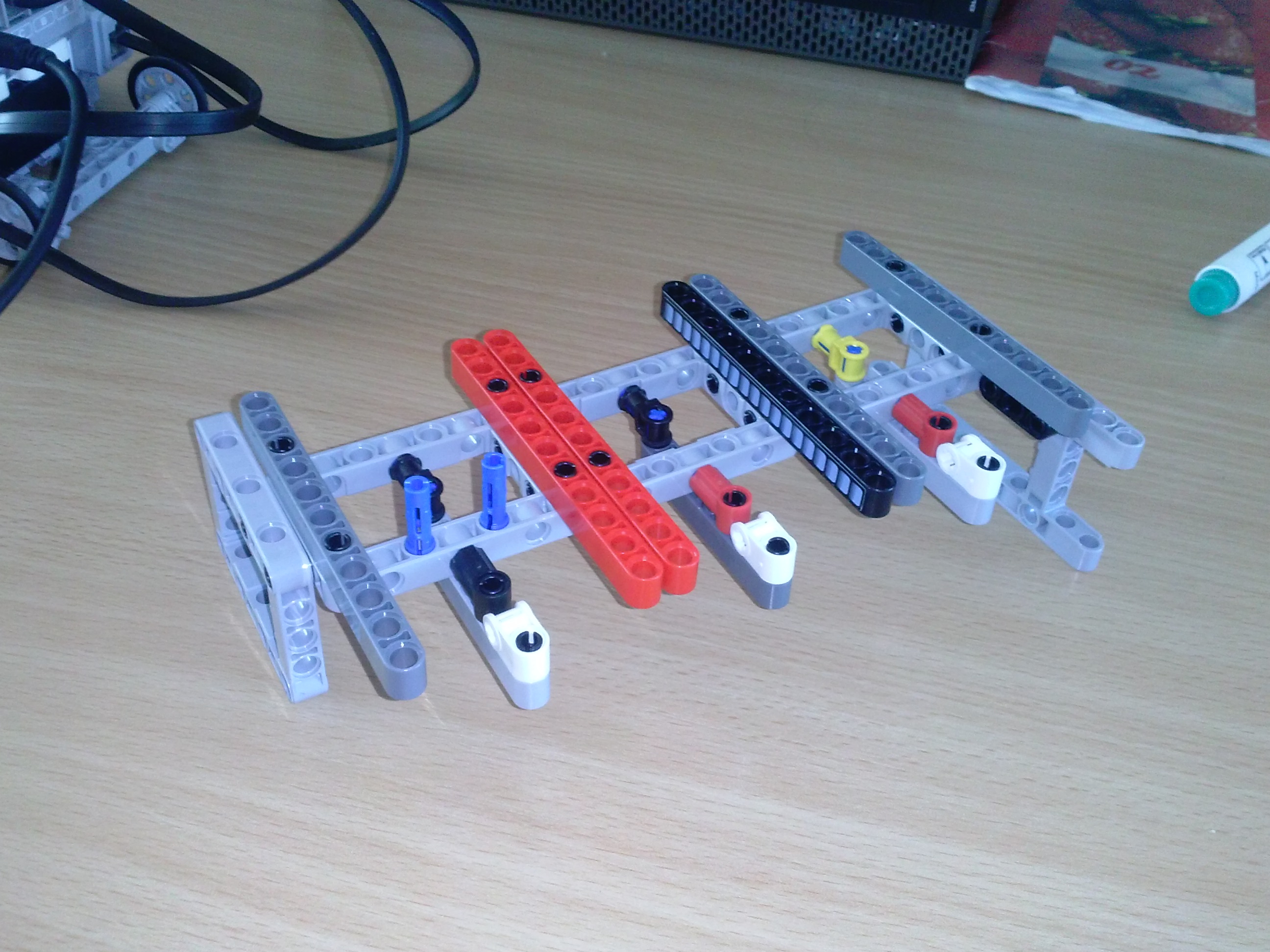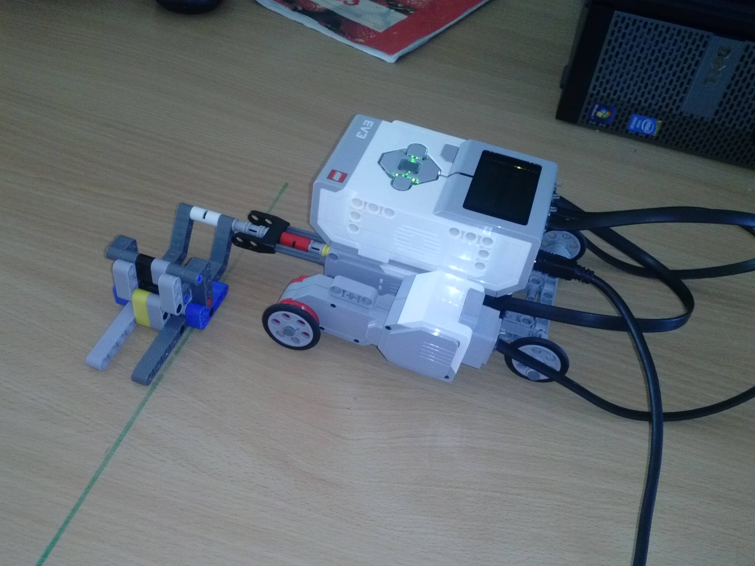 Túto úlohu sme sa snažili vyriešiť hlavne pomocou dobrej konštrukcie, aby sa robot v sklade pohyboval čo najpresnejšie. Robot sa používa dva motory na pohyb a jeden motor na rameno, ktoré je postavené tak, aby bolo schopné dvíhať a vykladat kocky na regál. Na začiatku vyložíme na rameno robota kocky. On ich následne zodvihne a vynesie k príslušnému regálu. Jednoduchým pohybom ramena smerom na dol sa kocka zachytí do regálu, pri čom časti ramena cez regál prekĺznu. Nakoniec sa robot vráti späť na základňu. Tento úkon robot zopakuje trikrát, aby boli všetky regály napĺnené kockami. Potom čo sa robot vráti na základňu po treťom vyôložení, na displej sa vypíše nápis VYNESENE. Ak klikneme na prostredné tlačidlo na EV3 kocke, na displej sa vypíše nápis CAKAM, teda robot už čaká na povel, že ktorú kocku má zobrať. Ak klikneme na prostredné tlačidlo, robot vyjde a zoberie kocku, ktorá je k nemu najbližšie. Ak klikneme na ľavé tlačidlo, robot vyjde a zoberie kocku, ktorá je druhá v poradí. Ak klikneme na pravé tlačidlo, robot vyjde a zoberie kocku, ktorá je k nemu najďalej.