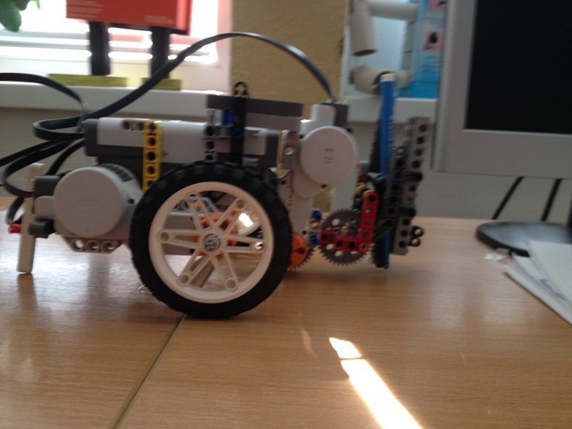 Nas robot pouziva 3 motory - 2 na pohyb a jenen na pohyb fixi. Nas robot vie nakreslit 3 druhy smajlikov podla vyberu