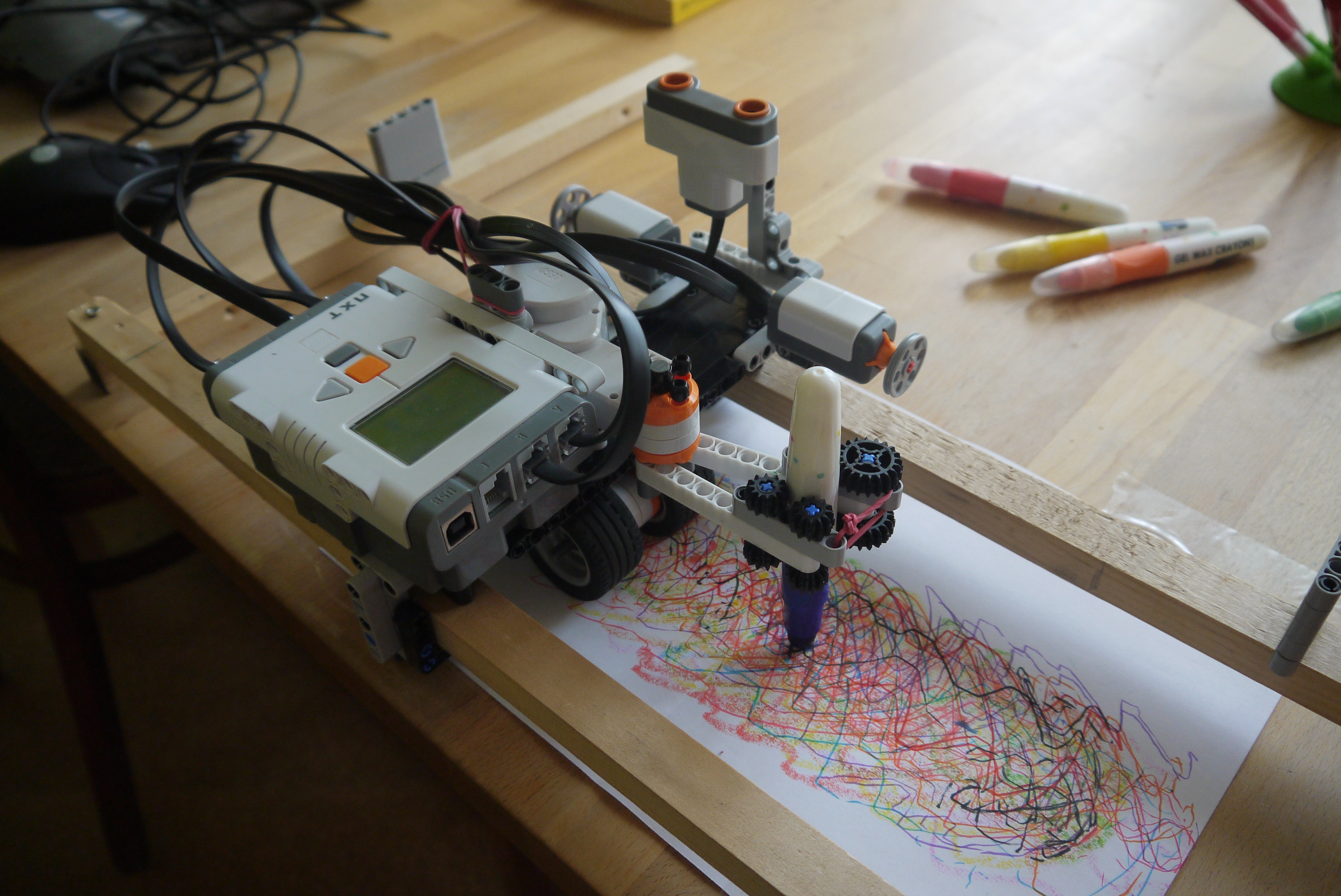 Chceli sme spraviť robota, ktorý by vedel maľovať obrazy. Minule sme čítali, že obraz Jacksona Pollocka bol vydražený ako najdrahší na svete, tak sme chceli spraviť niečo podobné :)