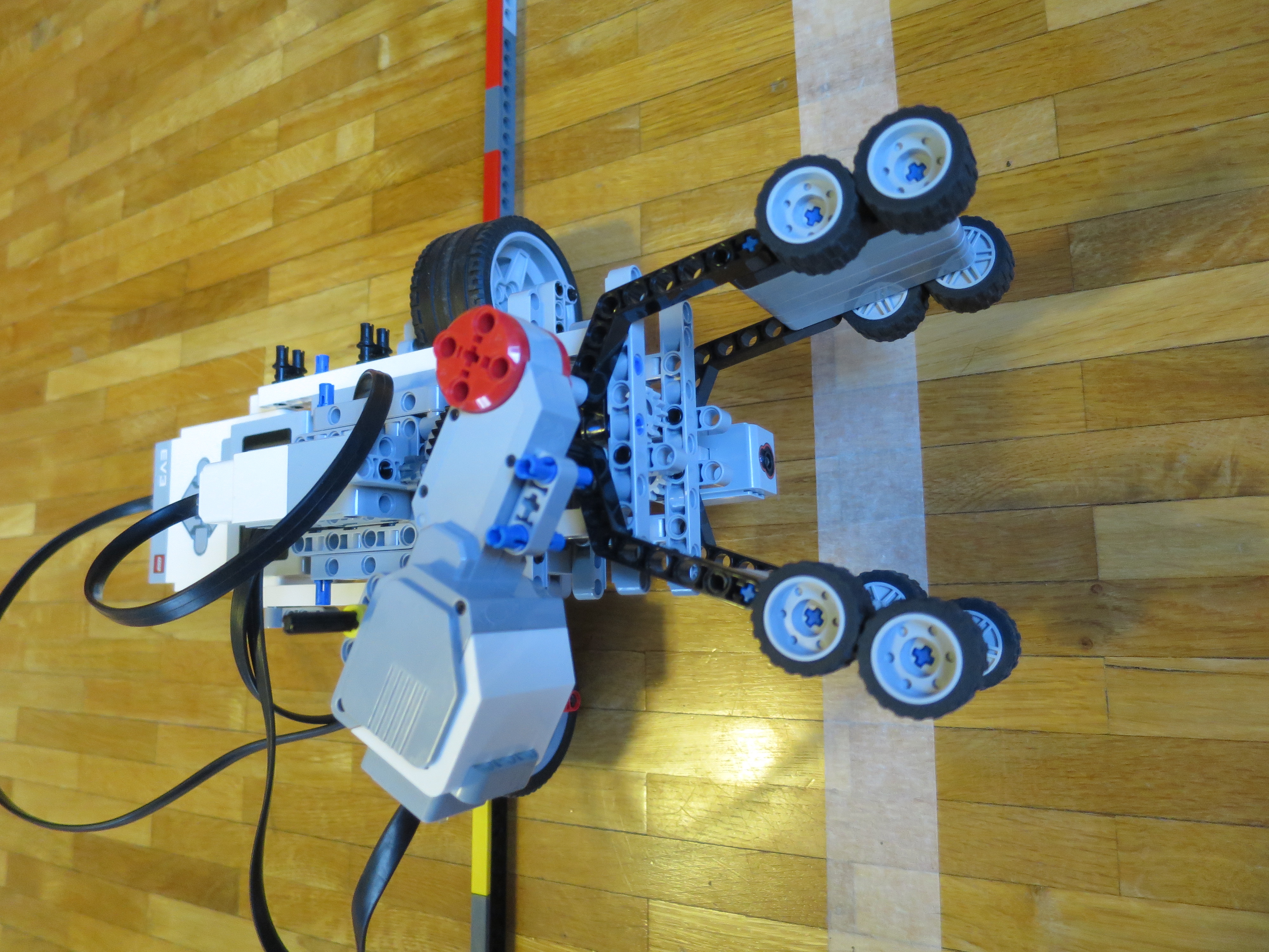 Šikovne zjednodušené zadanie pomocou vodiacej koľajnice a farebných označení. Robot sa pohybuje iba po jednej priamke, a teda fľaša aj pohár musia byť špecificky umiestnené, aj keď pomocou senzora pekne zistí ich polohu. Robot by mohol byť ešte trochu obozretnejší, aby náhodou drgnutím do pohára nevylial. Inak čísté a upratané riešenie, ďakujeme!