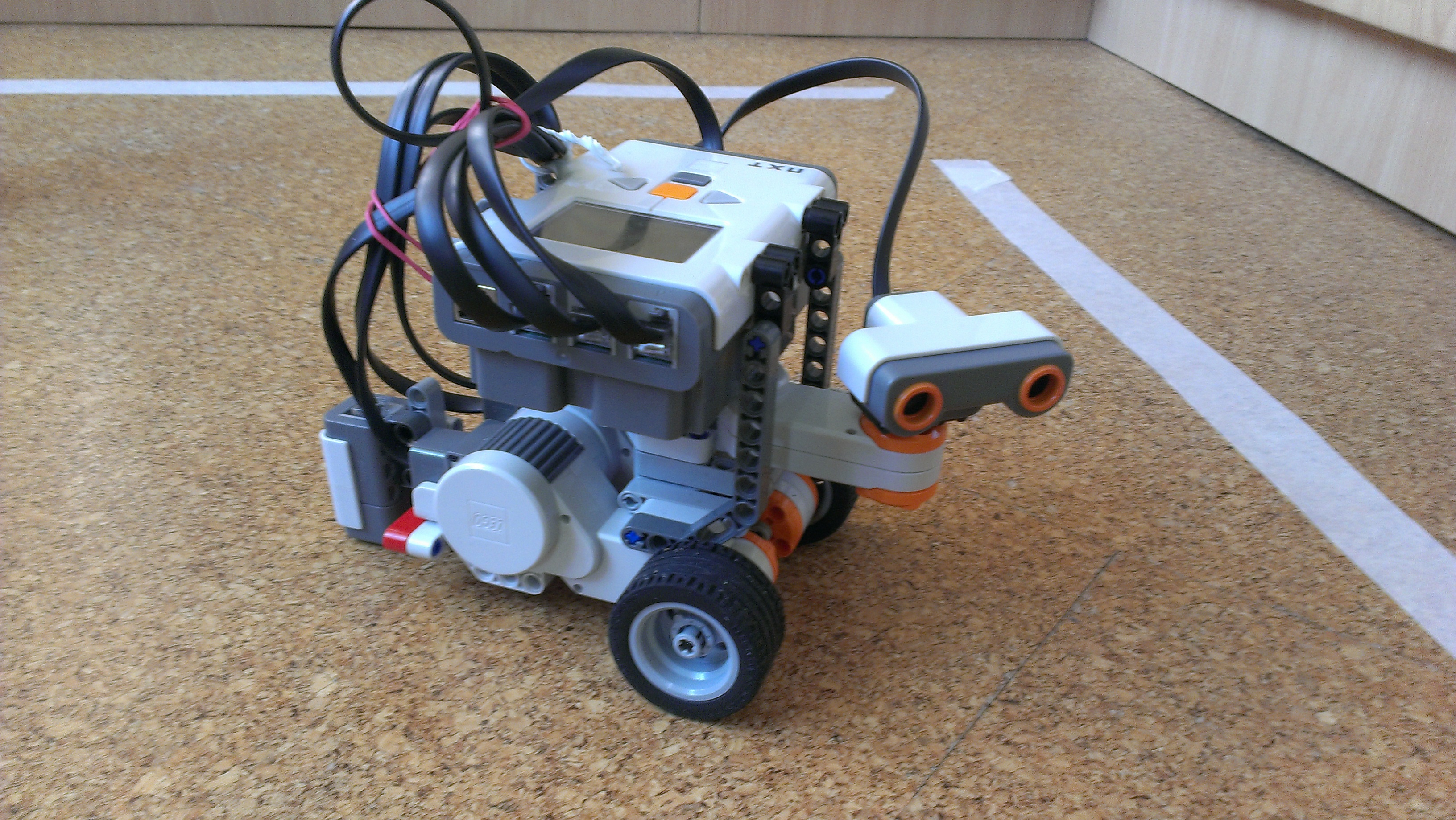 Na robota sme použili 3 motory (2-pohyb,1-otačanie senzora), 1 ultrazvukový a 1 svetelný senzor.