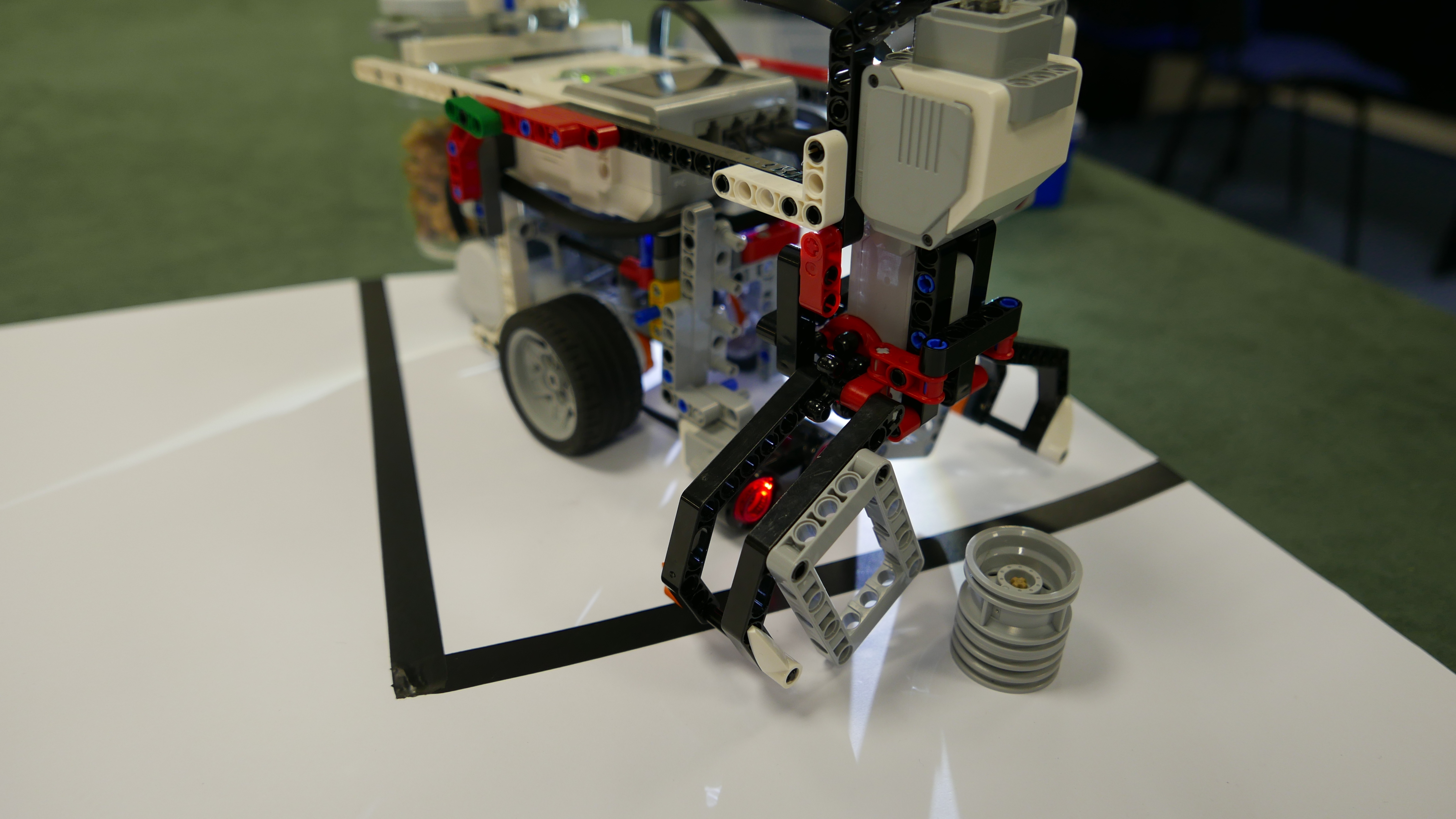 Robot má vpredu zhora ruku, ktorou dokáže uchopiť oriešok. Pred rukou je tesne nad zemou umiestnený ultrazvukový senzor. Pri pomalom otáčaní s ním robot dokáže rozonať oriešok. Na rozpoznanie "základne" robot používa svetelný senzor. Svetlo hľadá ďalším svetelným senzorom, ktorý sníma intenzitu okolitého svetla.