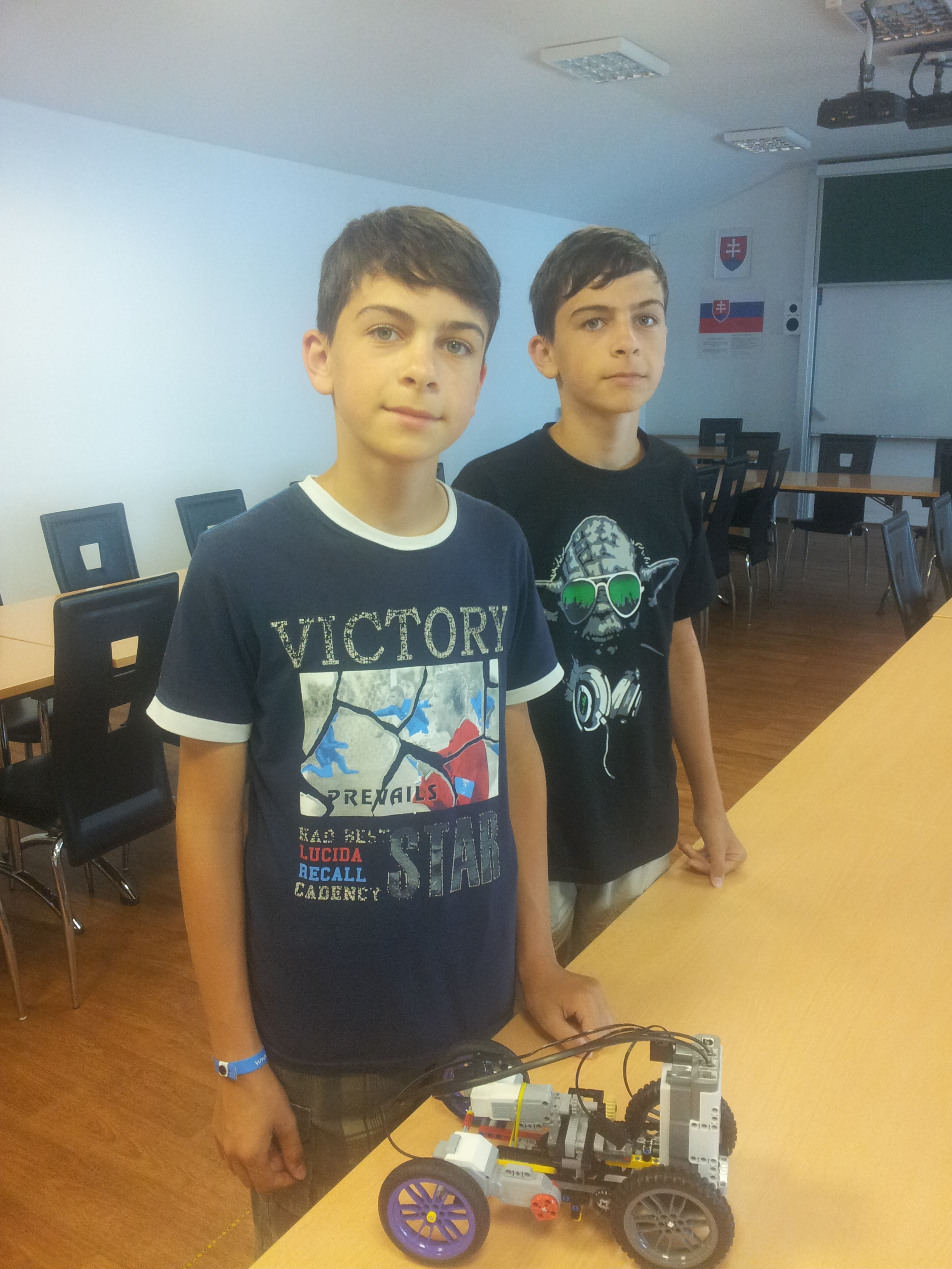 Prevodovka je teda parádna (aj keď bez spojky), ale žiaľ nezdá sa, že by robot zrýchloval a spomaľoval. Škoda, inak by to bolo za plný počet bodov! Za rýchle brzdenie na voľnobeh môze azda vysoké trenie reťazových prevodov? Dobré riešenie, vyzerá to, že pri prehadzovaní sa vám trochu zle chytajú ozubené kolesá, čo ale nie je veľmi prekvapujúce. Rozhocom by sa páčila ešte podrobnejšia dokumentácia robota a keby prešiel zotrvačnosťou 2m bez toho, aby výrazne spomalil.