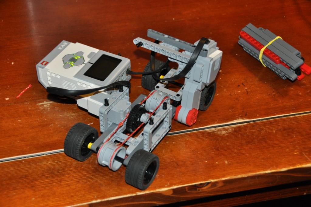 Páčilo sa nám, že ste zdokumentovali aj to, čo vám nešlo. Pekné riešenie. Jeden by nečakal, že prevod cez gumené koleso bude fungovať tak dobre. Táto prevodovka vyzerá byť v pohode, mala by fungovať aj na väčšej vzdialensti. Rozhodcov by potešila ešte podrobnejšia dokumentácia robota, robot išiel na voľnobeh trochu krátko (mal ísť jednu štvrtinu dráhy).