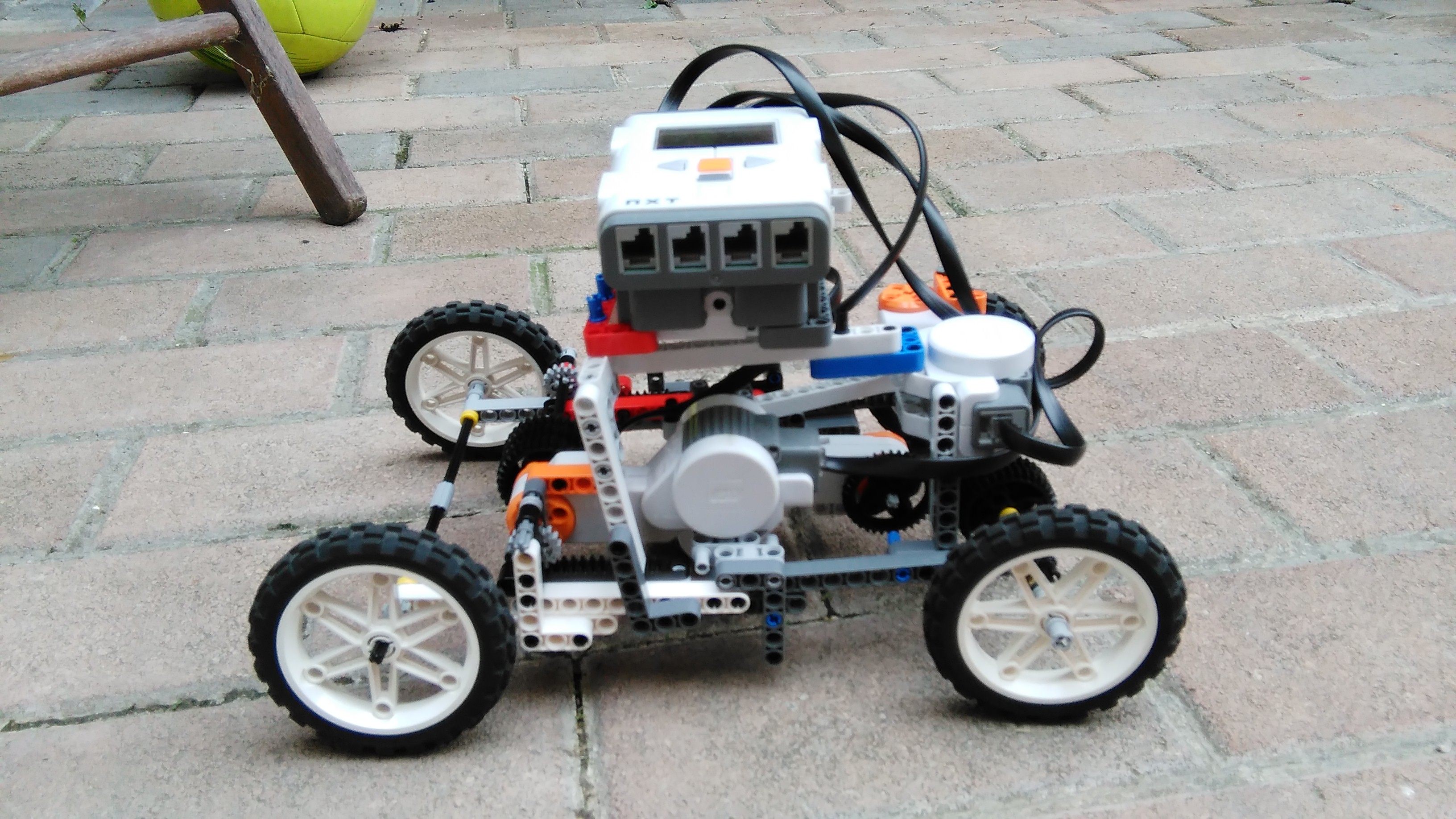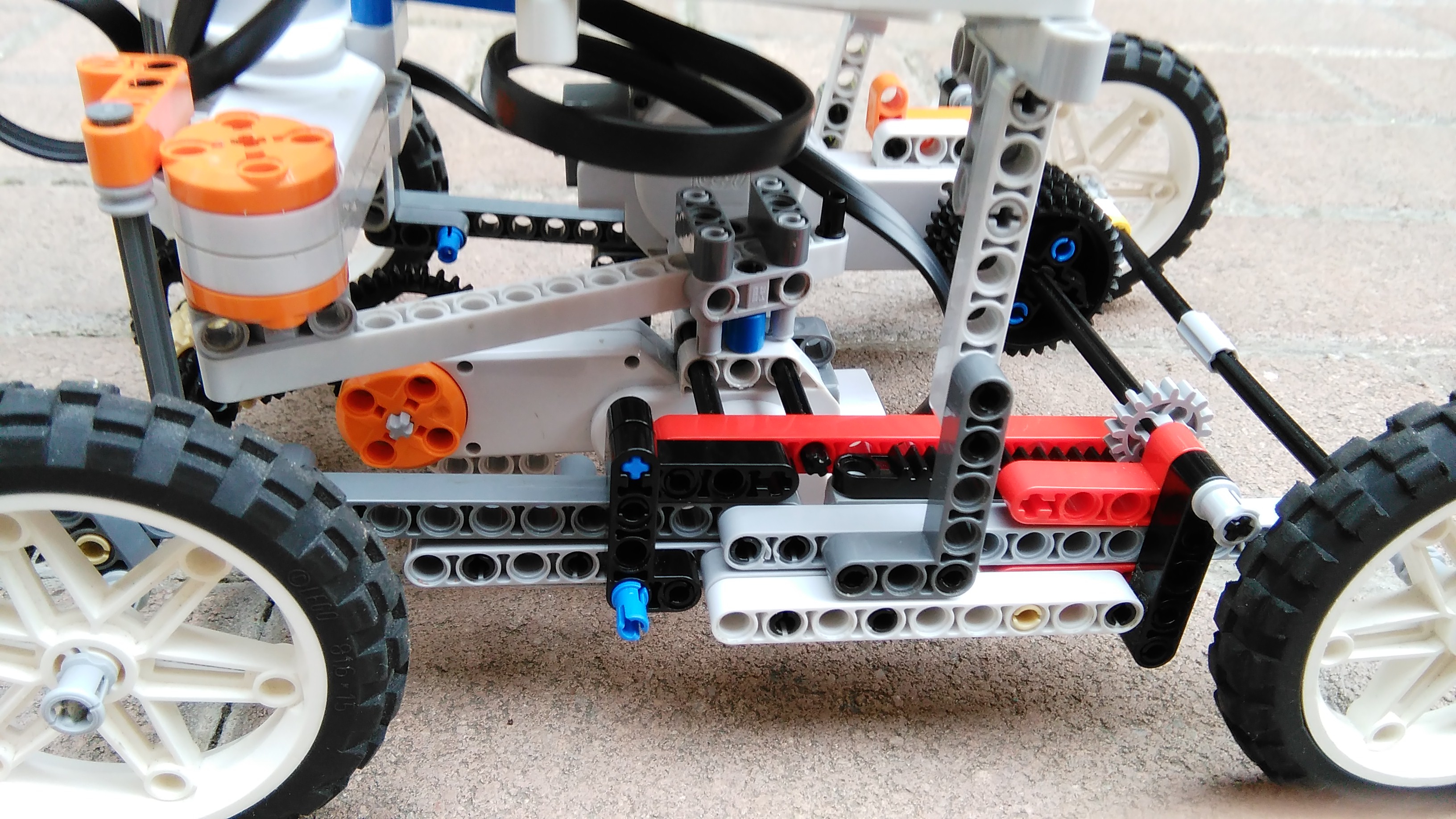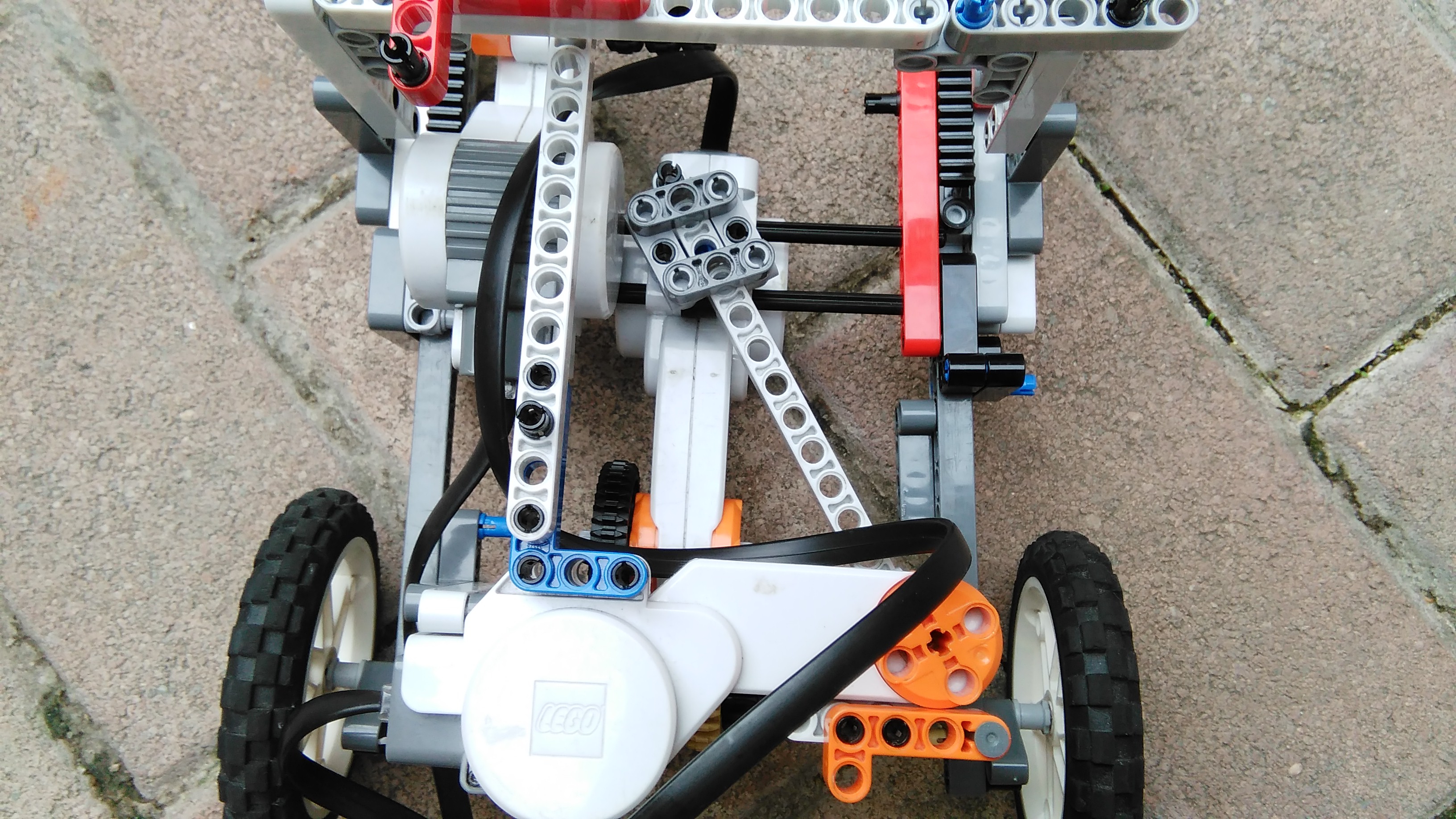 Robot používa tri prevody a voľnobeh. Na prehadzovanie pohonu používa dva motory, ktoré posúvajú poháňací motor.