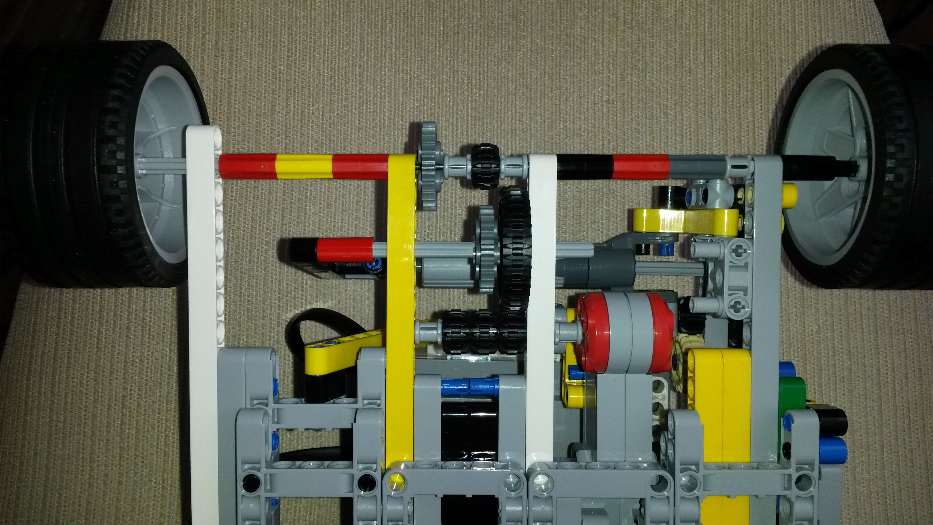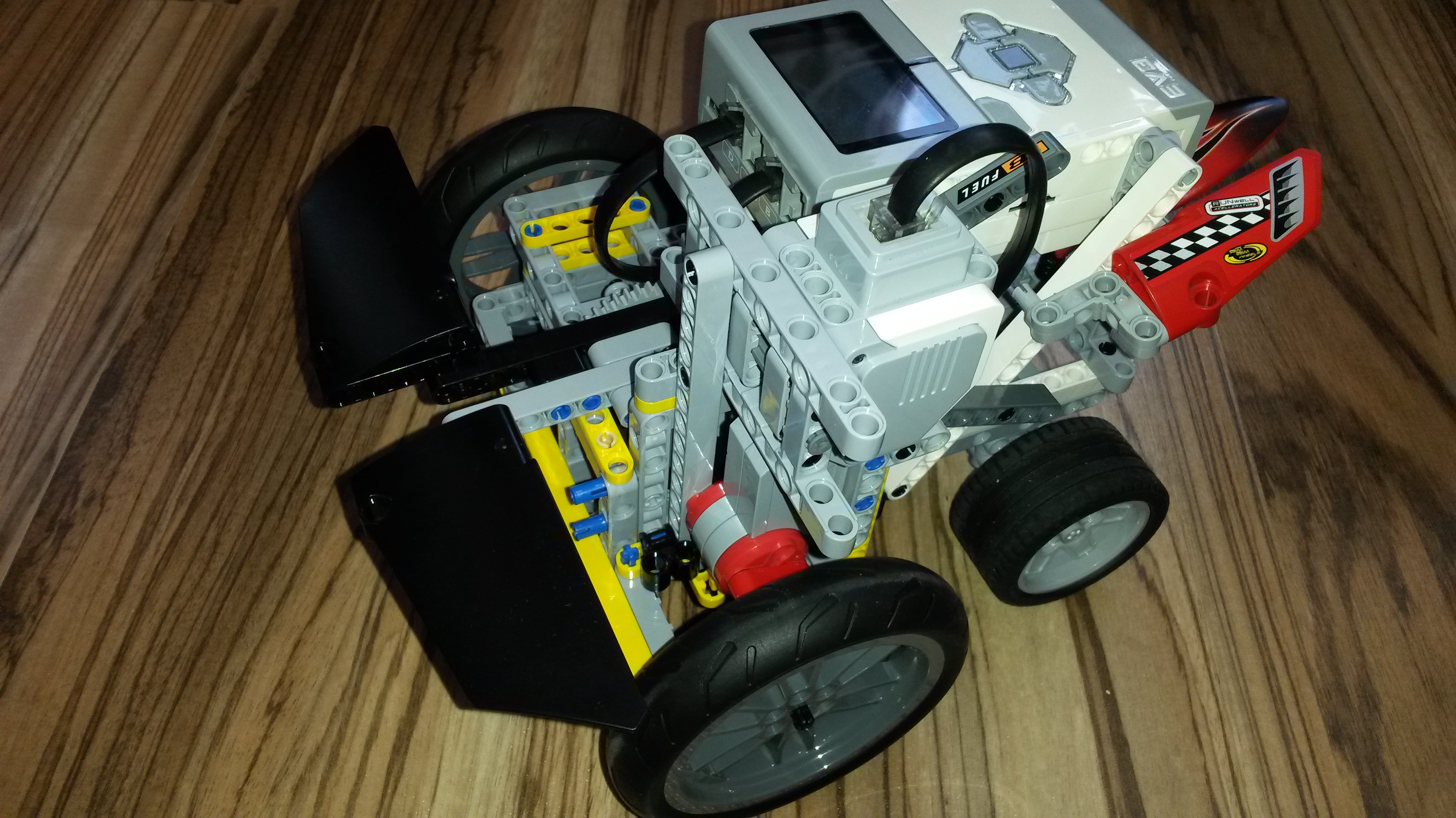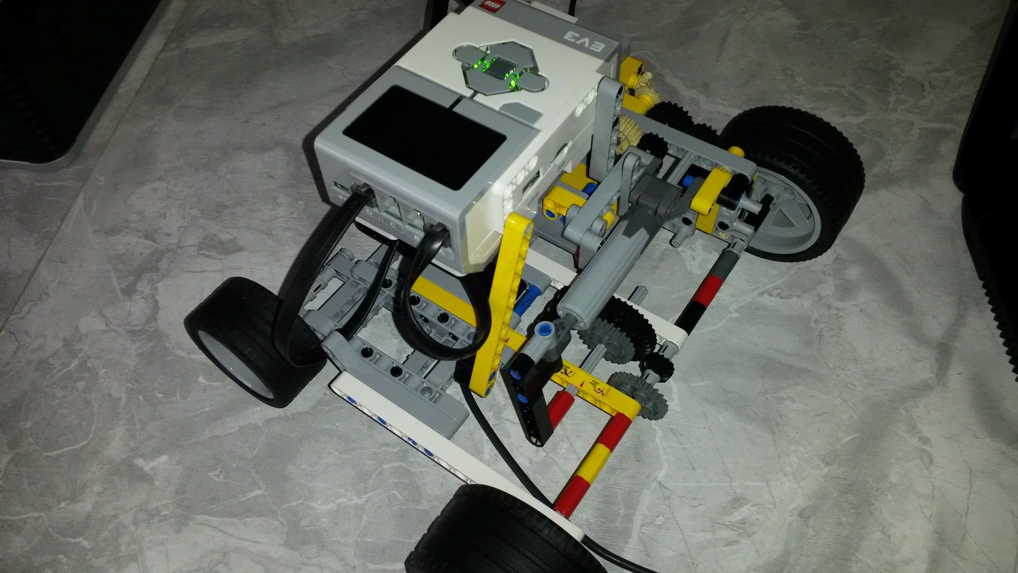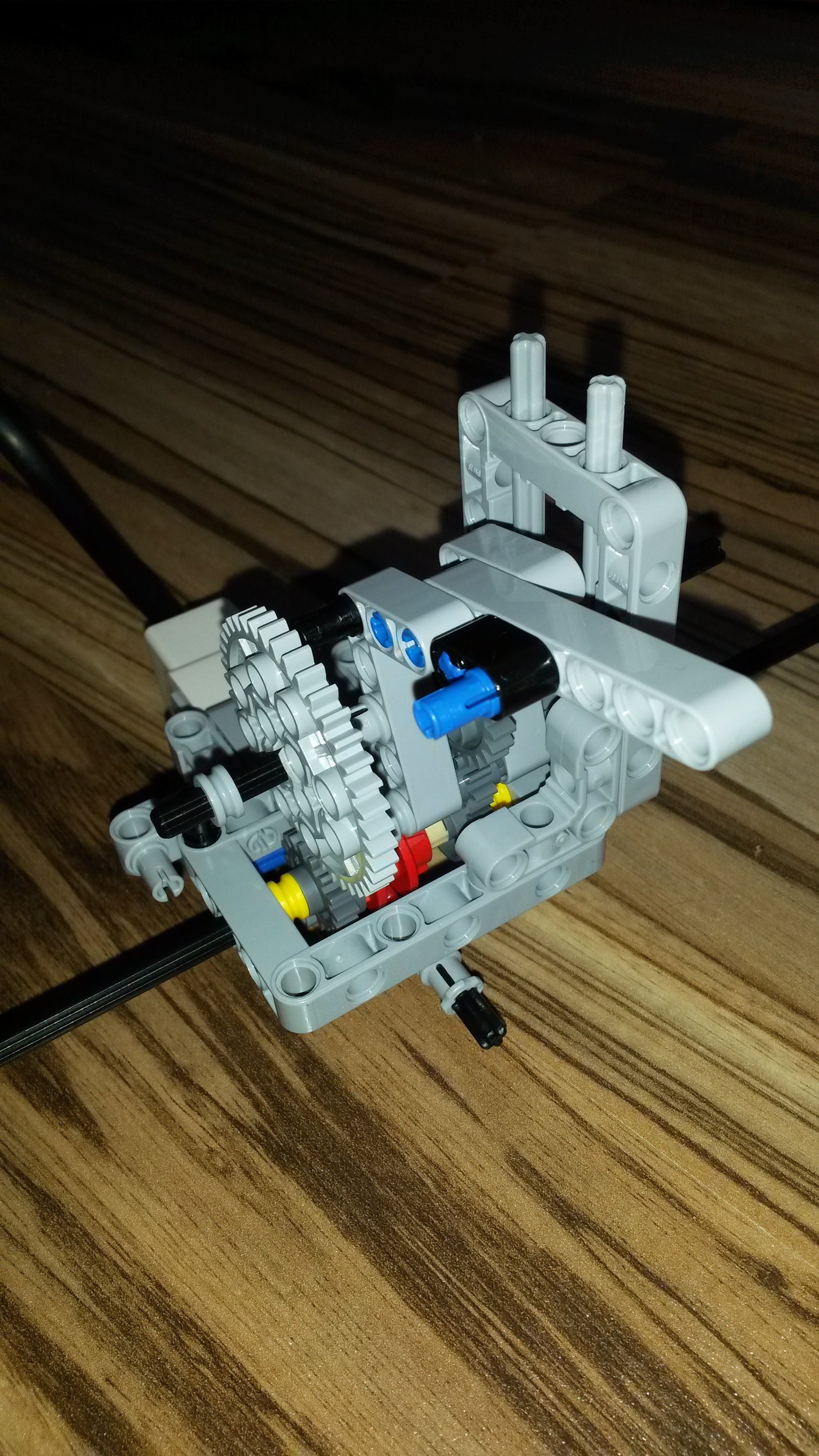 Po prečítaní zadania sme mali ihneď veľa nápadov ako zostrojiť prevodovku, no vzápätí sme zistili, že to nebude až také jednoduché. Prvého sme zostrojili robota, ktorý na prehodenie prevodu ako i neutrálu využíval piest /lineárny člen/. Bohužiaľ, ako je na poslednom videu vidieť, nedarilo sa nám ako by sme chceli. V prvom úseku sme nevedeli zrýchliť tak, aby sme na voľnobeh prešli celé 2 m.