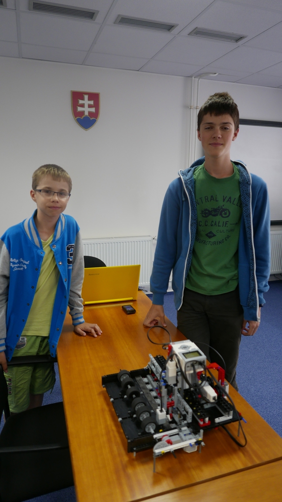 Tak toto bola poriadna fuška na záver. Paťo, Tomáš a Max sa tomuto zariadeniu venovali na veľa schôdzkach, no i tak to stihli až na poslednú chvíľu. A že by sa tu aj dalo veľa vecí ešte vylepšovať, lebo zadanie v sebe ukrýva veľmi veľa konštrukčných aj programátorských problémov.