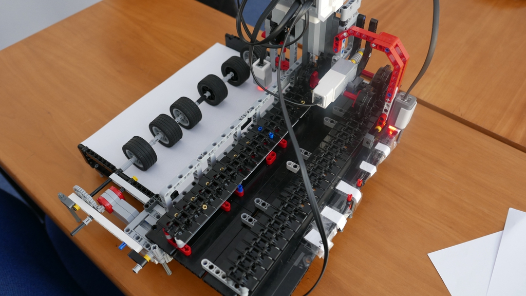 Pekná, robustne vyzerajúca konštrukcia, za toto by sa nehanbili ani vo vývojových laboratóriách IBM. :-) To ručné zväčšovanie dierok, aby si ich senzor všimol, no, ... prepáčime vám to. Zvládlo by použitie 2 senzorov na opačných stranách papiera (lampa / prímač) aj malé dierky? Veľmi sa nám páči koľko informácií dokážete uložiť na celkom malom mieste! V tomto kole jednoznačne najkrajšia mašinka! Ďakujeme za všetky vaše kvalitné výstupy!