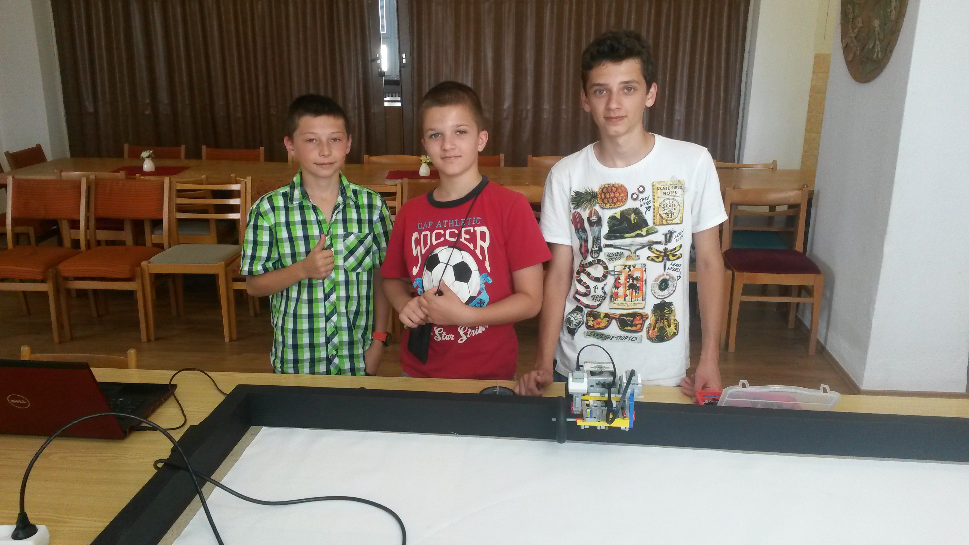 Použitie iba jedného rozmeru pekne zjednoduší manipuláciu so štítkom. Škoda, že ste už nemali dosť členov tímu na zapisovací režim, kde by mal robot zapisovať krátke správy. Veselé prázdniny, ďakujeme za skvelé riešenia!