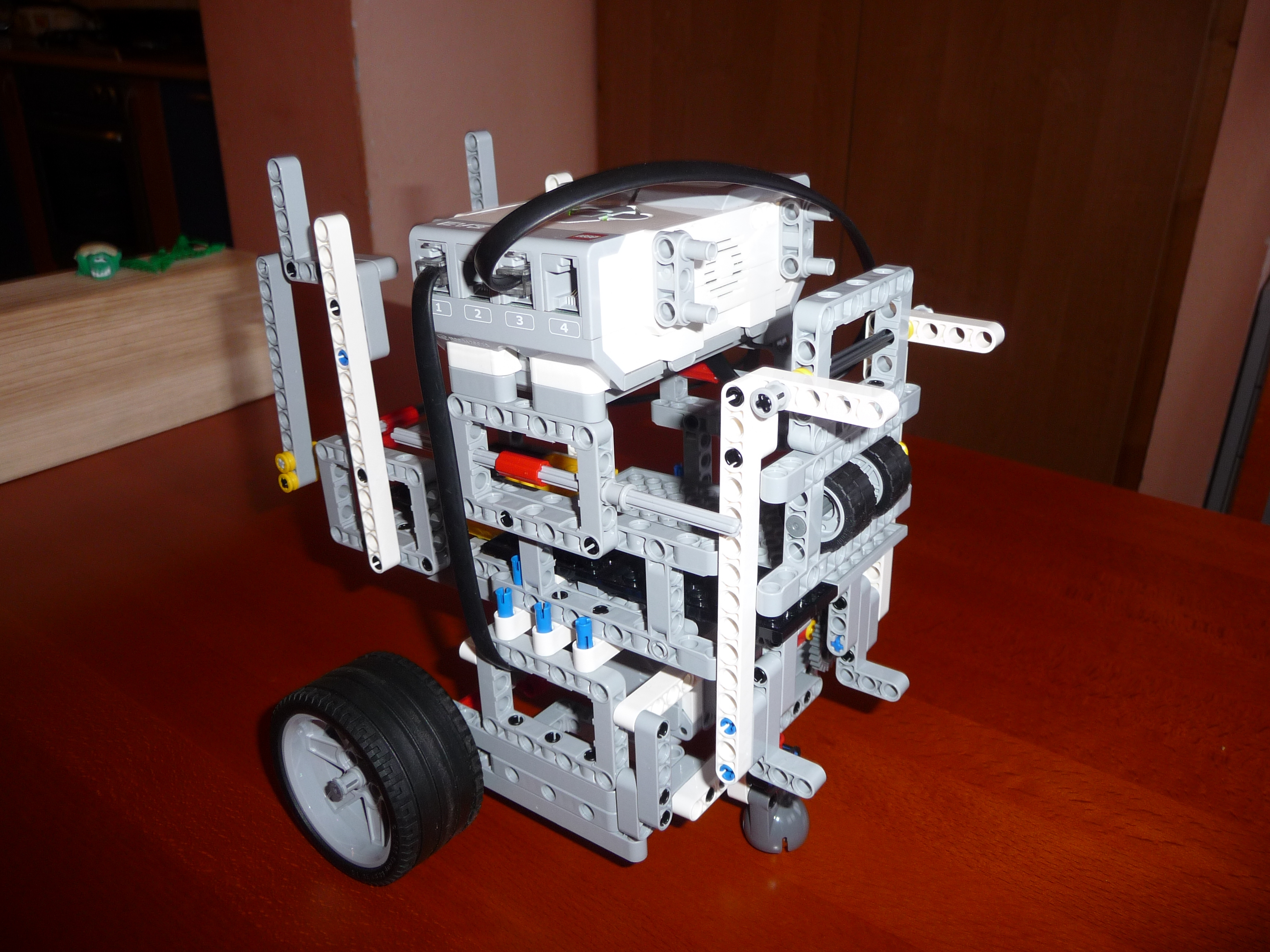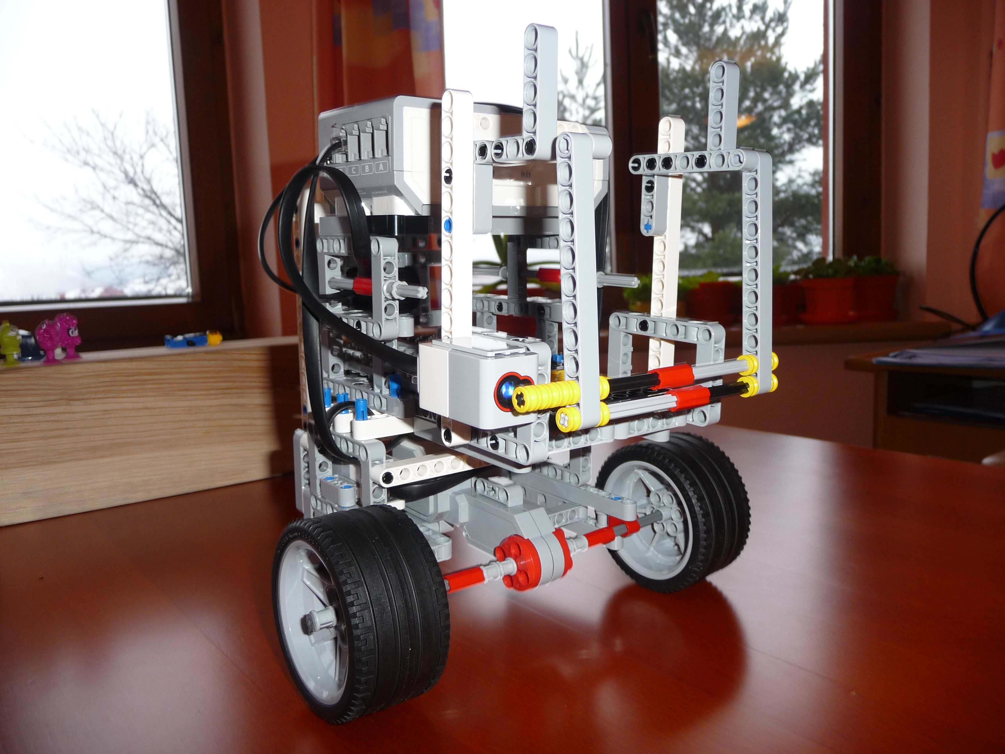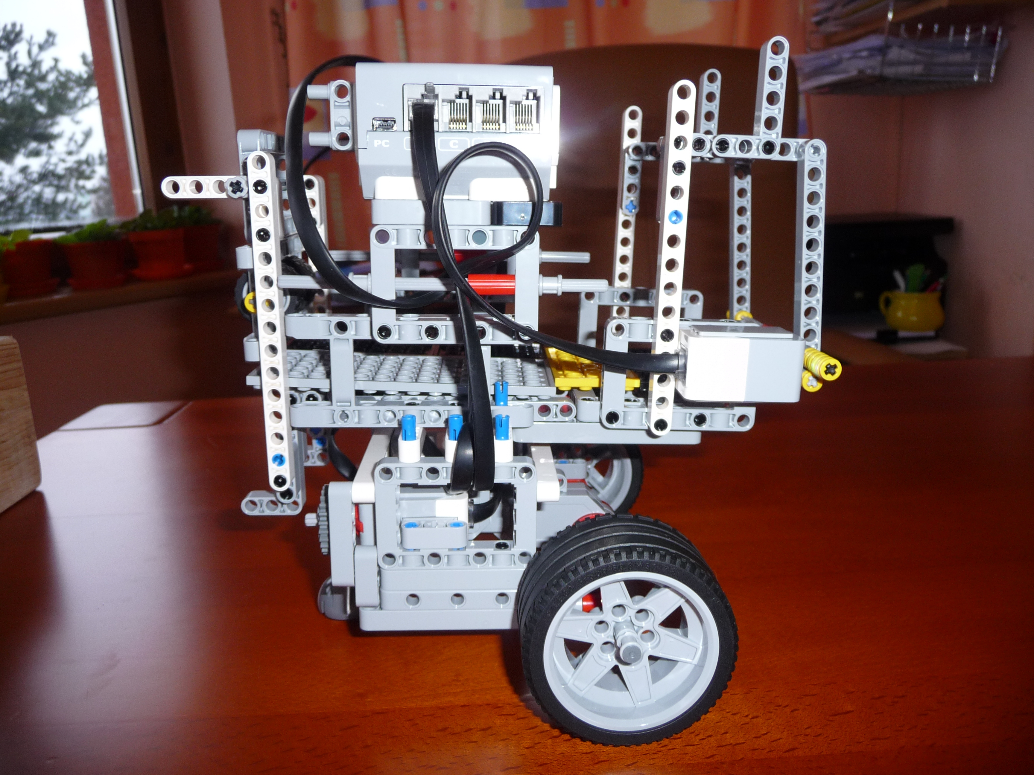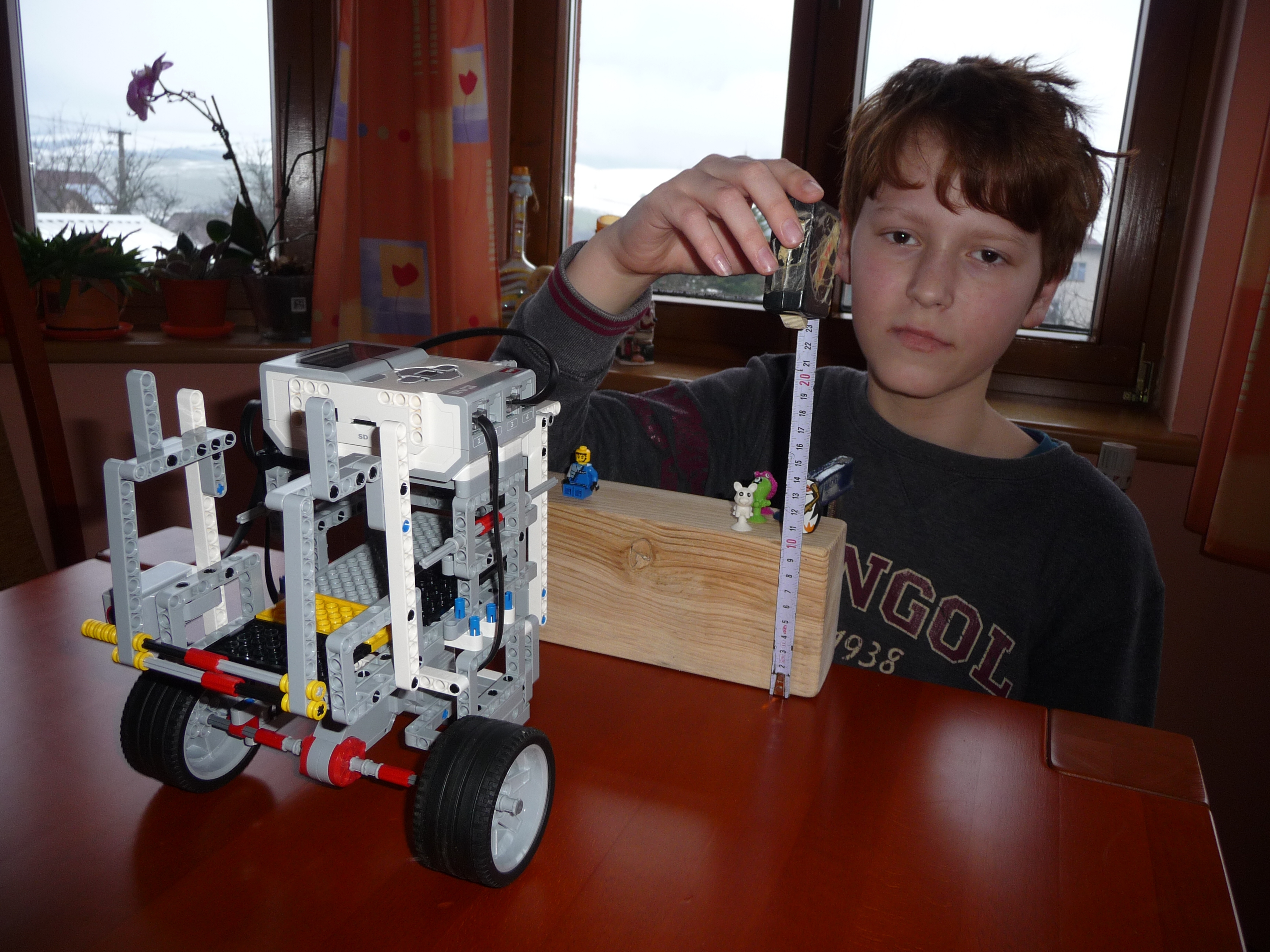 Robinson: Pri pouziti jedneho motora sa lod pohybuje smerom k ostrovu. Nalodovaci mechanizmus pri naraze do brehu ostrova "spadne" a otocnym pohybom nalodi Robinsona do vnutra lode. Na opacnej strane lode je klapka, ktora zastavi pohyb Robinsona aby nespadol do mora. Zaroven snimac farby zaznamena ze nalodovaci mechanizmus Robinsona nalodil a da pokyn motoru lode na opacny pohyb lode smerom k pevnine. Lod s Robinsonom sa pohybuje smerom k pevnine. Lod za pomoci vystupkov pri naraze na pevninu spusti vylodovaci mechanizmus. Cela paluba lode sa tym nakloni a Robinson pohodlne vystupi na pevninu. Ak by sa Robinsonovi nechcelo vystupit, lod este par krat cuvne a znovu narazi na pevninu, cim ulahci Robinsonovi vylodenie. Zaroven tlakovy senzor zaznamena vylodenie a da pokyn motoru lode na opustenie pevniny. Paluba lode je mierne naklonena aby kraj lode bol pri nalodovani a zaroven pri vylodovani presne vo vyske pevniny. Presny pohyb: Zostrojili sme robota s dvomi motormi a vytvorili program pre pohyb robota do stvorca so stranou 1 meter. Rozhodli sme sa ze nebudeme merat vzdialenosti od miesta startu a konecnej pozicie robota, ale budeme zaznamenavat konecnu polohu robota v osiach X a Y od miesta startu. V 1.testovacom kole sme urobili 10 pokusov a vysledky sme zaznamenali do Excel tabulky. Podla grafu sa nam zdalo, ze robot konci vpredu v osi Y. V programe sme upravili hodnoty aby robot zatacal viac vlavo. V 2.testovanom kole sme urobili tiez 10 pokusov. Vysledky boli presnejsie k miestu startu, ale stale boli dost rozhadzane. Keby sme mali sme viac casu na urobenie viac testovacich kol asi by sme sa pokusili: 1. zmenit rychlost robota 2. zatazit robota aby sa kolesa nepretacali 3. pouzit gyrosenzor na zatacanie