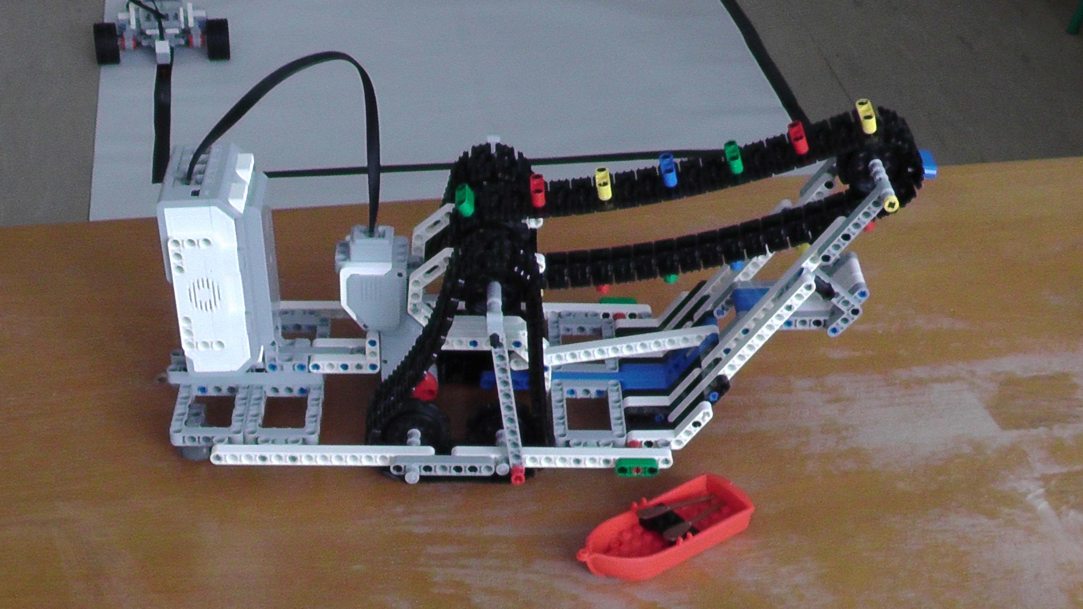 Hodnotenia rozhodcov v náhodnom poradí, tak ako ich napísali: 1. Riešili ste iba Robinsona, za ktorého získavate 2,8b. Váš program je príliš jednoduchý, ale páči sa mi ako ste robota zostrojili :) 2. Nakladanie je spravené výborne ale Robinsona bolo treba z robota aj vyložiť. 2b 3. Robinson - 3b Zaujímavý nápad ako spojiť naberanie a pohyb pomocou pásov. 4. Vyzeralo to tak trocha na nahodu, este aj tie pasy sa otacaju opacnym smerom, takze ak by Robinsona zachytili, tak by ho skorej ohodilo. Riesenie treba nabuduce trocha lepsie zdokumentovat. Najdolezitejsia faza na videu - naberanie Robinsona je velmi zle viditelna. 1b Ďakujeme, len tak ďalej! Nevyužité body: 0