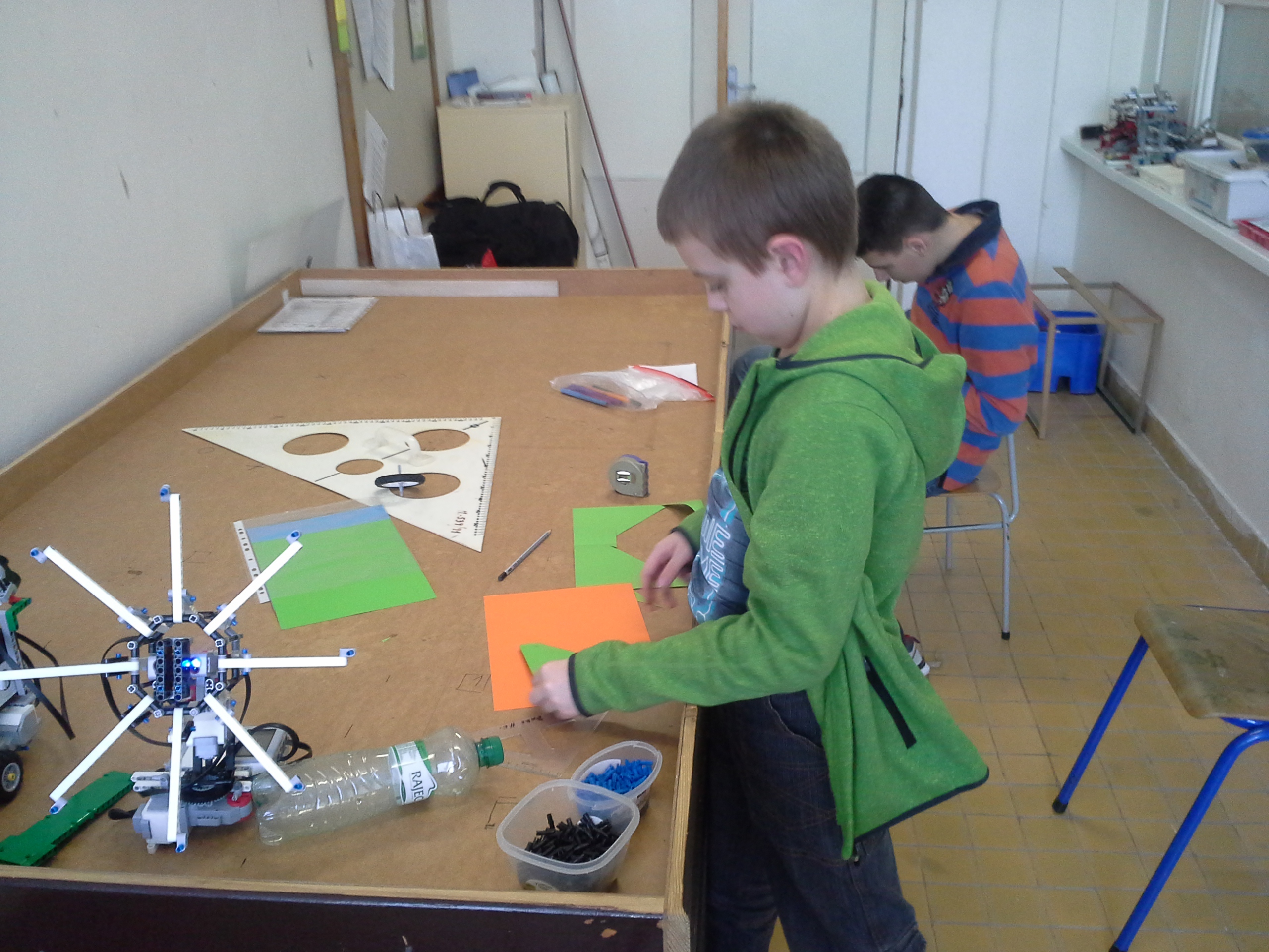 Riešené úlohy: slnečník, ultrazvuk. 1. Za obe úlohy získavate 3b. Oceňujem vytvorenie až 2 robotov na slnečník s rôznymi princípmi. Oceňujem aj pokusy s utrazvukom. 2. Slnečník má veľmi peknú konštrukciu, vylepšenie s natáčaním k zdroju svetla je skvelé! S ultrazvukom ste sa mohli potrápiť aj trocha viac, ale niečo ste namerali 1,5 b 3. Úloha 1 je spravená dobre, obzvlášť sa mi páči ten robot, čo sa otáča za slnkom. (3 body). Ohľadom úlohy 2, namiesto púšťania hudby, ste mohli pridať komentár a trochu lepšie zdokumentovať uhol snímania senzora. Takisto ste mohli ukázať, že senzor naozaj zamerá malé objekty, tiež ste sa mohli pokúsiť zistiť rozmery kužeľa. (2.3 boda) 4. Slnečník - 3b Otáčanie je síce nad rámec úlohy, ale ja bez neho ju splnil. Ultrazvuk - 2b Ste skúsený tím, tak by sa vám už nemalo stávať, že video je roztrasené. Zlepšíte to? Tešíme sa na vaše ďalšie riešenia! Nevyužité body: doteraz: 2.3375, spolu: 2.3375 + 2.2 = 4.5375.