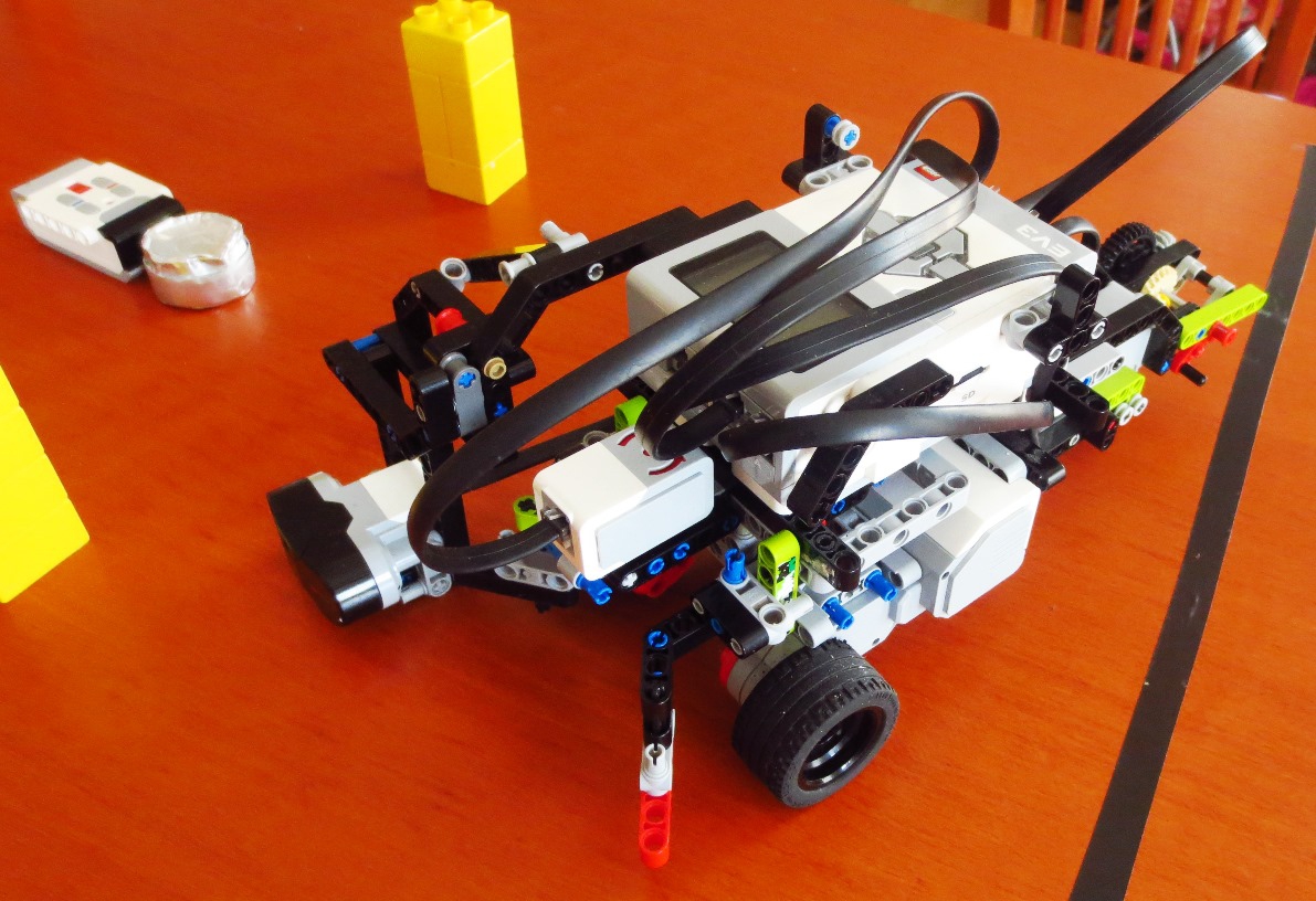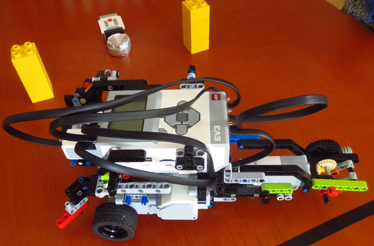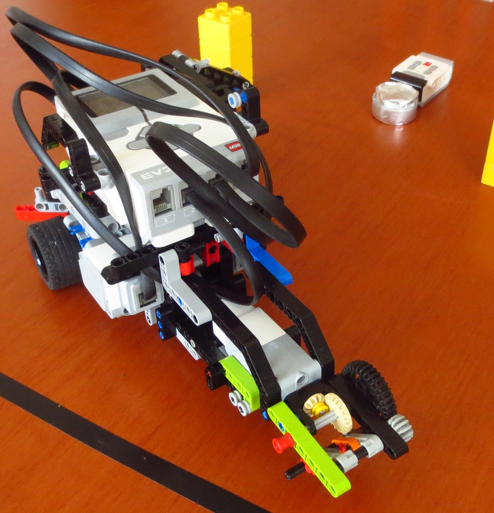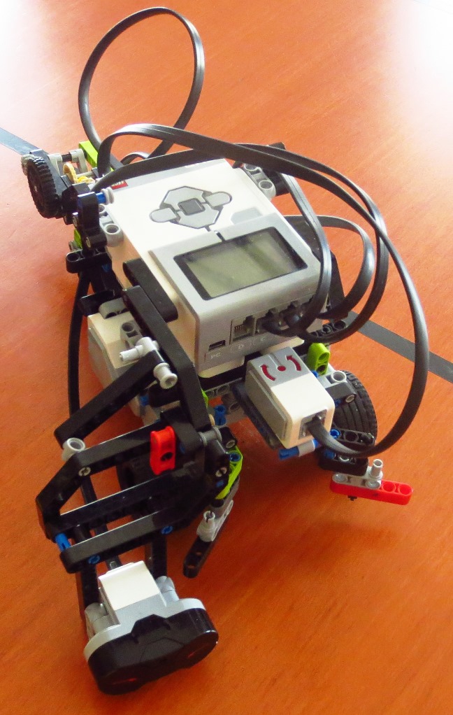 Robot používa dva motory na pohyb a jeden motor na vystrelovanie puku. Svetelným senzorom na spodku robota robot vidí, či dosiahol čiaru. Infrasenzorom v režime Proximity hľadá puk, v režime IR Beacon Heading potom nájde bránku a presný smer odpalu puku. Gyrosenzor pomáha robotovi určiť smer rovno. Robot najprv príde na čiaru do stredného pásma. Pokúsi sa nájsť puk. Ak sa mu to nepodarí, ide do ľava a hľadá puk tam. Ak ani tam nenájde puk, otočí sa a ide hľadať puk do pravej strany. Ak robot puk nájde, pomocou predných zhŕňačov si ho vloží medzi kolesá sa posunie sa na útočnú čiaru stredového pásma. Ak je vľavo alebo vpravo, otočí sa a príde pred bránku. Pripraví si puk na odpal, otočí sa a odpáli ho do bránky takou silou, že aj IR Beacon sa posunie dozadu.