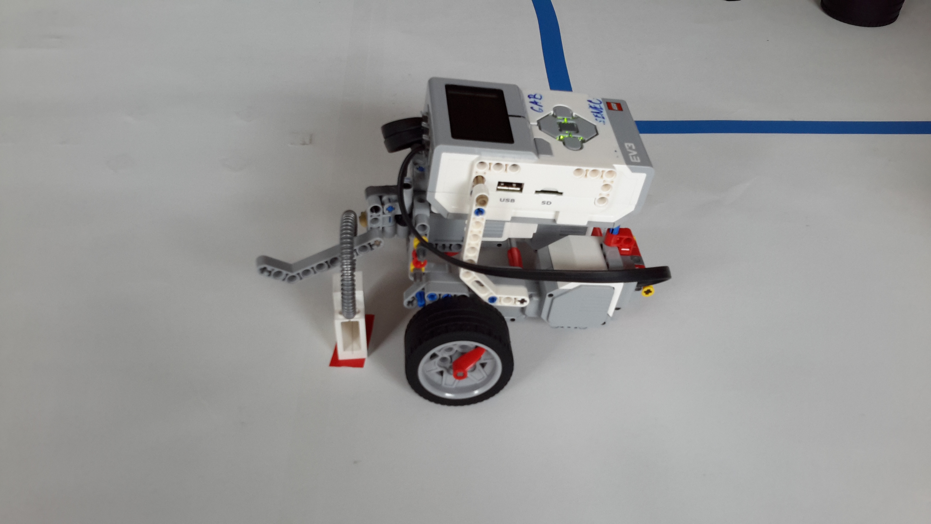 Postavili sme základného robota, ktorý má 2 veľké motory a 1 stredný motor na modifire. Počas videa tieto modifire vymieňame. Máme tu nadstavec 1 – koleso, nadstavec 2 – posúvanie, nadstavec 3 – taška. Môžete ich vidieť na fotkách. Nadstavec 1 príde ku kolesovému zariadeniu a otočí kolesu zboku, nadstavec 2 posunie loď a nadstavec 3 naberie tašku.