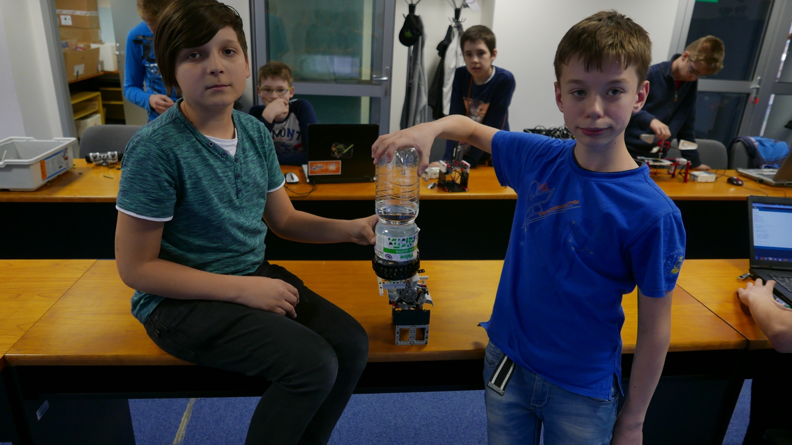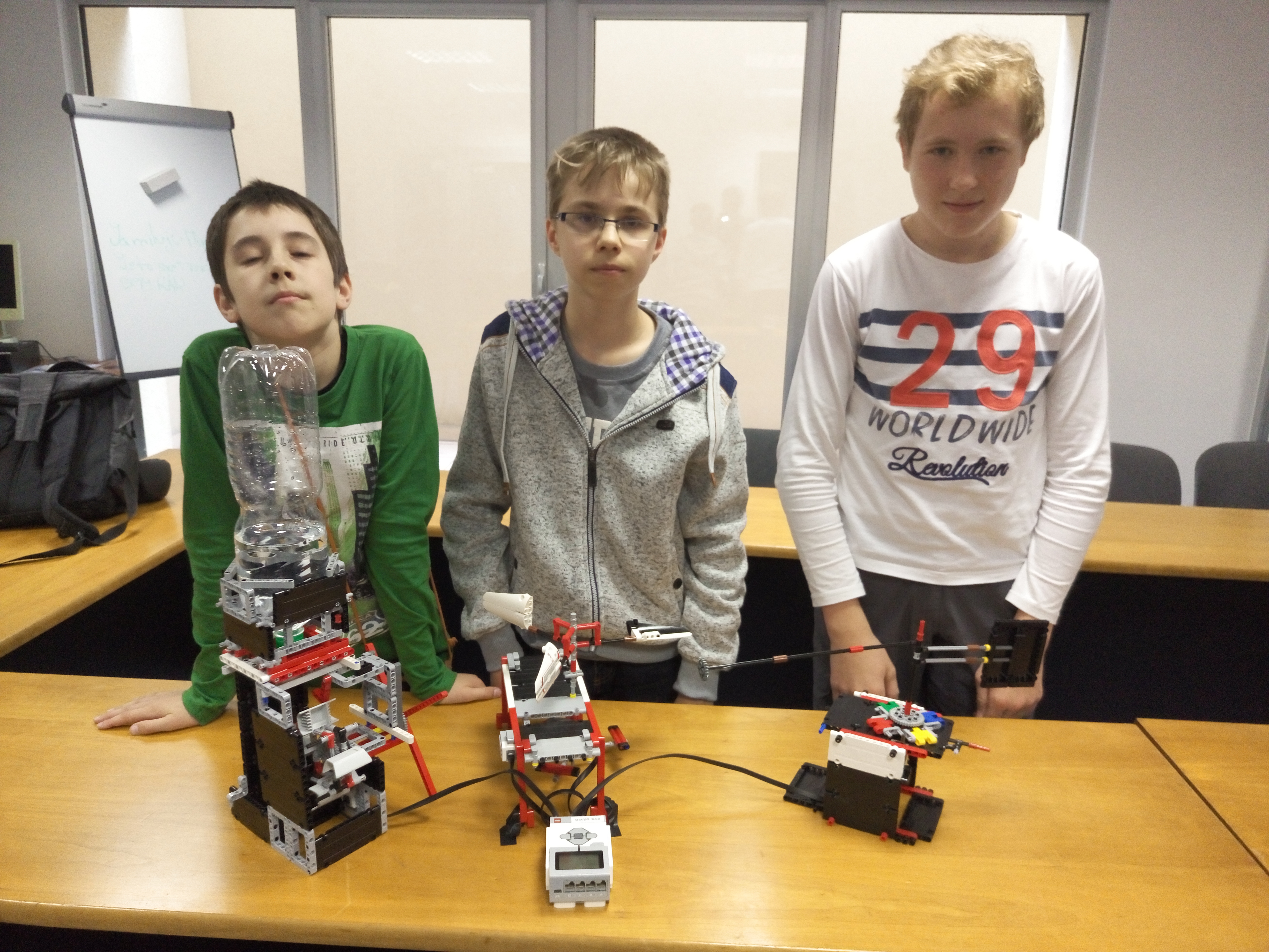 Riešené úlohy: Tvorivá meteorológia, minútová ručička 1. Výborné senzory, naozaj ste aj niečo namerali a máte aj graf, všetko z úlohy je splnené. Super! 3 b. Minútová ručička je tiež pekne spravená. 3 b. 2. Meteorológia - 3 b. Myslím si, že meranie dažďa po kvapkách by asi v praxi veľmi nefungovalo. Slnečný svit máte pekne zmeraný. Hodiny - 3 b. 3. Máte to pekne zdokumentované. Škoda, že ste nenatočili meranie smeru vetru v akcii, nevidel som ani žiadne fotky tohto modulu. Meranie zrážok je veľmi nápadité, ale mohli ste ho ukázať aj zo zadnej strany, lebo som nevidel ako je ten color senzor umiestnený. (3 body) Úlohu s prevodmi ste zvládli výborne. Pekne zdokumentované a hodinky bežia celkom presne. (3 body) 4. Za obe úlohy získavate 3 body. Vidieť, že ste si dali záležať na sekundovej ručičke aj s prevodmi ako aj s meteorologickou stanicou. Nevyužité body: 9.9 + 3 = 12.9